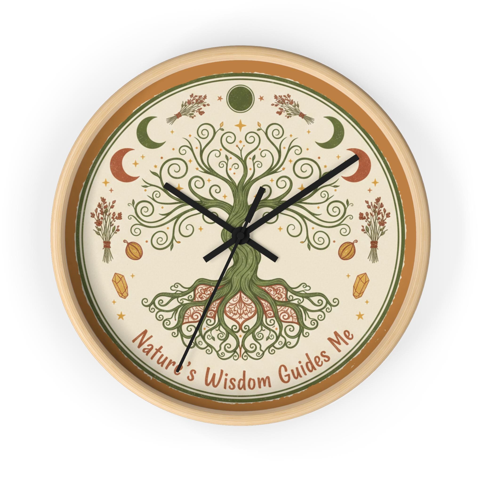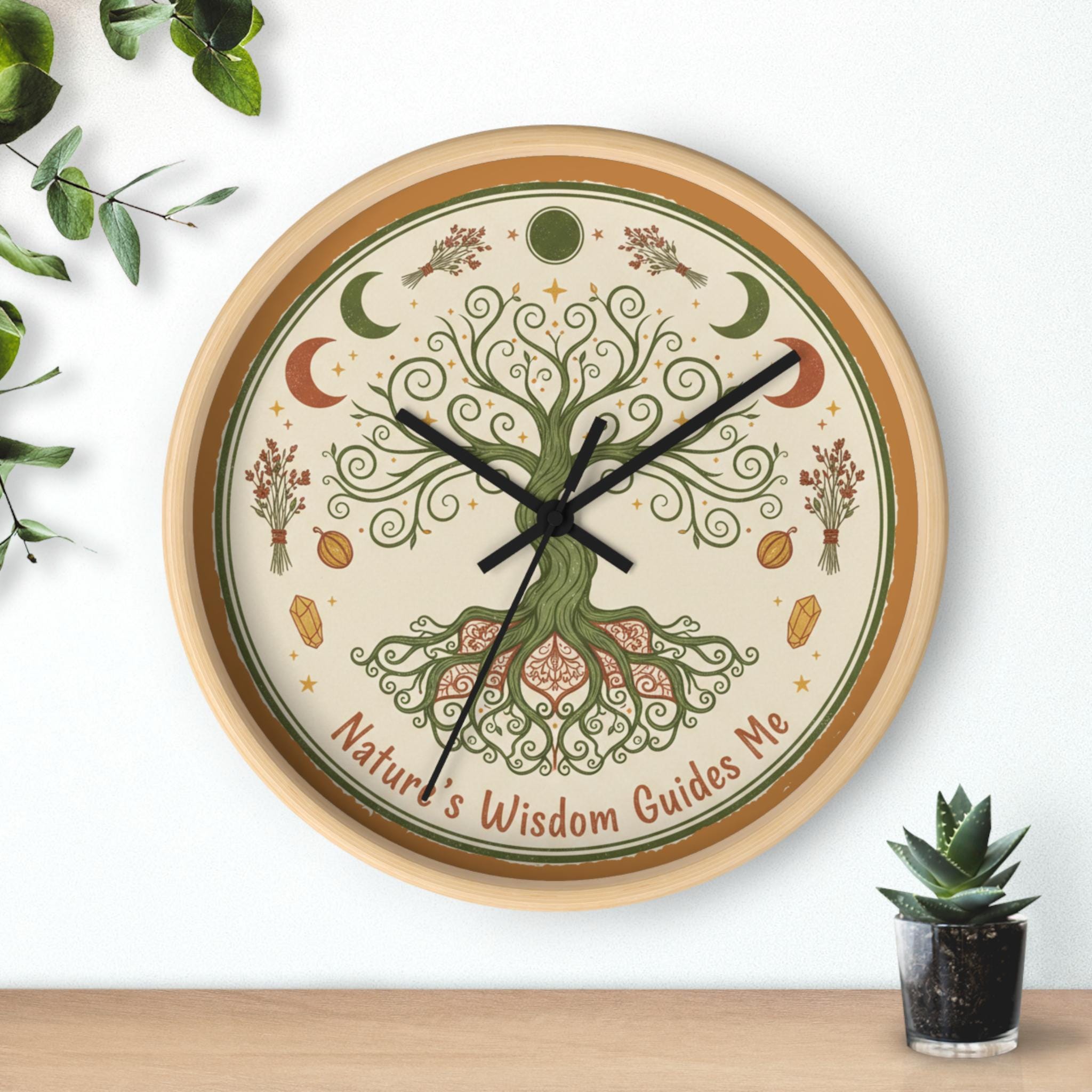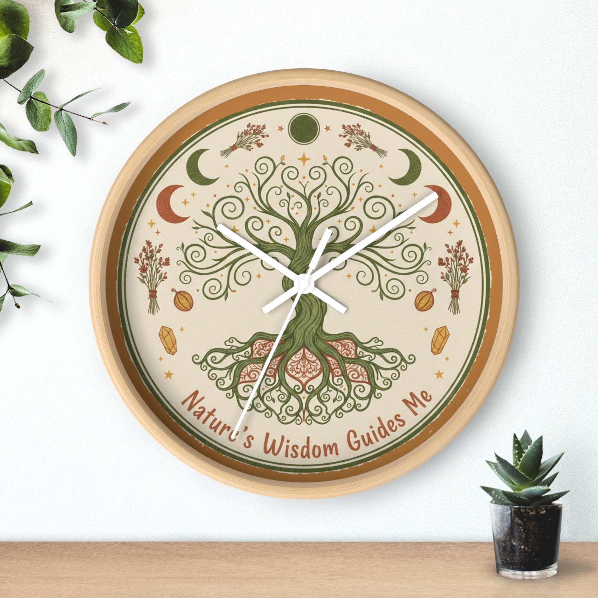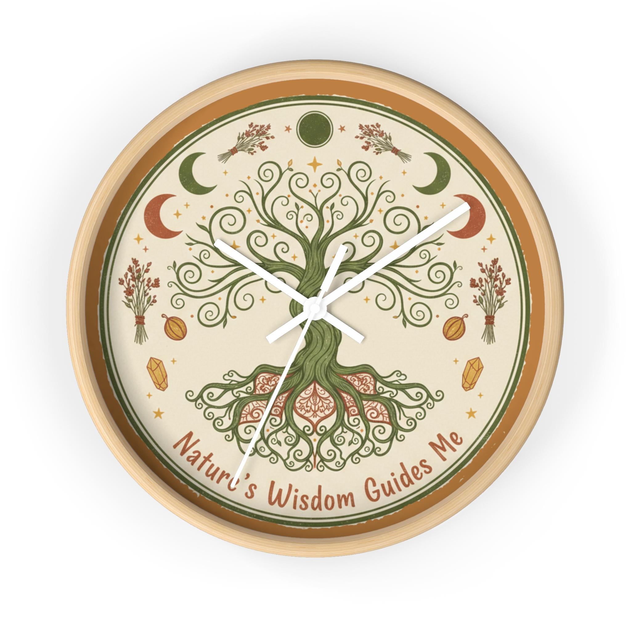 Nature's Wisdom Tree Clock | Botanical Wall Clock, Earthy Moon Phases