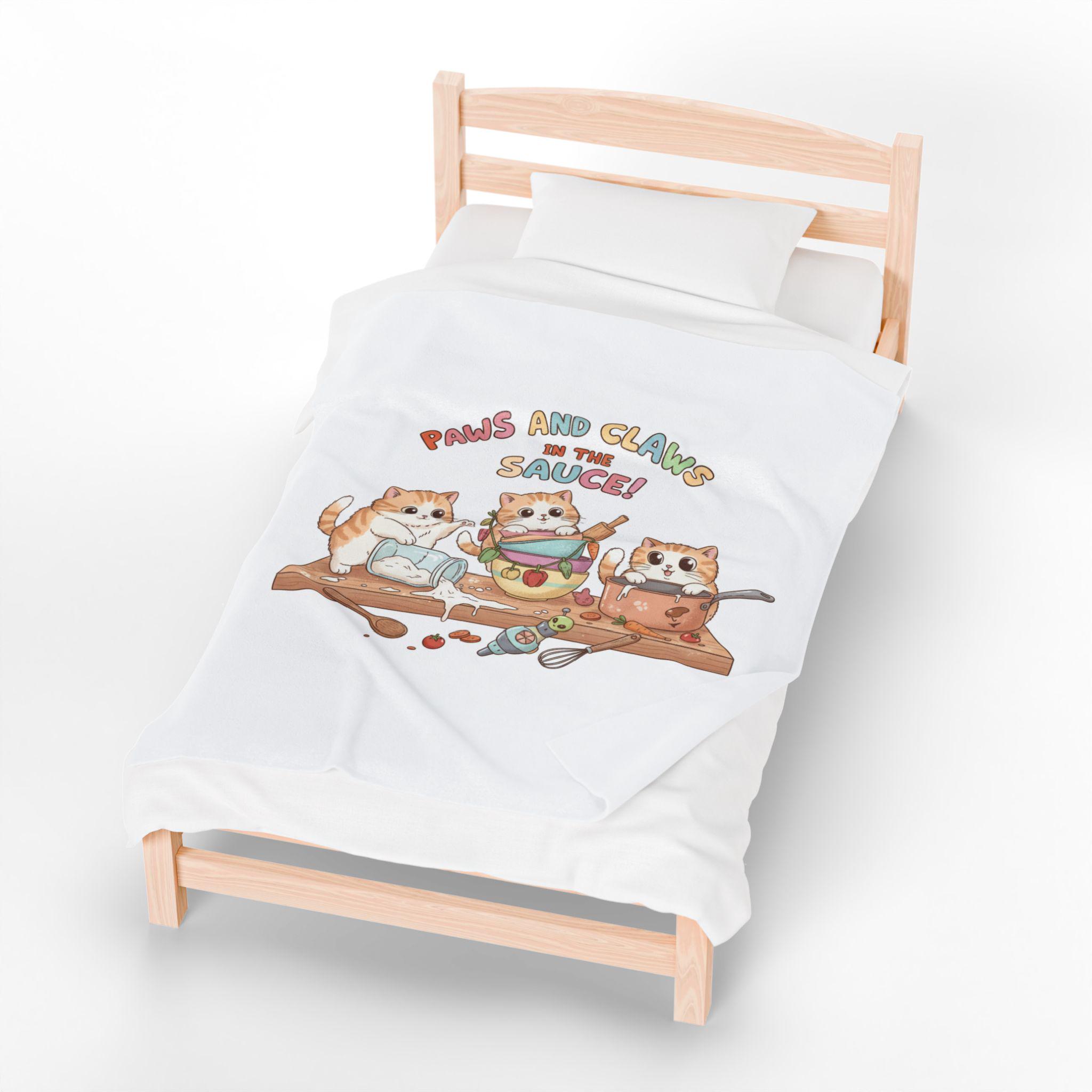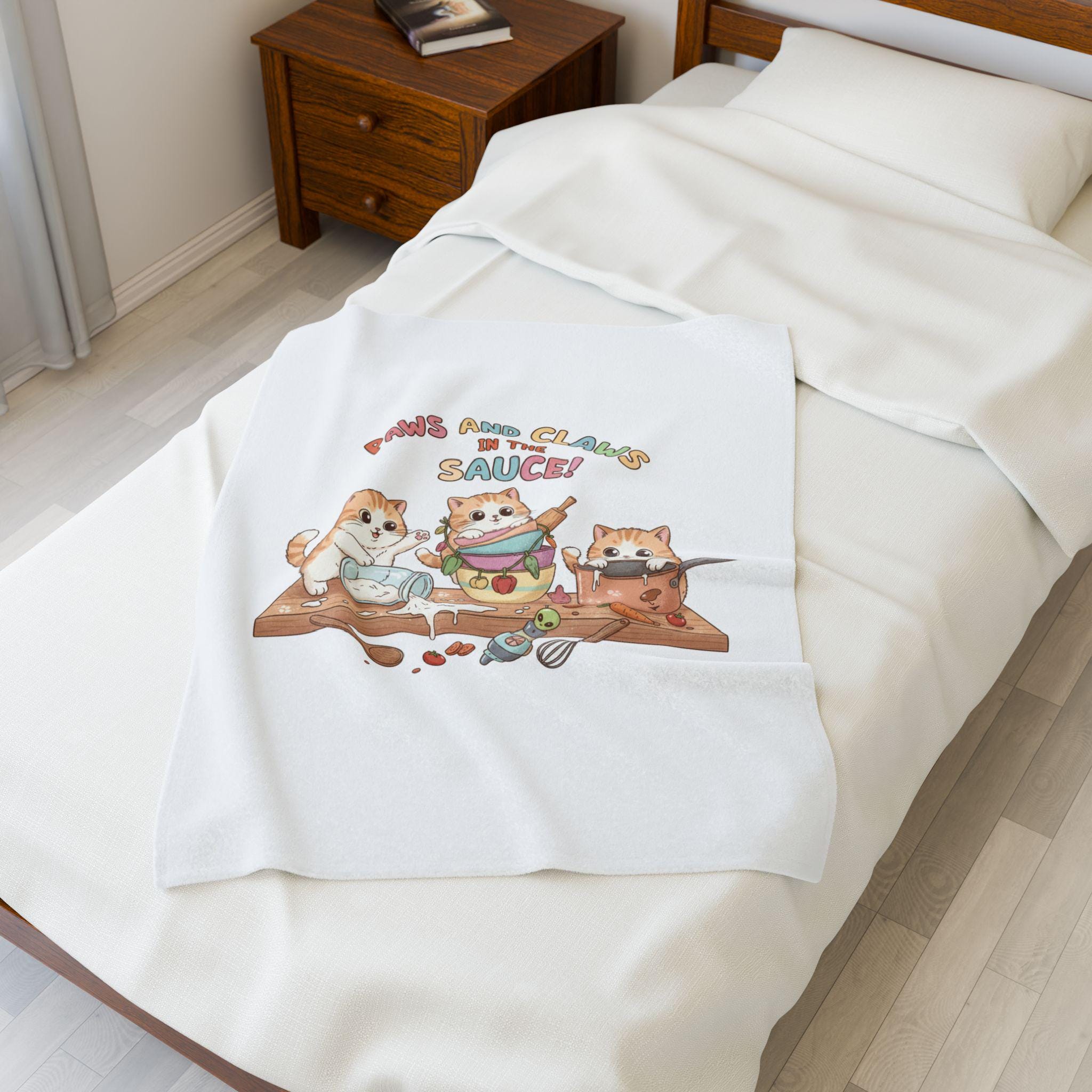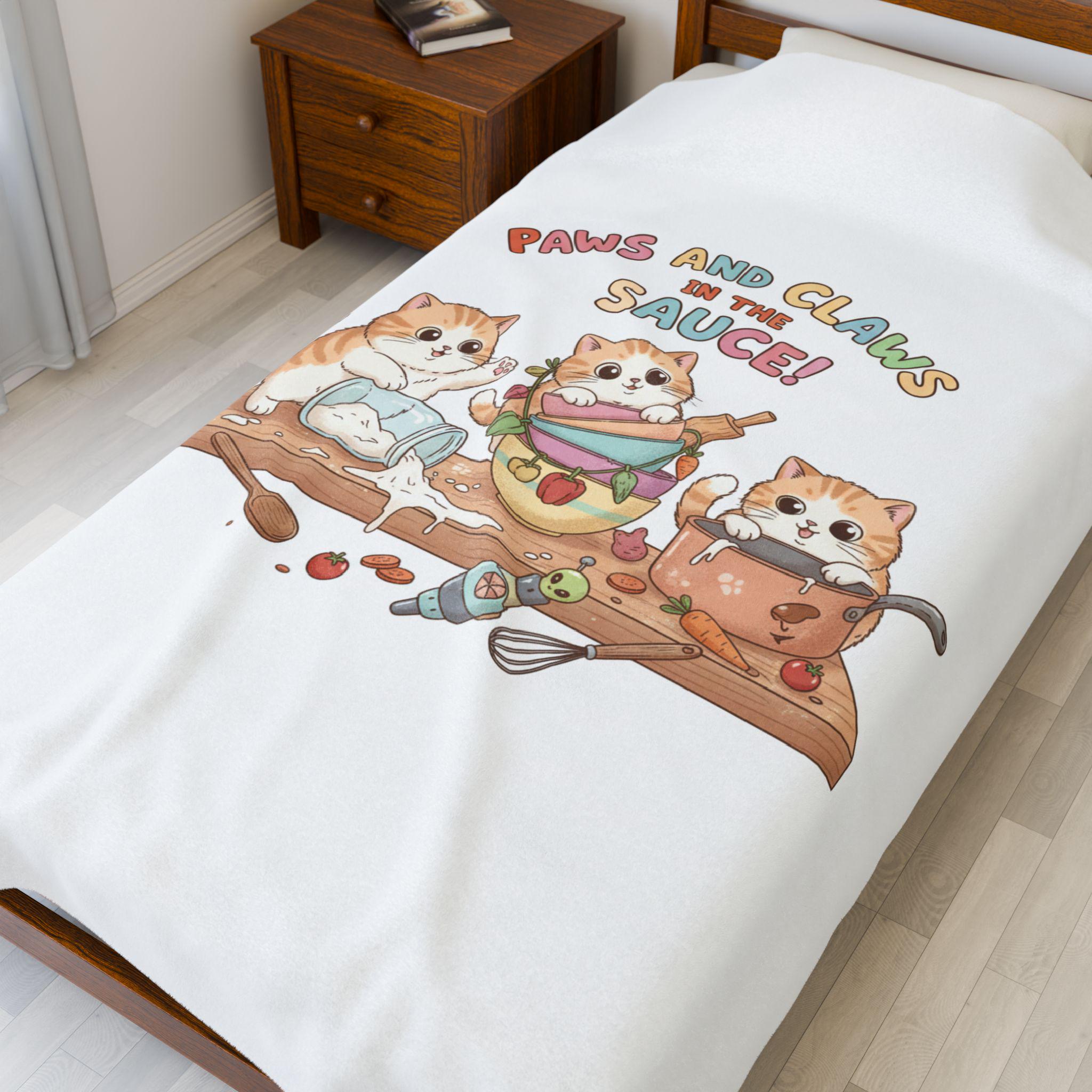 Paws and Claws in the Sauce Velveteen Plush Blanket | Cats in the Kitchen Cooking