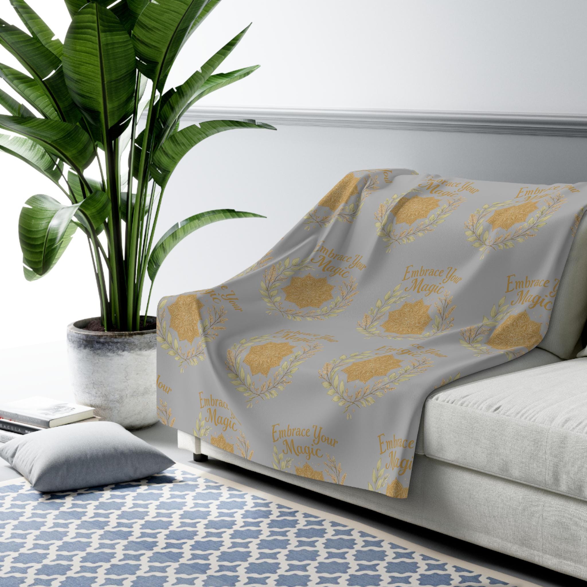 Embrace Your Magic Sherpa Fleece Blanket | Gold Floral Wreath Pattern