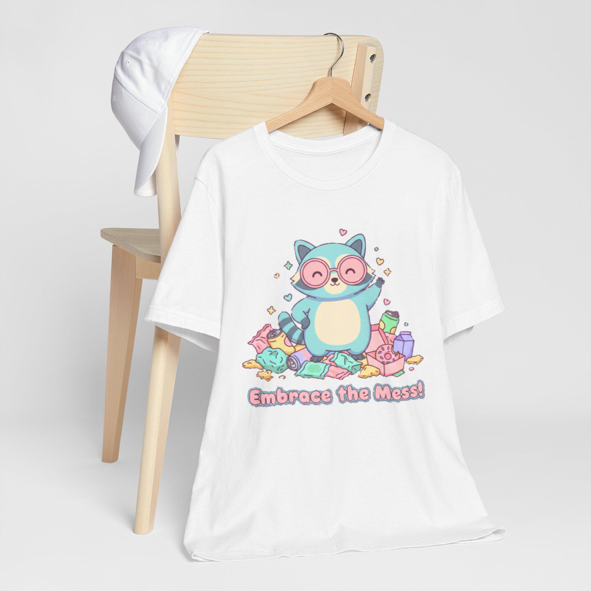 Sweet pastel raccoon celebrating playful holiday chaos — a rounded, meme-friendly take on the “trash animal” trend. The artwork shows a smiling raccoon surrounded by tiny festive parcels and confetti, with a short, lighthearted caption that leans into wholesome mischief. Soft, friendly colors and rounded lettering keep the mood cute and approachable, matching the Trash Animal Joy vibe and seasonal meme searches like trash panda Christmas or merry trash-mas shirt.