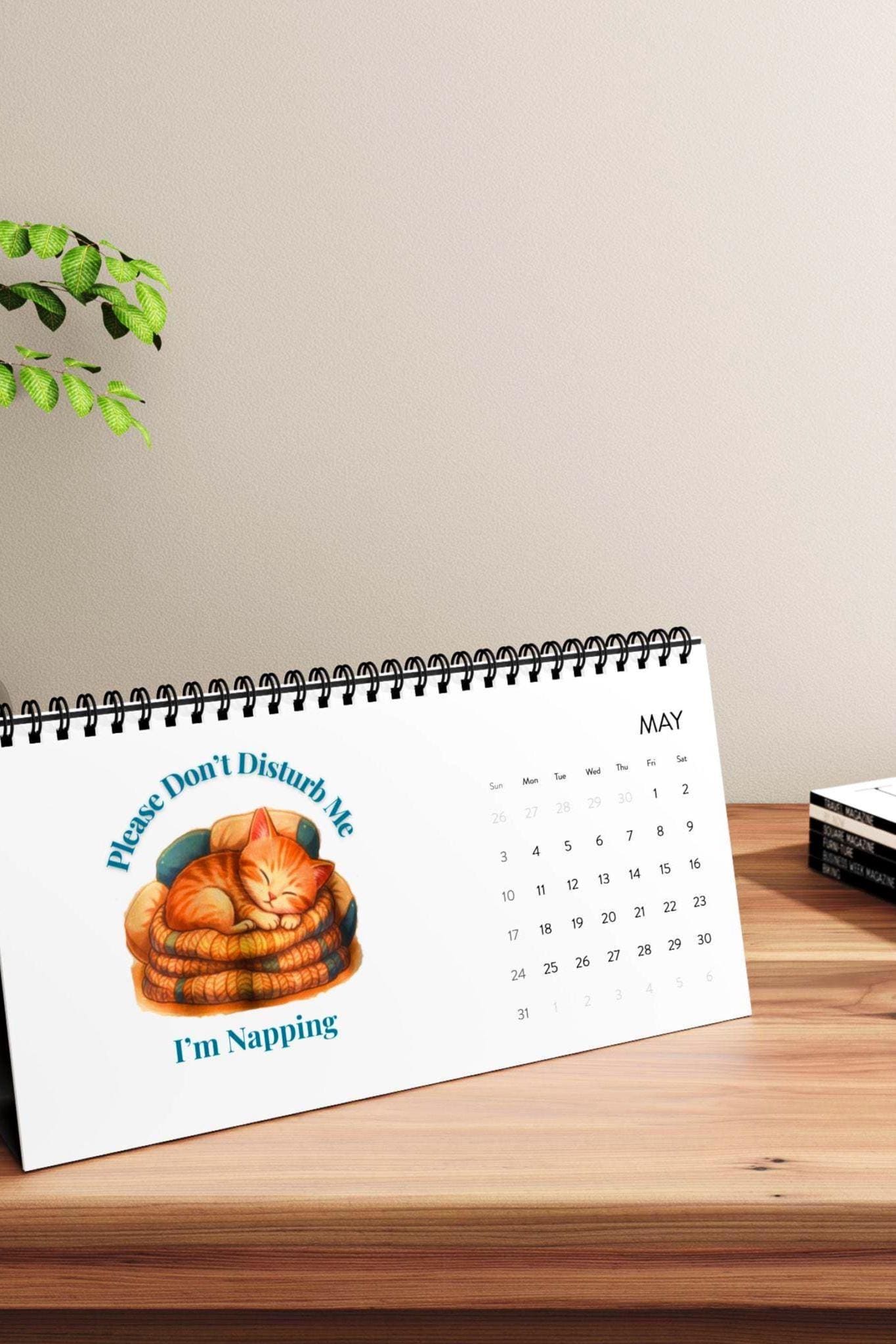 A bright, compact 2026 desktop calendar that brings a touch of cozy charm to any desk. Each month features crisp, vibrant printing on sturdy 250 gsm matte paper, held together by a black metal spiral and supported by a black tent-card backing for stable display. The one-size 10" x 5" format keeps your schedule visible without taking up too much space, while the clear month grid helps you plan at a glance. Printed on USA-sourced paper and assembled in the USA, this calendar blends cheerful design with reliable construction — a small daily companion that makes planning feel calm and familiar.