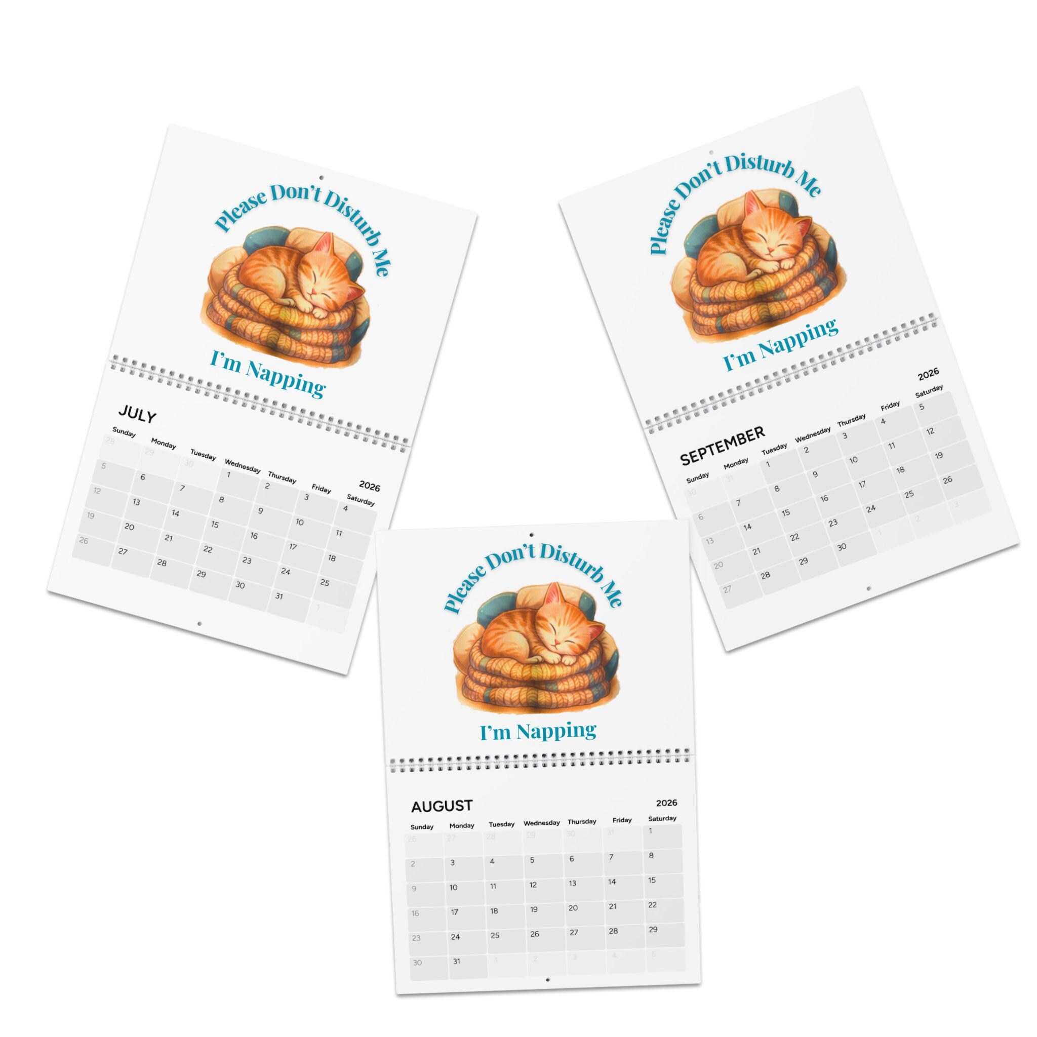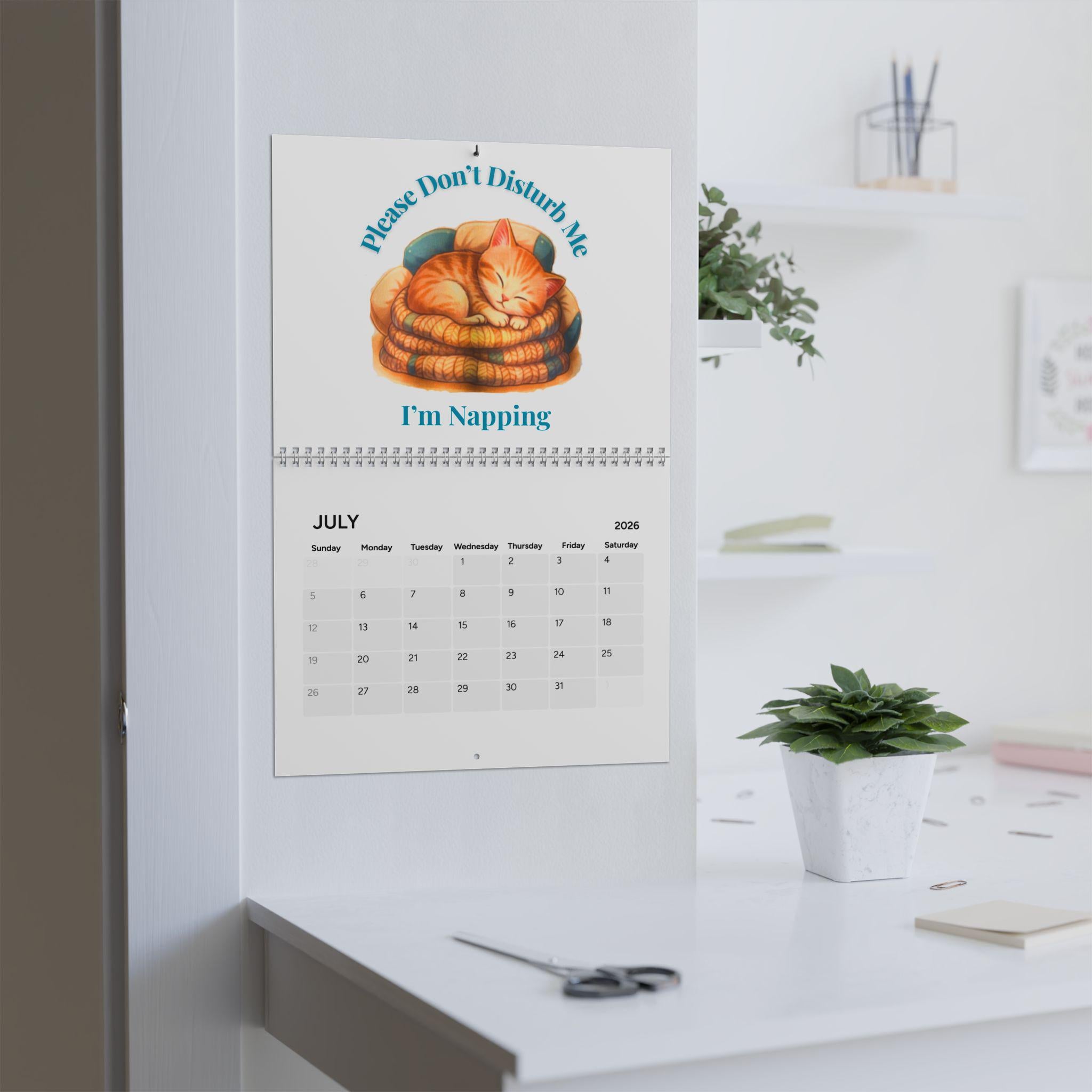 This 2026 wall calendar brings a warm, slow-morning moment to your home or workspace. Each month shows a cozy illustration of a curled-up cat atop a woven basket, paired with the gentle reminder “Please Don’t Disturb Me — I’m Napping.” The clean, easy-to-read date grid leaves room for notes and plans, while the semi-gloss 270gsm paper and vibrant printing keep the artwork bright through the year. Wire coil binding and a centered hanging hole make it simple to flip months and display on a kitchen wall, office cubicle, or bedroom door. Thoughtfully made to be recyclable after removing the wire, it’s a simple, cheerful companion for anyone who appreciates quiet, comfort, and a little feline humor.