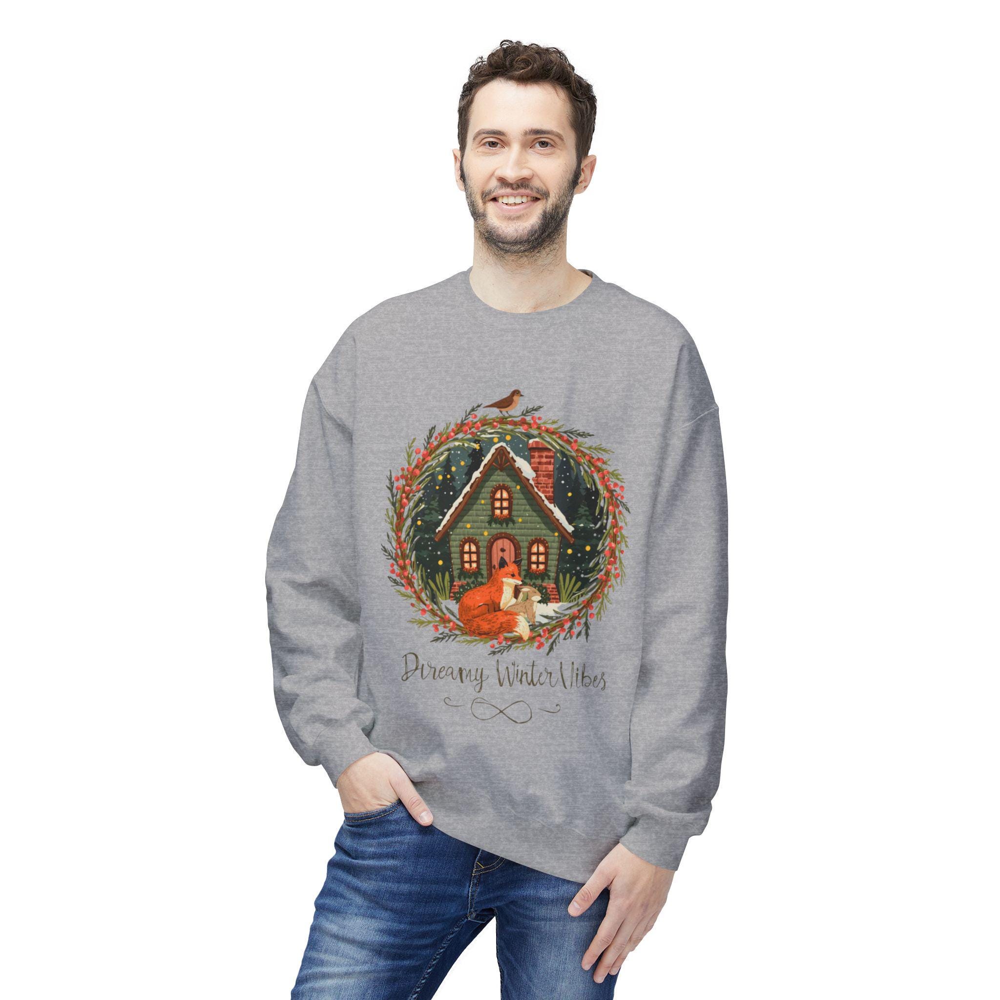 Wrap yourself in a quiet, storybook moment. This crewneck carries the hush of a snow-dusted lane and the warm glow of lantern light inside a tiny cottage. Soft, slightly substantial fabric drapes easily across dropped shoulders, so you can layer a shirt underneath or pull it on for an evening by the window. The knit, seamless body and ribbed hem settle against you like a gentle embrace—comfort without slump. Picture a slow winter afternoon: tea steaming, wool socks on, the sweater holding that domestic calm. For people who collect cozy rituals—candle-lighting, low playlists, hand-written letters—this sweatshirt becomes part of the ritual, a soft constant through the season.