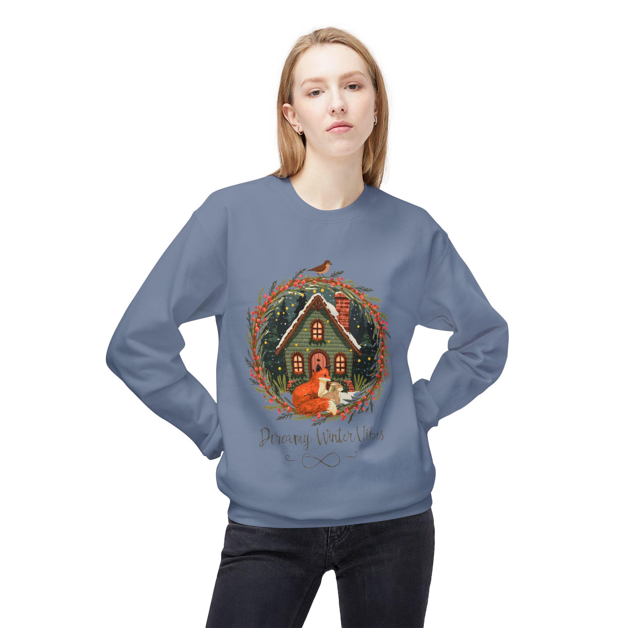 Fairy Cottage Cozy Winter Crewneck Sweatshirt | Cottagecore Holiday Sweater