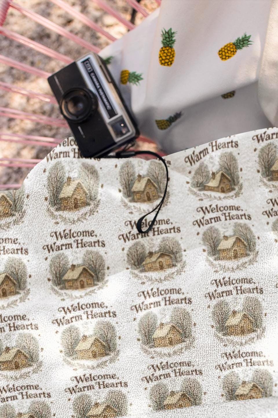 Welcome Warm Hearts vintage seashell pattern Beach Towel | coastal farmhouse beach towel