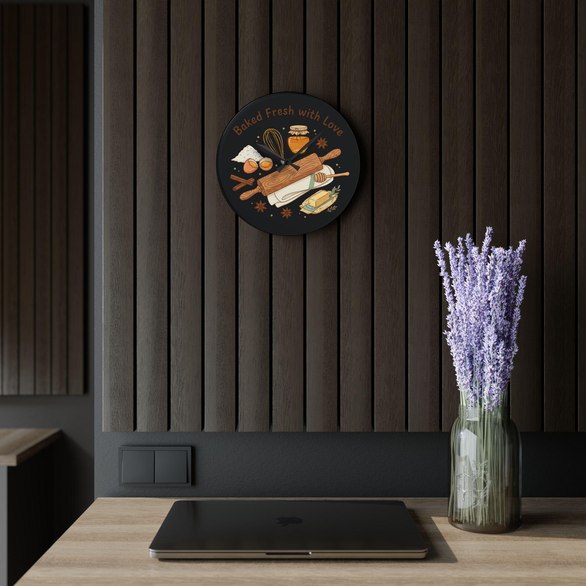 Baked Fresh with Love Acrylic Wall Clock |Kitchen Decor,Living Room Wall Art