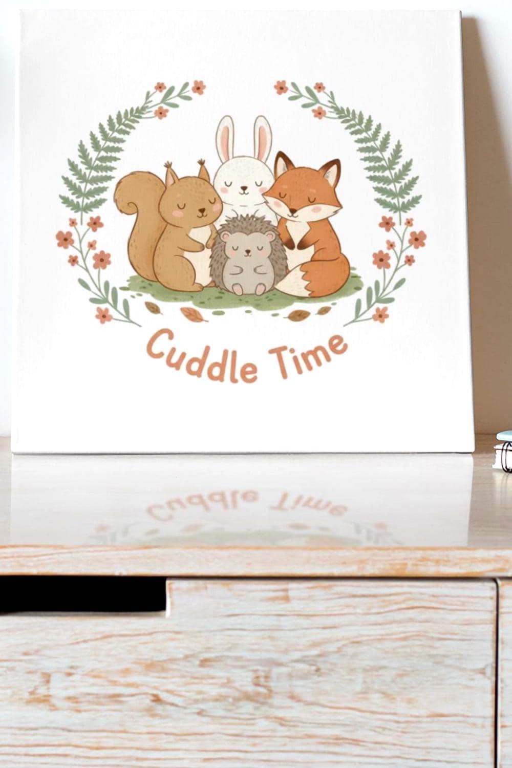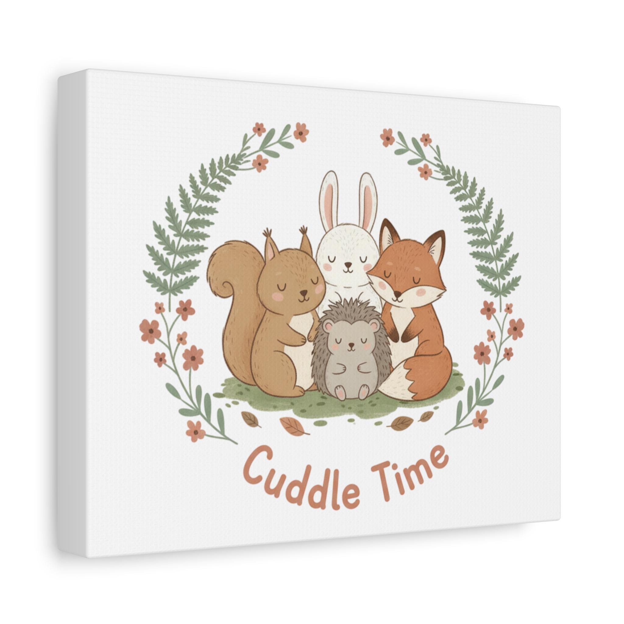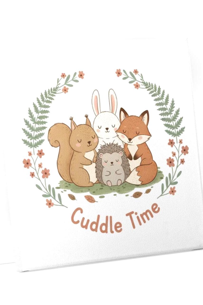 Cuddle Time Cute Animal Illustration Canvas | Whimsical Forest Critter Art