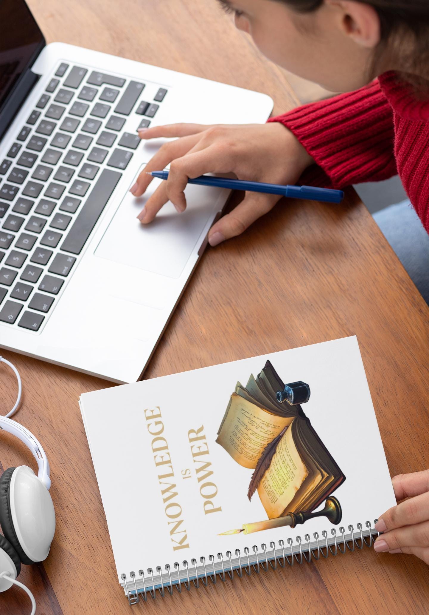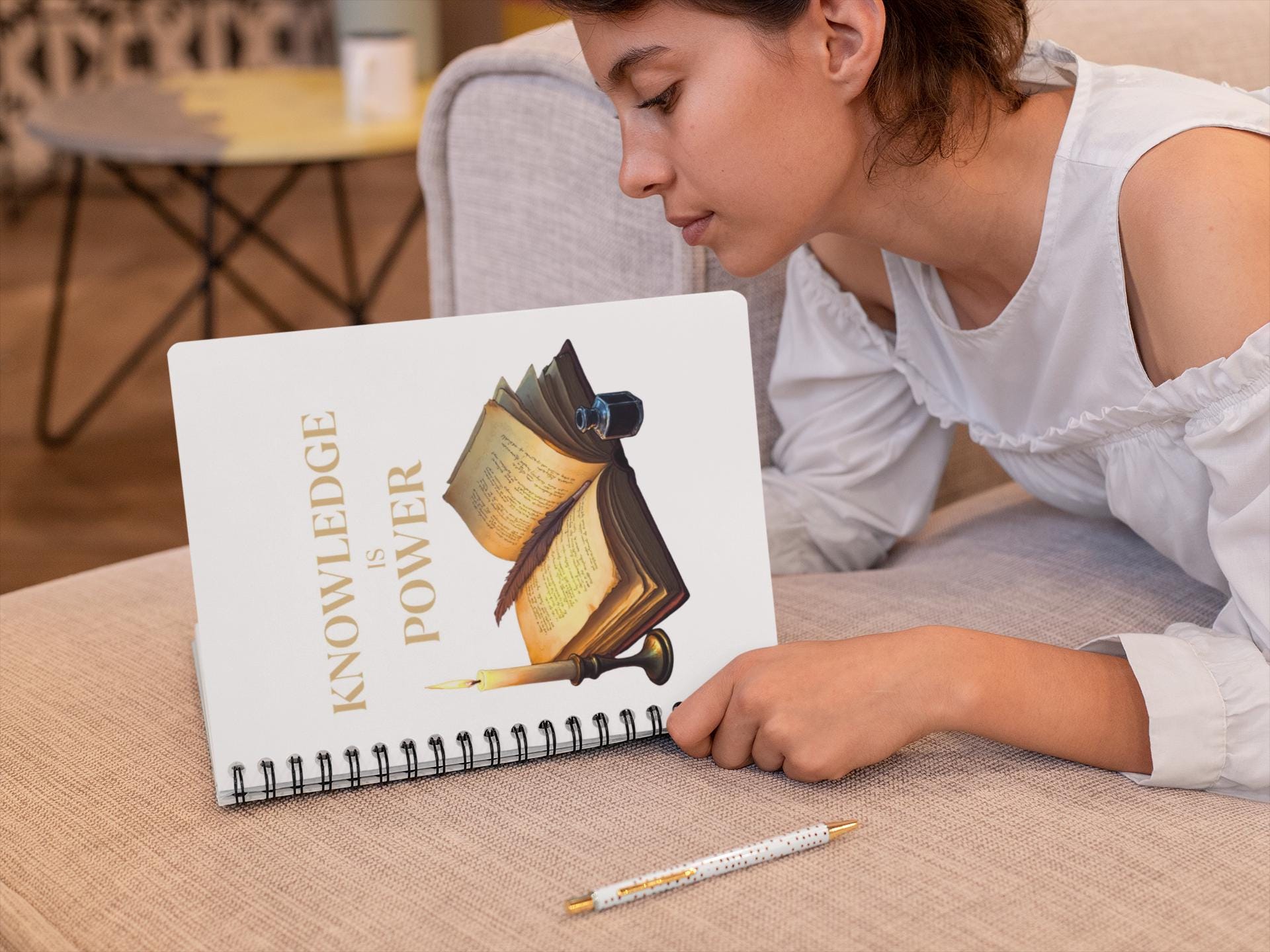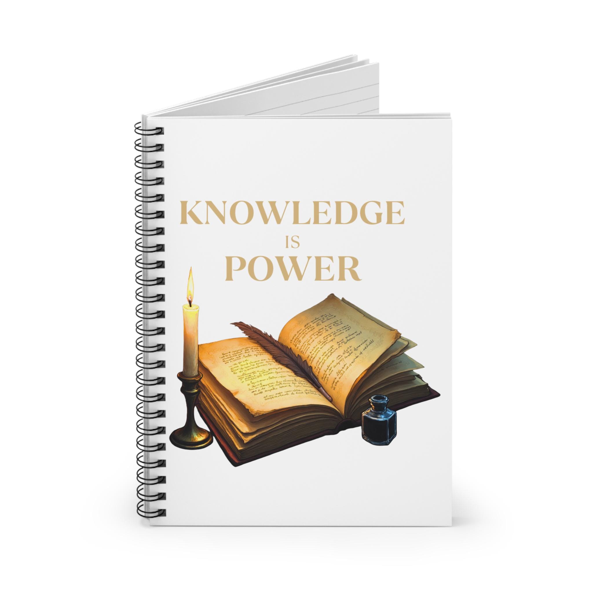 Light the desk lamp, uncork a bottle of ink, and let your thoughts find a home. This ruled spiral notebook pairs warm, vintage imagery — an open book, feather quill, inkwell and candle — with clean, lined pages so ideas flow without distraction. The sturdy 350 gsm covers protect notes between uses, while a metal spiral lets pages turn smoothly or remove cleanly when you need to share a page. A discreet document pocket in the back keeps receipts, clippings, or inspiration close at hand. Sized to slip into a bag or stack on a shelf, it’s a quiet companion for study sessions, planning, journaling, and late-night writing bursts.
