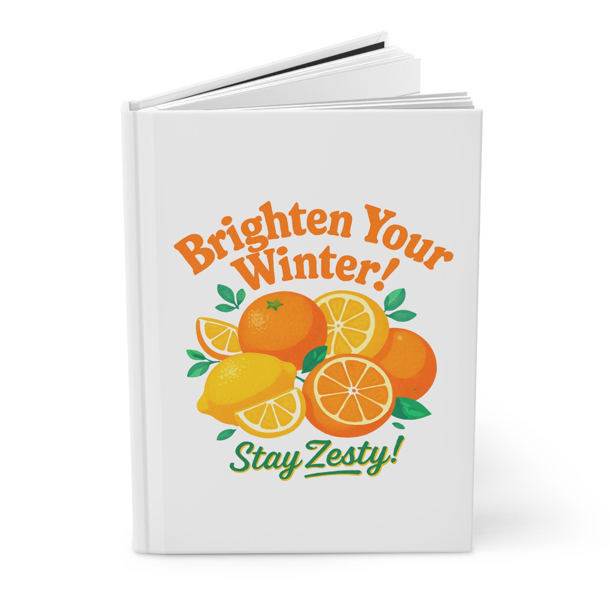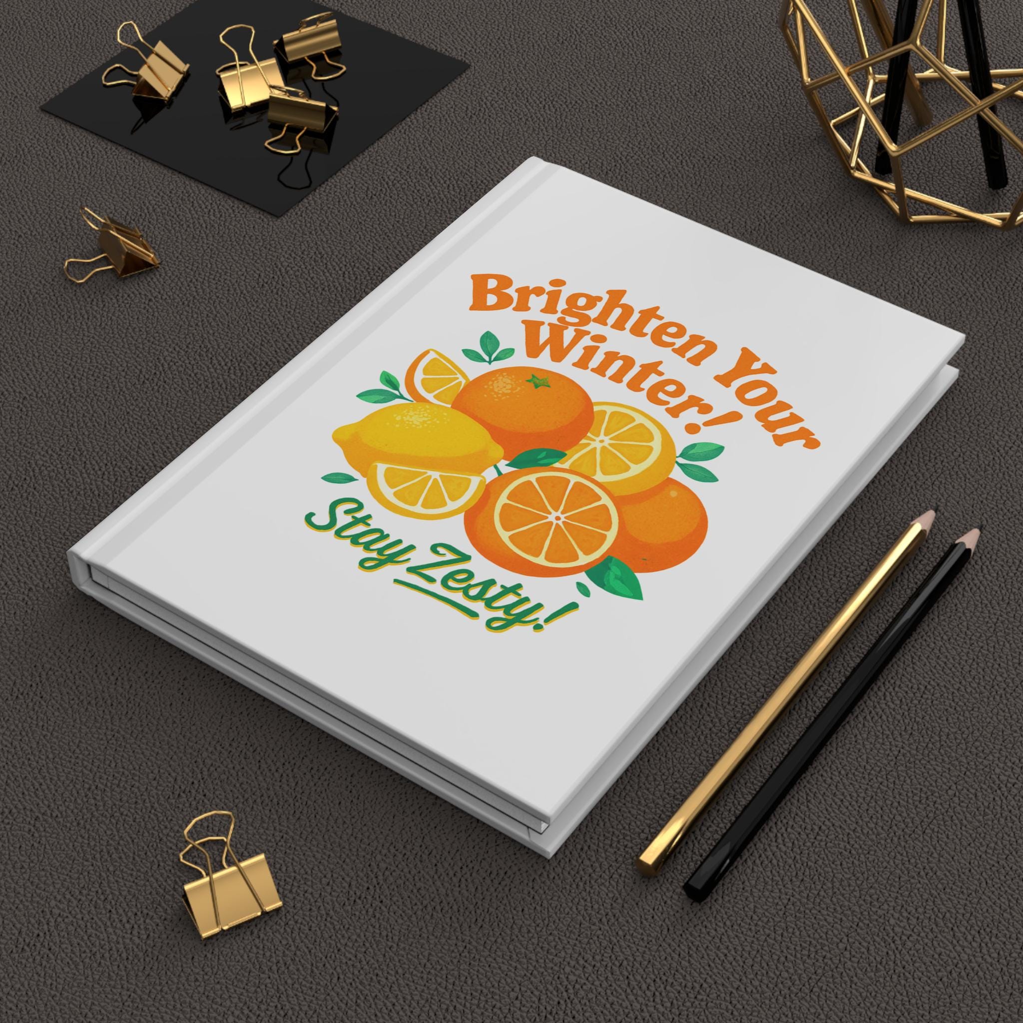 Brighten Your Winter Stay Zesty Hardcover Journal | Citrus Illustration, Lemon Orange