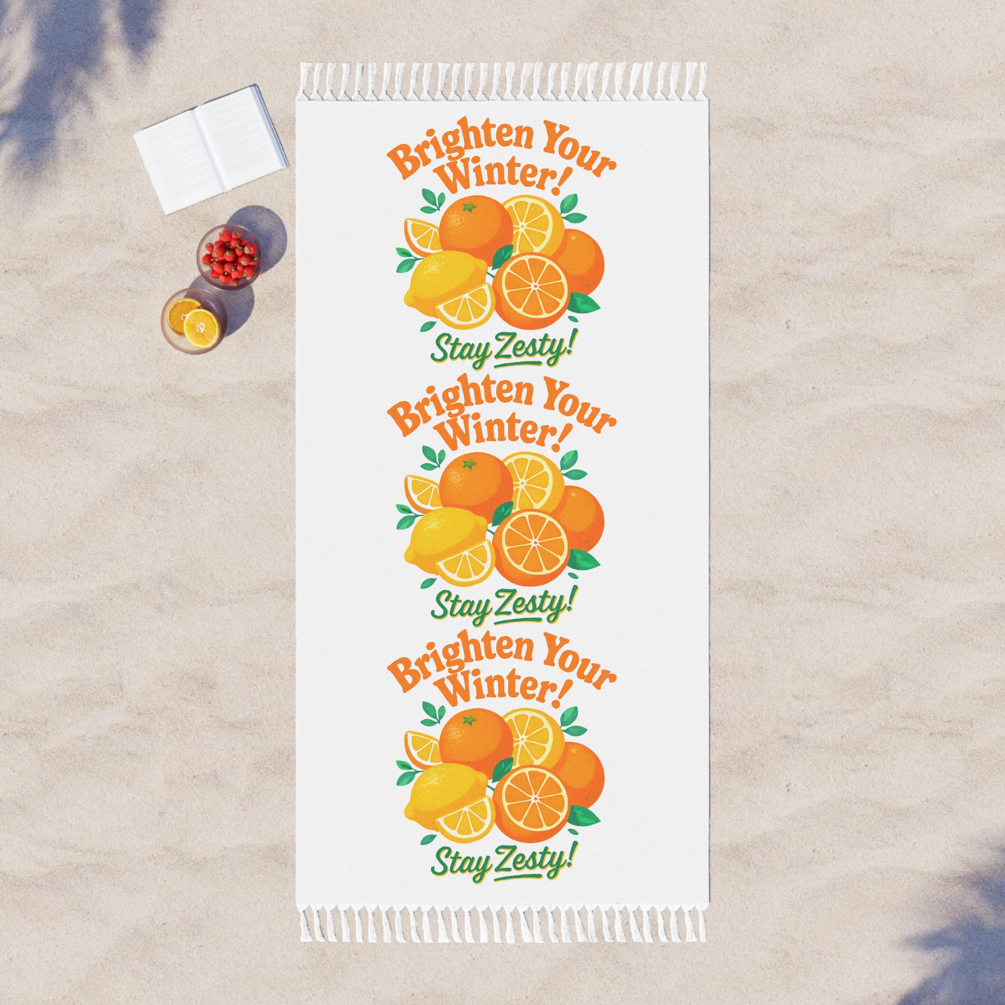 Brighten Your Winter Stay Zesty Citrus Beach Towel | Boho Fringe