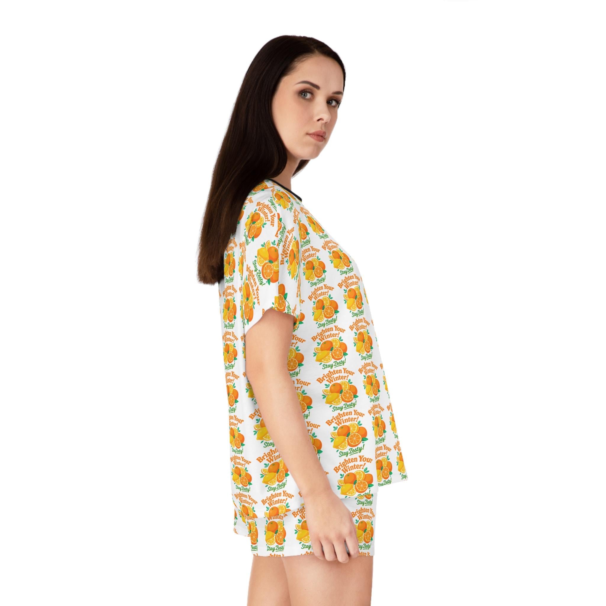 Orange Blossom Pattern Women's Pajama Set | All-Over Print Sleepwear
