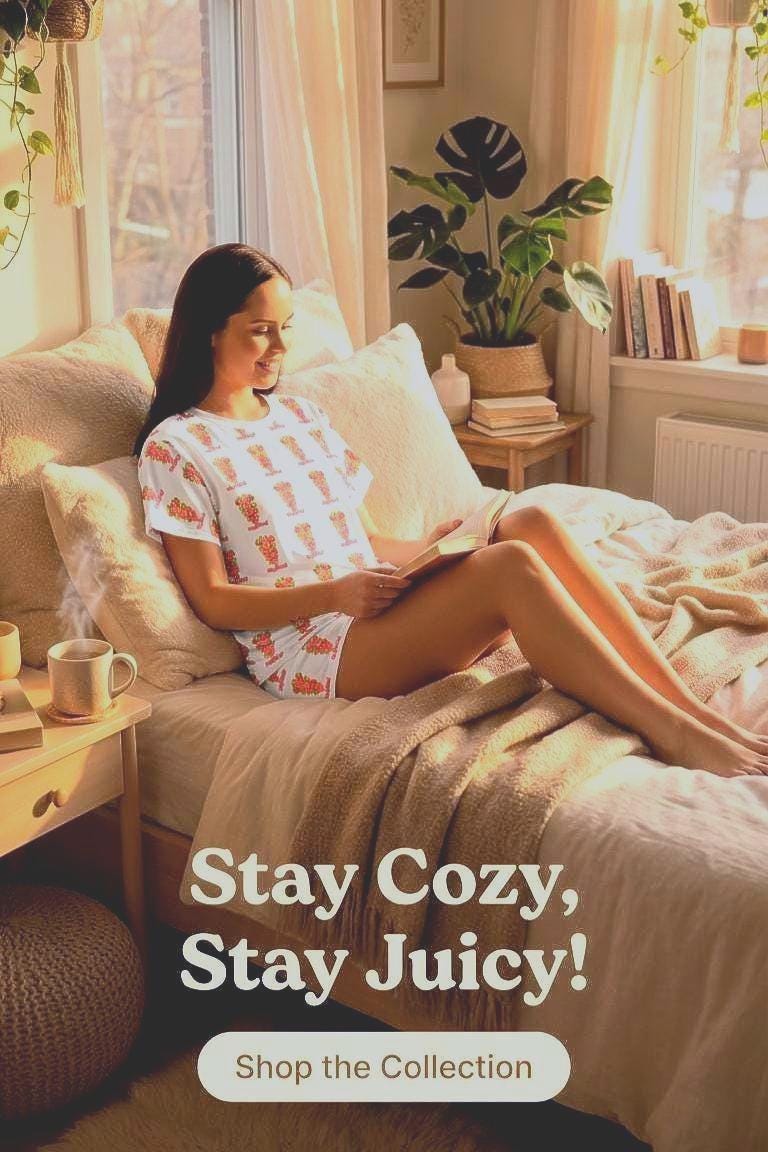 Cozy up in this adorable Strawberry Bundle with the phrase Stay Juicy, women’s short pajama set – the perfect mix of cute and comfy. With its sweet all-over strawberry pattern and soft, breathable fabric, this lightweight PJ set is made for relaxed evenings, lazy Sundays, and weekend lounging.