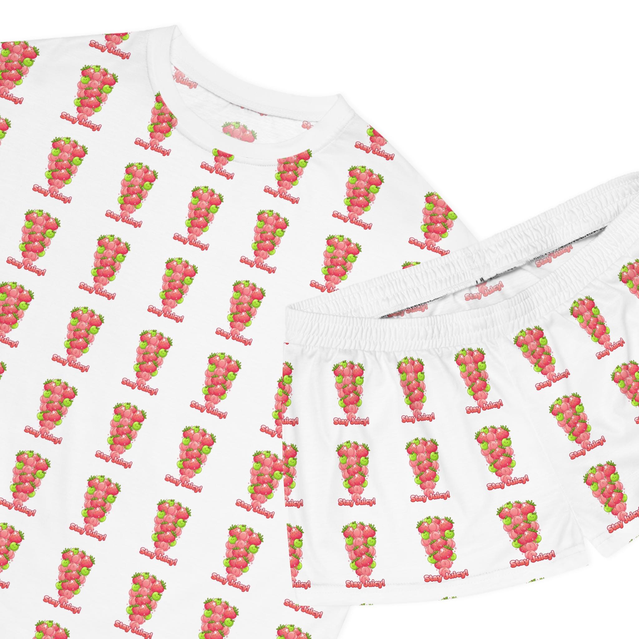 Strawberry Pajama set -Valentine Gift for Her - All Over Print Shorts, Soft Lightweight Sleepwear, Kawaii Strawberry Loungewear
