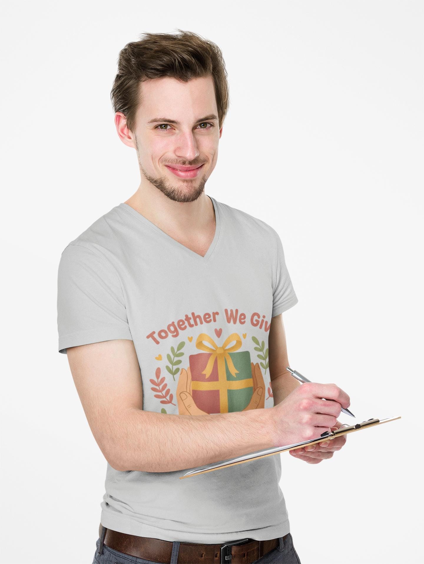 Warm, value-forward tee that celebrates local generosity with a simple badge-style graphic: two hands cradling a wrapped present framed by leafy accents and the phrase “Together We Give.” The earthy color palette and friendly rounded type feel approachable and inclusive, matching the Holiday Giving & Community Support trend language around paying it forward and supporting small business. Lightweight cotton keeps the design wearable year-round and well-suited for volunteers, neighborhood events, or community fundraisers.