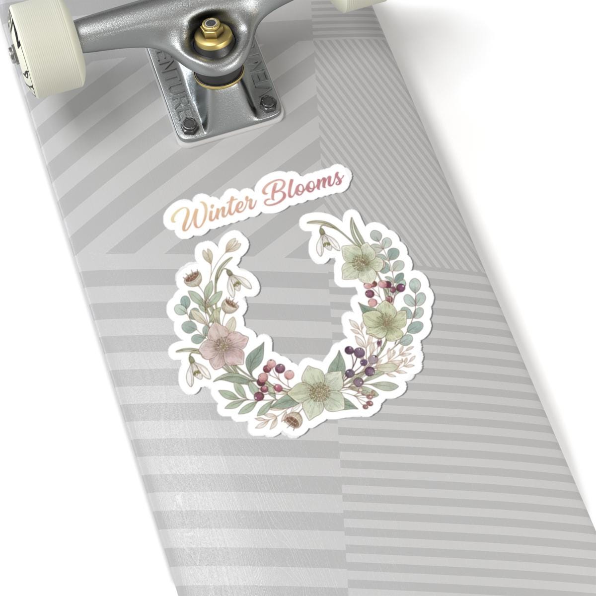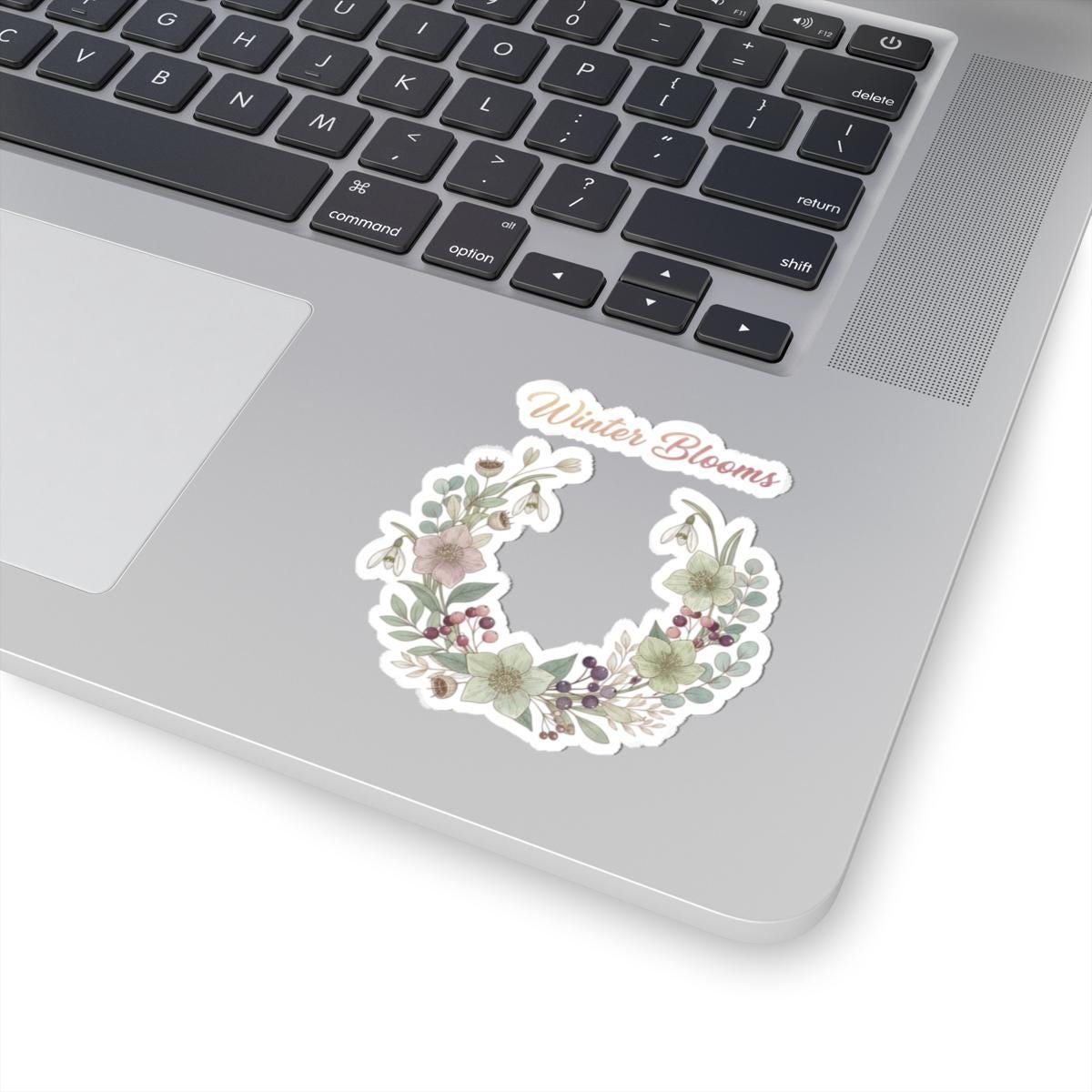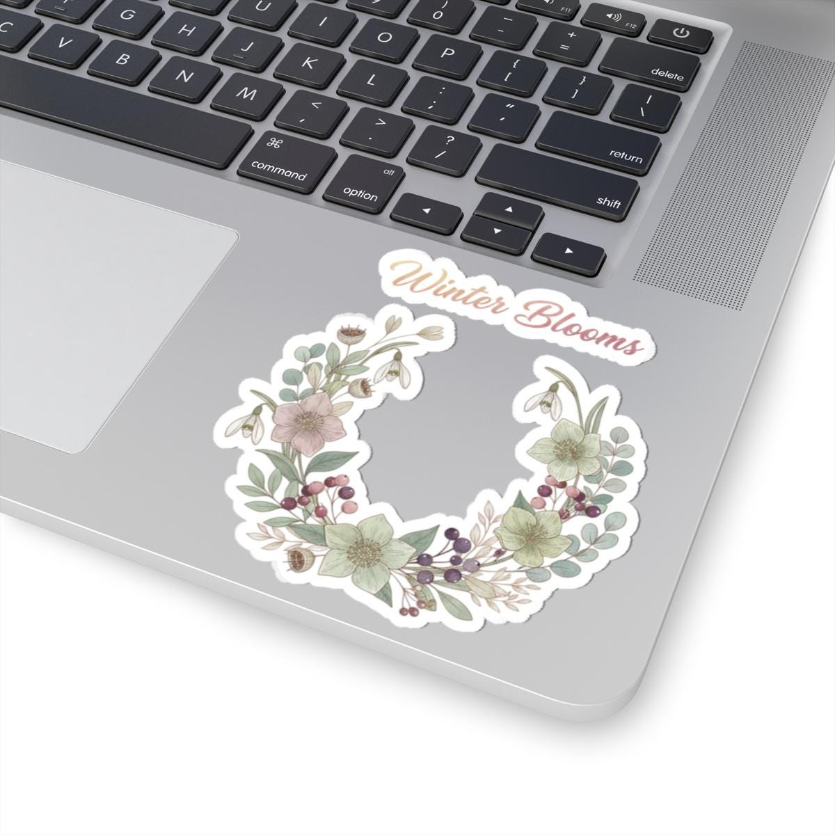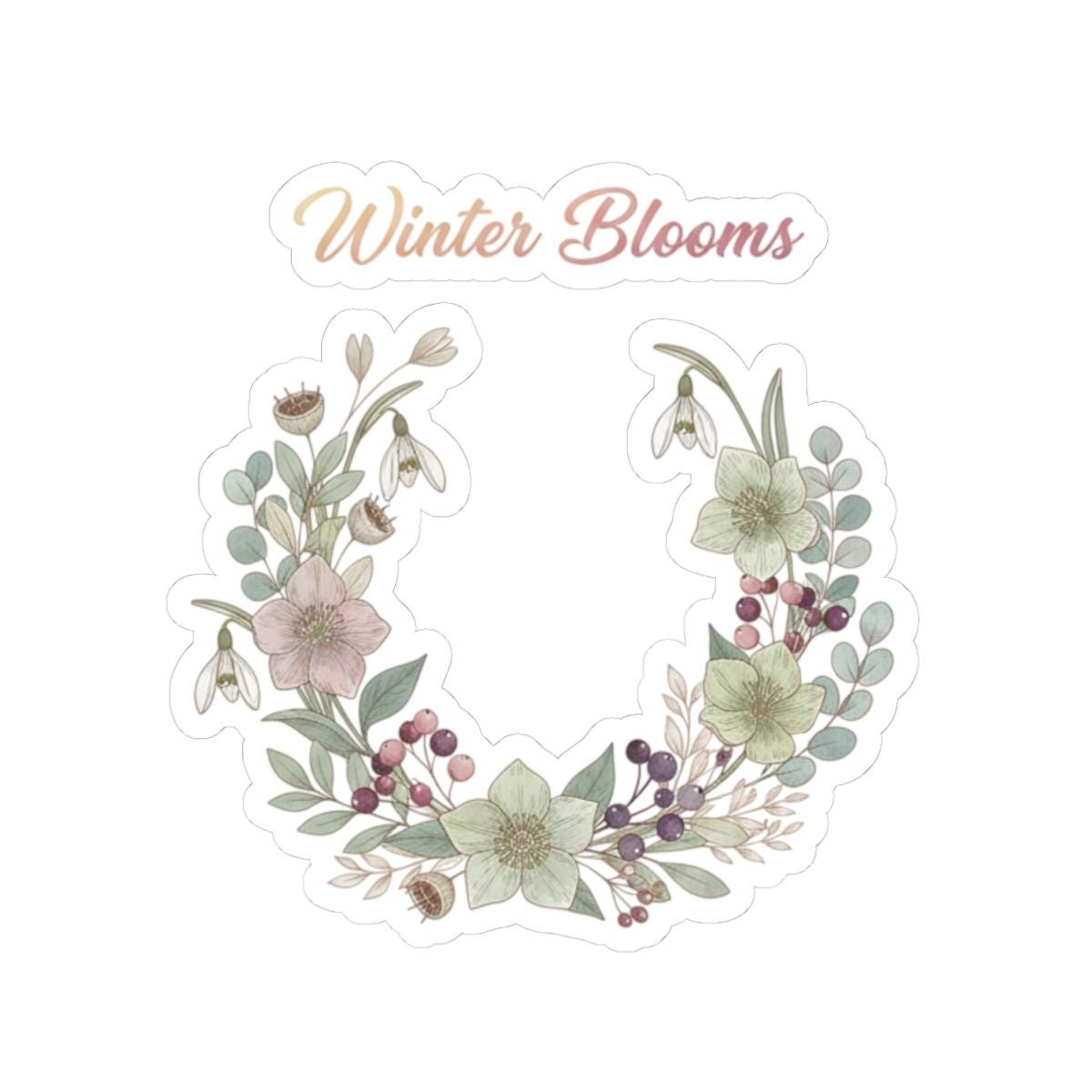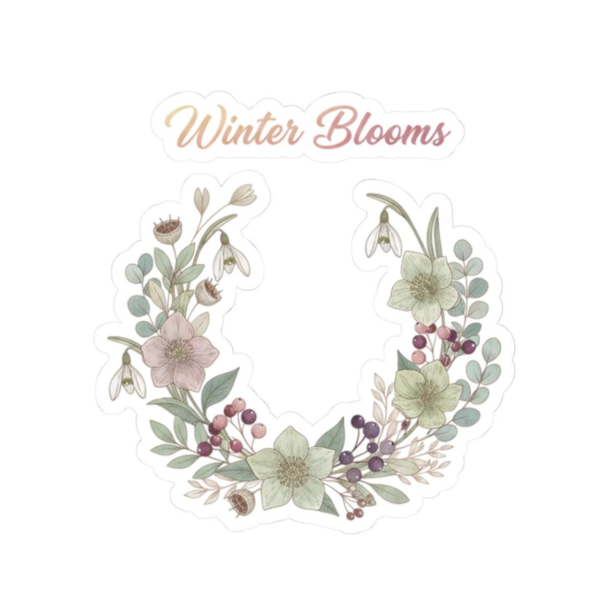 Winter Blooms Wreath Kiss-Cut Sticker | cottagecore winter, rustic floral