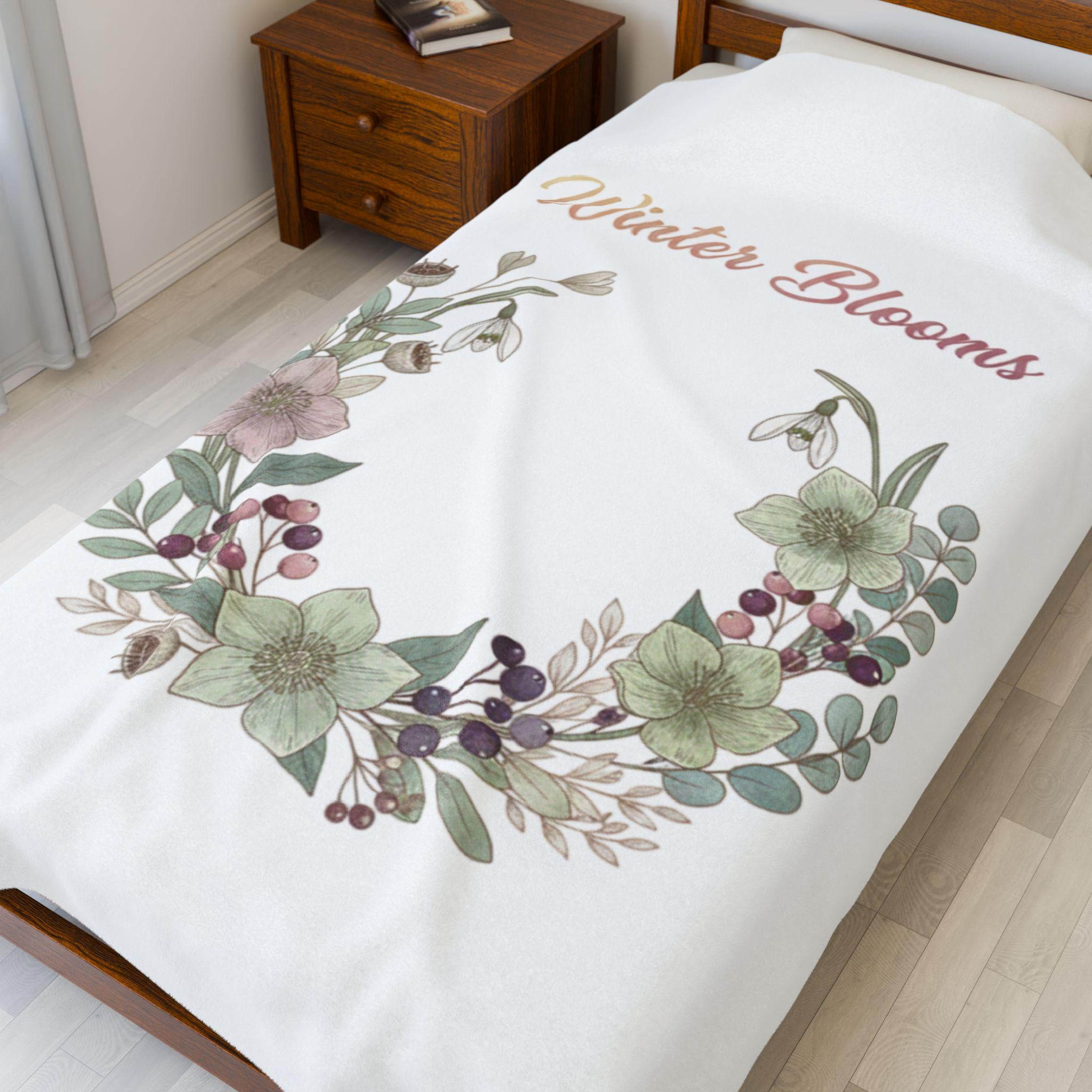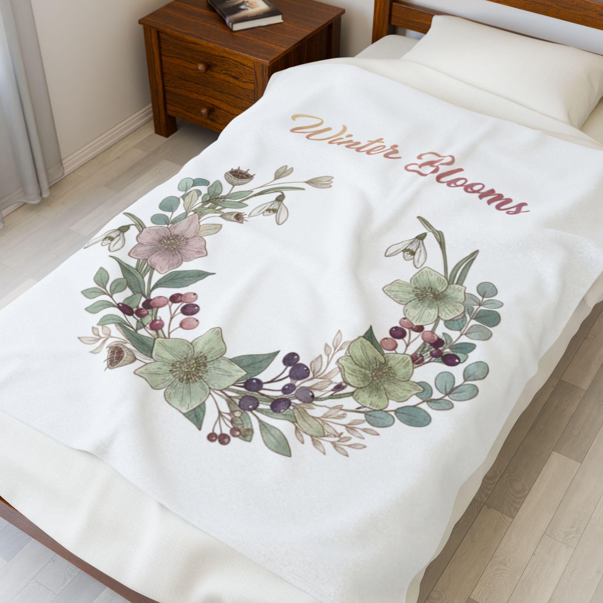 Winter Blooms Velveteen Blanket | cottagecore winter, rustic floral