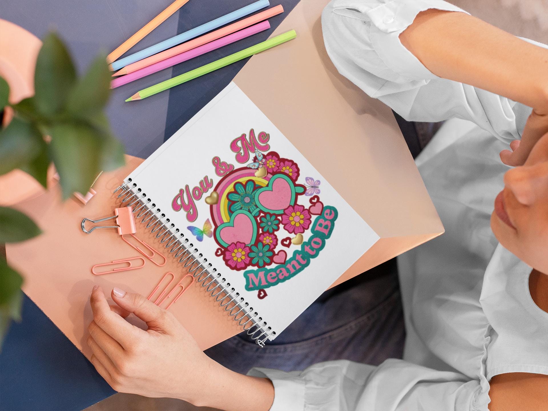 You & Me Meant to Be Spiral Notebook | Heart Sunglasses Floral Retro Journal
