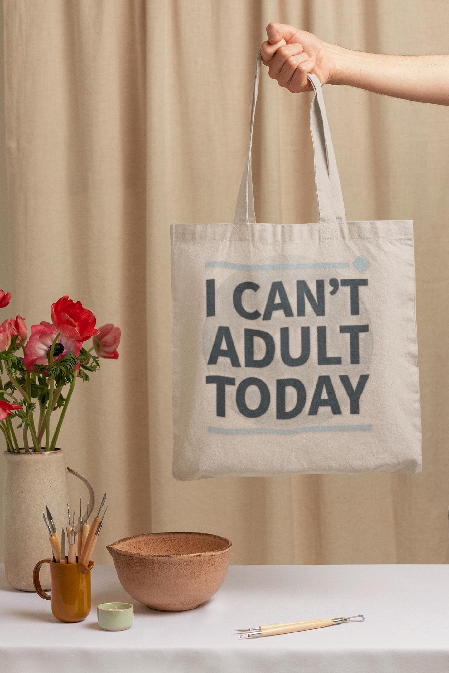 I Can't Adult Today Tote bag | Canvas Humor Quote, Funny Mom Tote