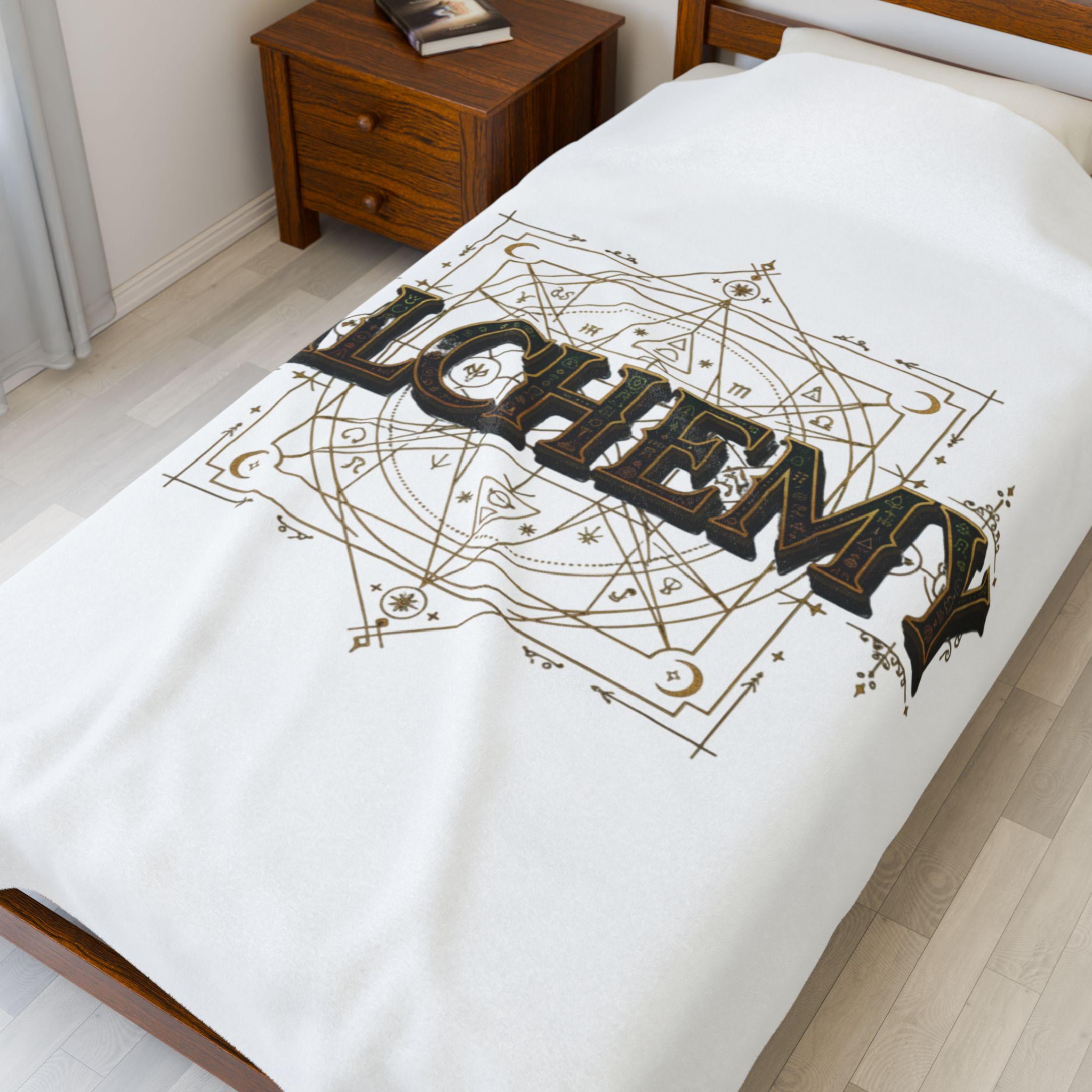 Witchy Alchemy Symbol Velveteen Plush Blanket | Mystic Occult Throw