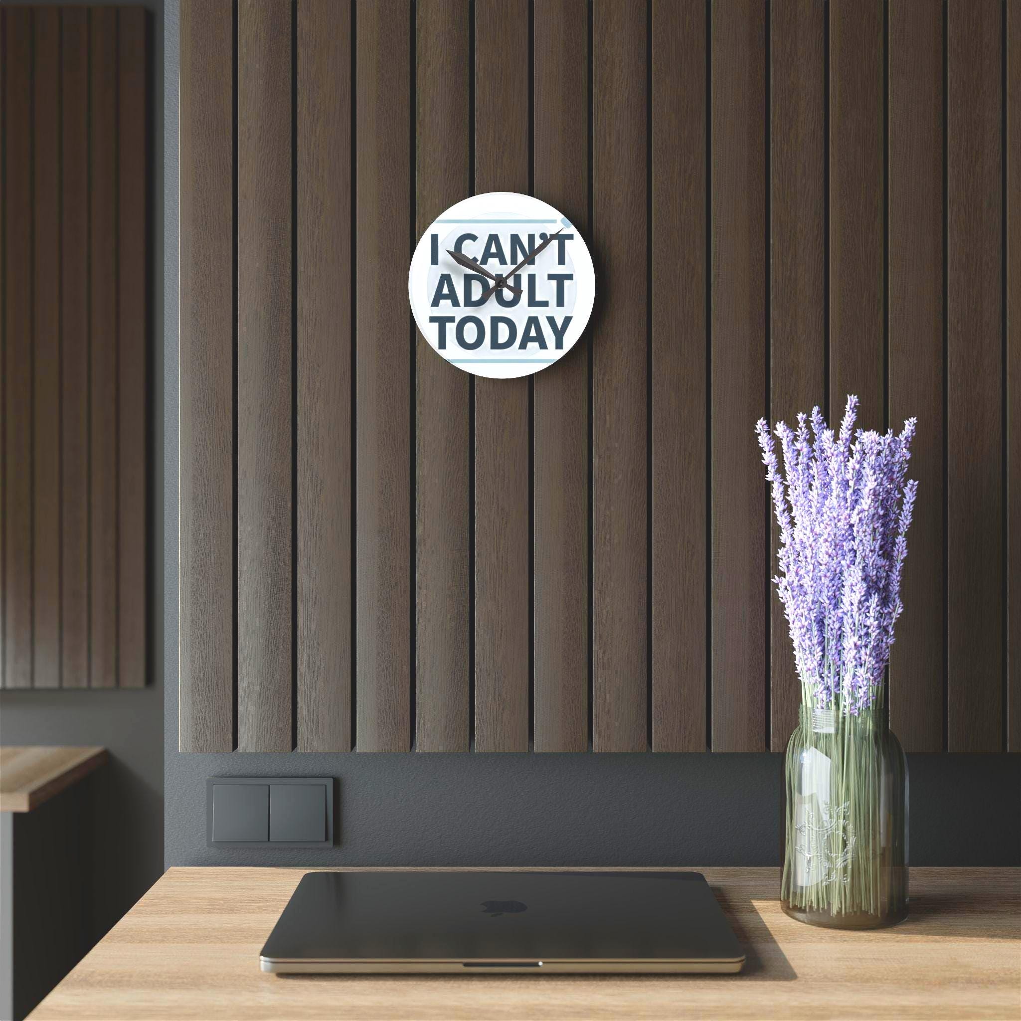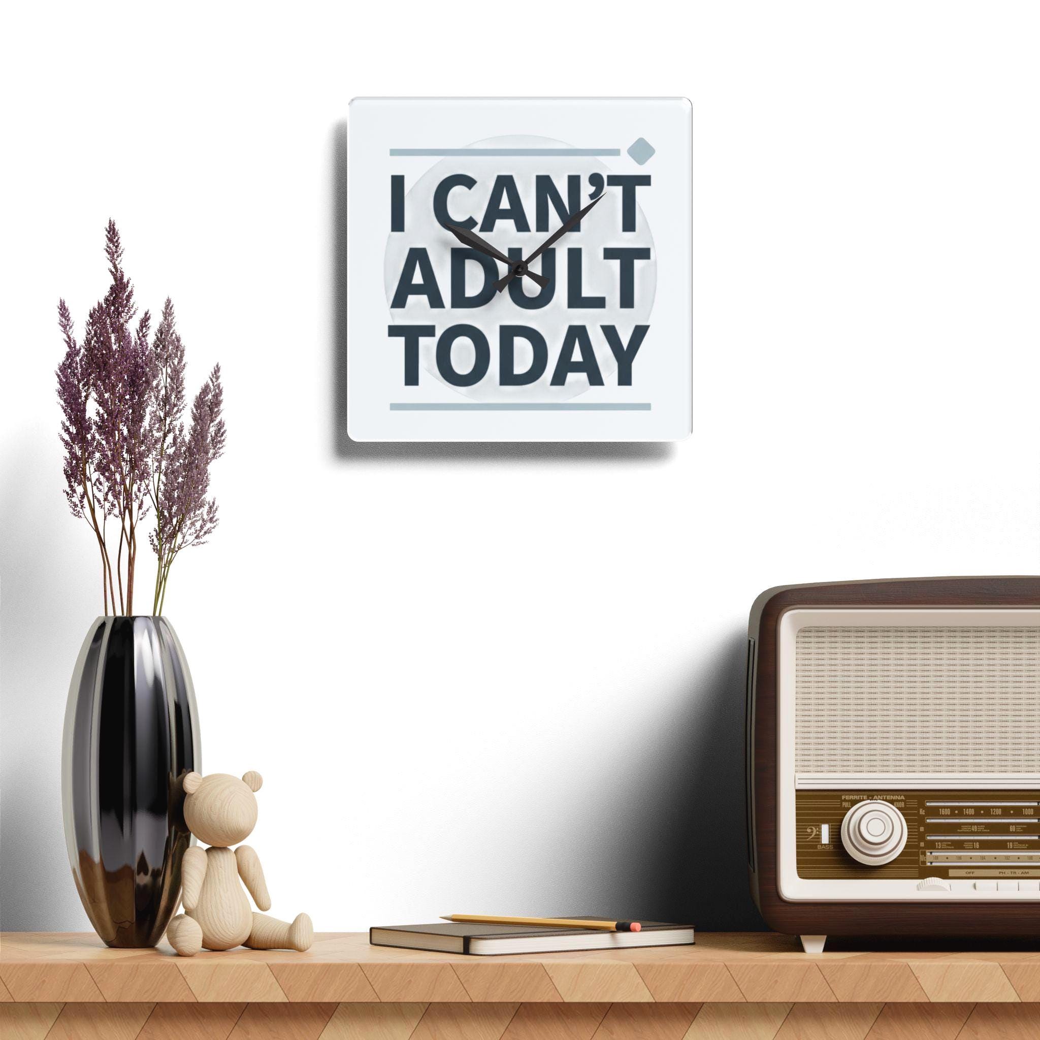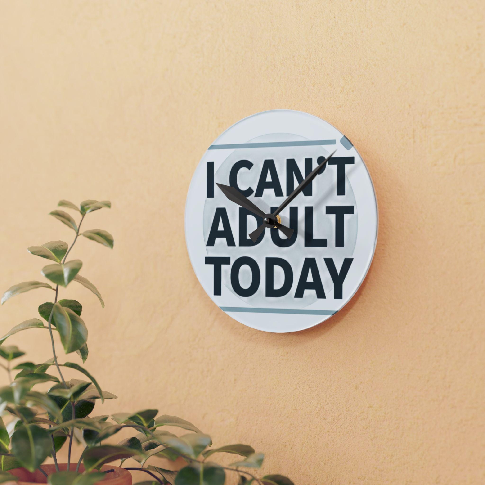 I Can't Adult Today Acrylic Wall Clock | Funny Typography Home Decor