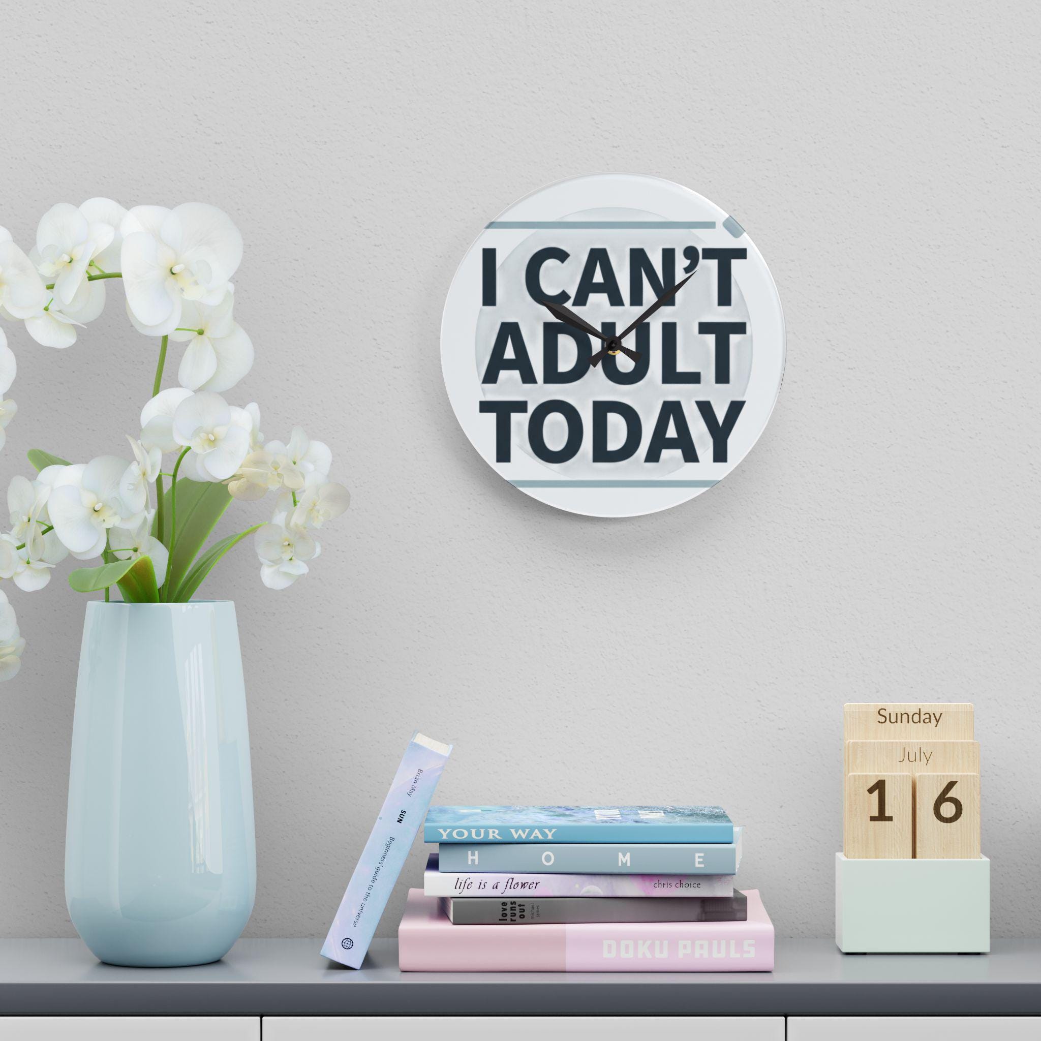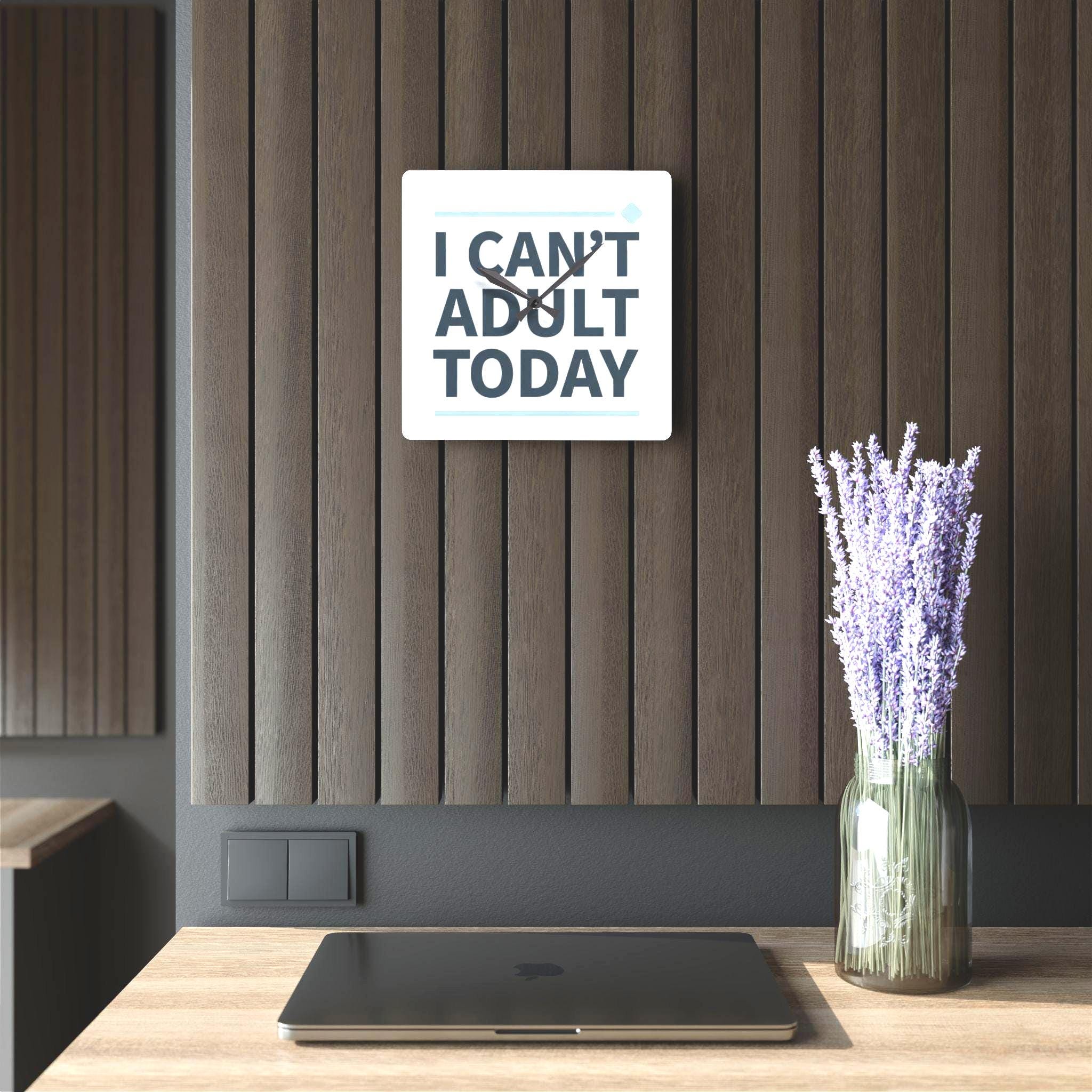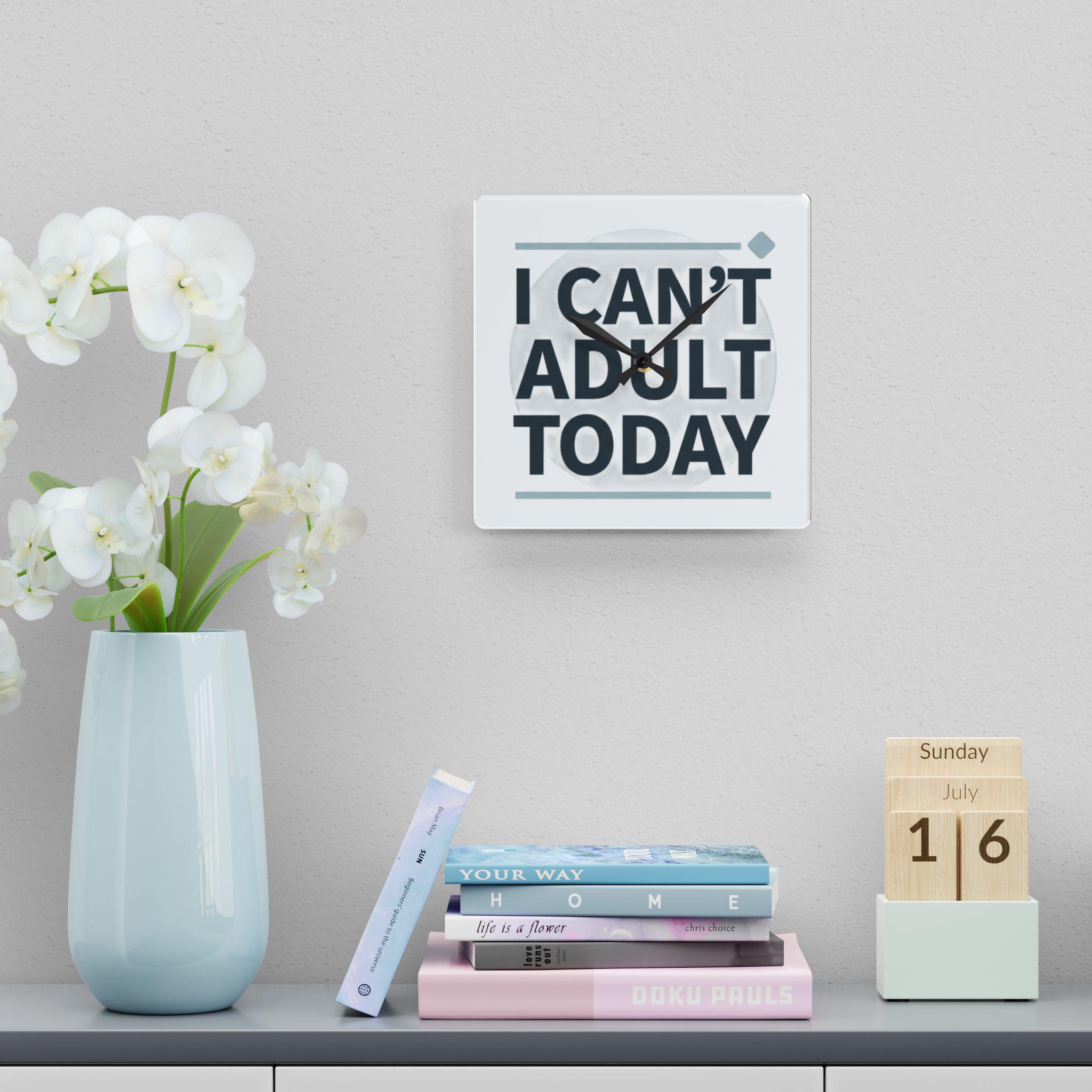 I Can't Adult Today Acrylic Wall Clock | Funny Typography Home Decor
