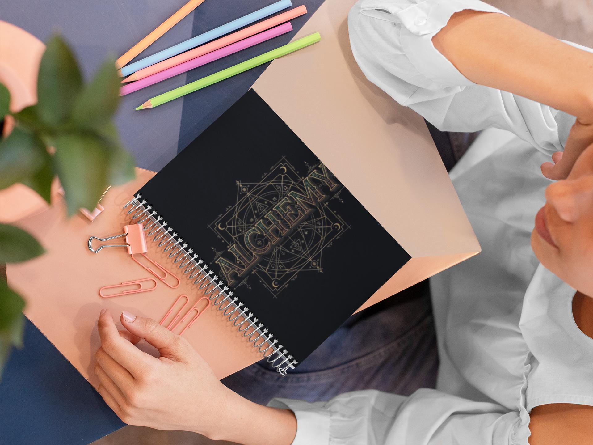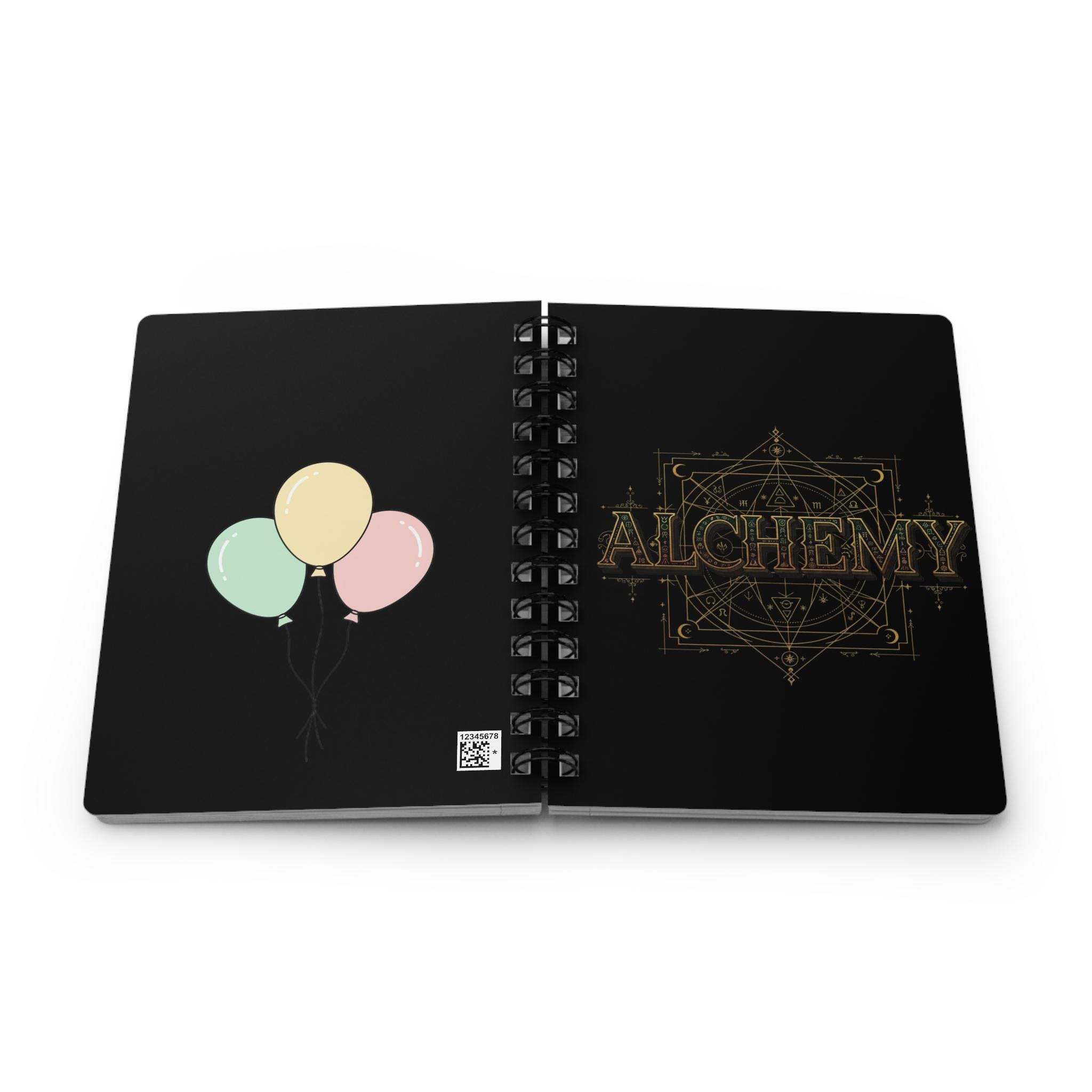 A midnight-black spiral journal that feels like a private ritual. The cover’s glossy laminate deepens the inky background while golden alchemy art or soft pastel balloons stand out with crisp, vibrant color. Open it and find 150 lined pages of smooth 90gsm paper that take pens, pencils, and markers without fuss. The metal spiral lets you fold the book back or remove pages cleanly when ideas need to travel. Full-wrap printing gives the cover a finished, collectible look — a compact notebook for sketching formulas, plotting stories, tracking experiments, or jotting moments of gratitude.