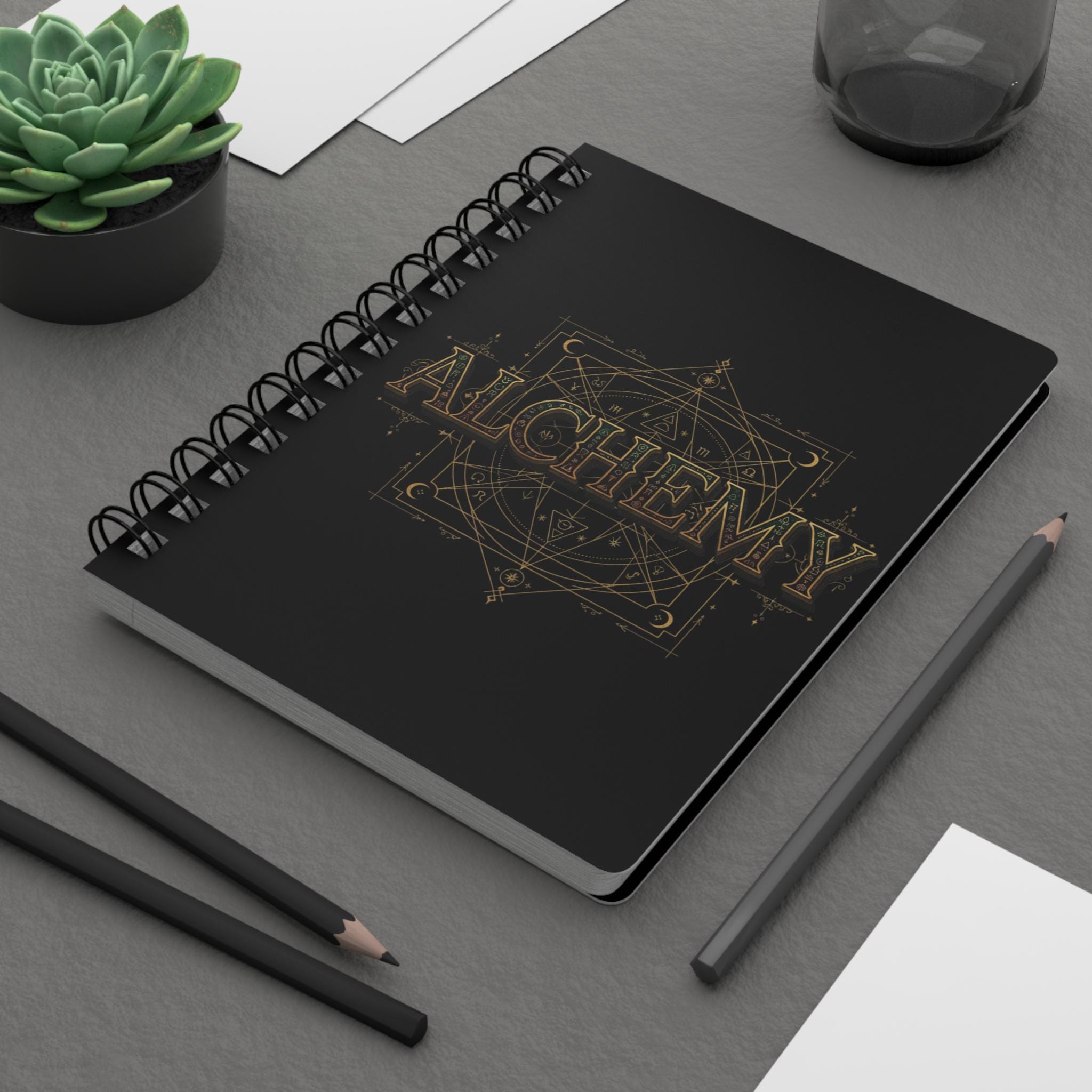 Gold Alchemy Sigil Spiral Bound Journal | Occult Geometric Notebook