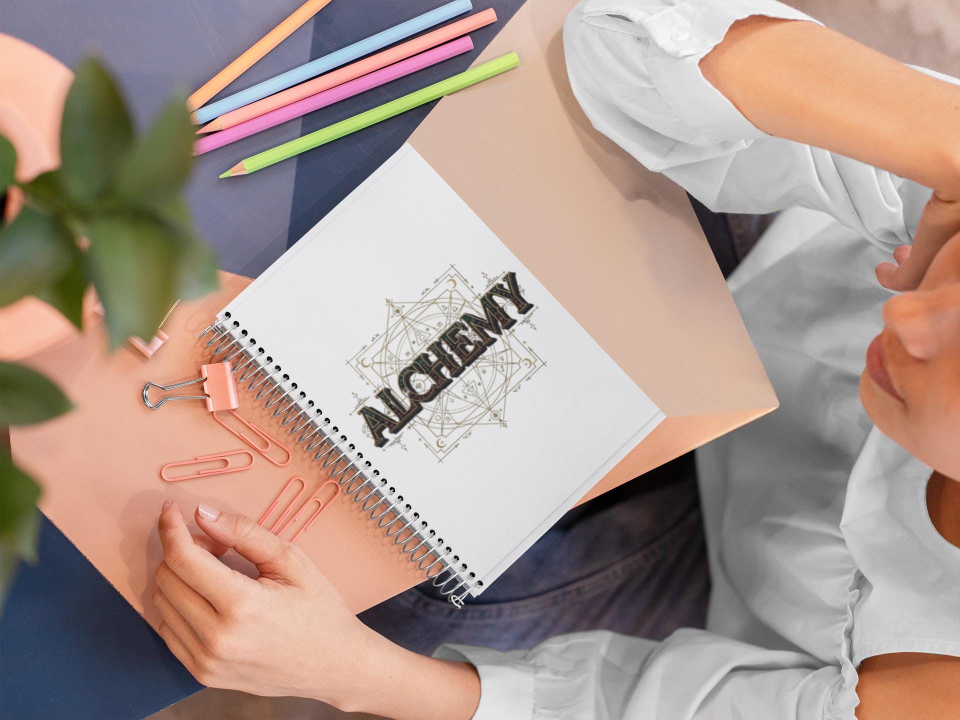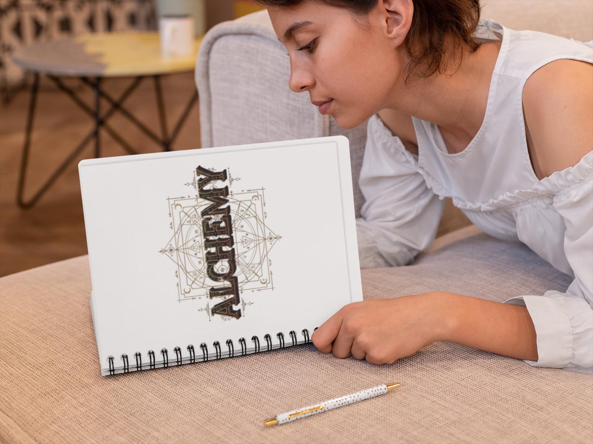 Carry a little wonder with you every day. This spiral-bound journal pairs a glossy, full-color cover with a sturdy metal coil so pages turn smoothly and any sheet can be removed cleanly. Inside, 150 lined pages of 90gsm paper welcome sketches, spells, lists, and daydreams without bleeding or ghosting. The front, back and inner covers are printed in vibrant, fade-resistant color—whether you choose the ornate “Alchemy” emblem or the soft pastel balloons, each design reads like a small talisman on your desk or tucked into a bag. The laminated finish gives the cover a satiny feel that resists scuffs, and a tiny production barcode on the back stays unobtrusive while keeping manufacturing details intact.