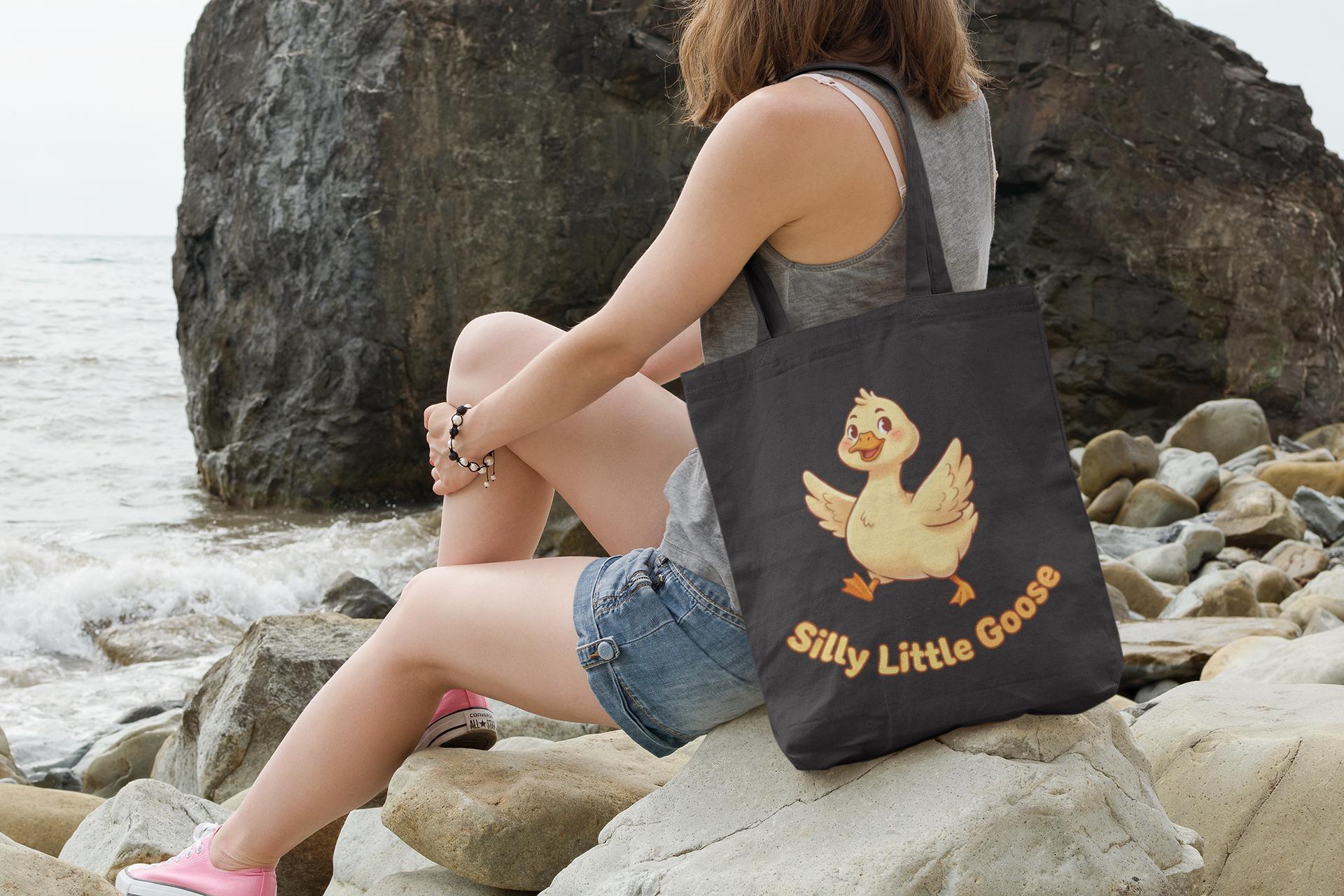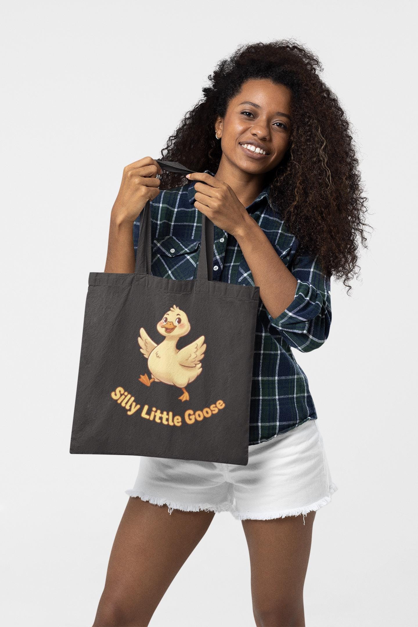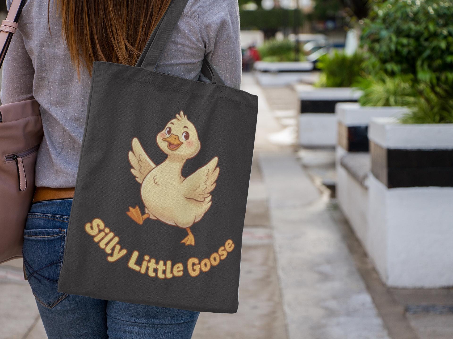 Silly Little Goose Tote, cute goose cartoon honking goose meme canvas bag