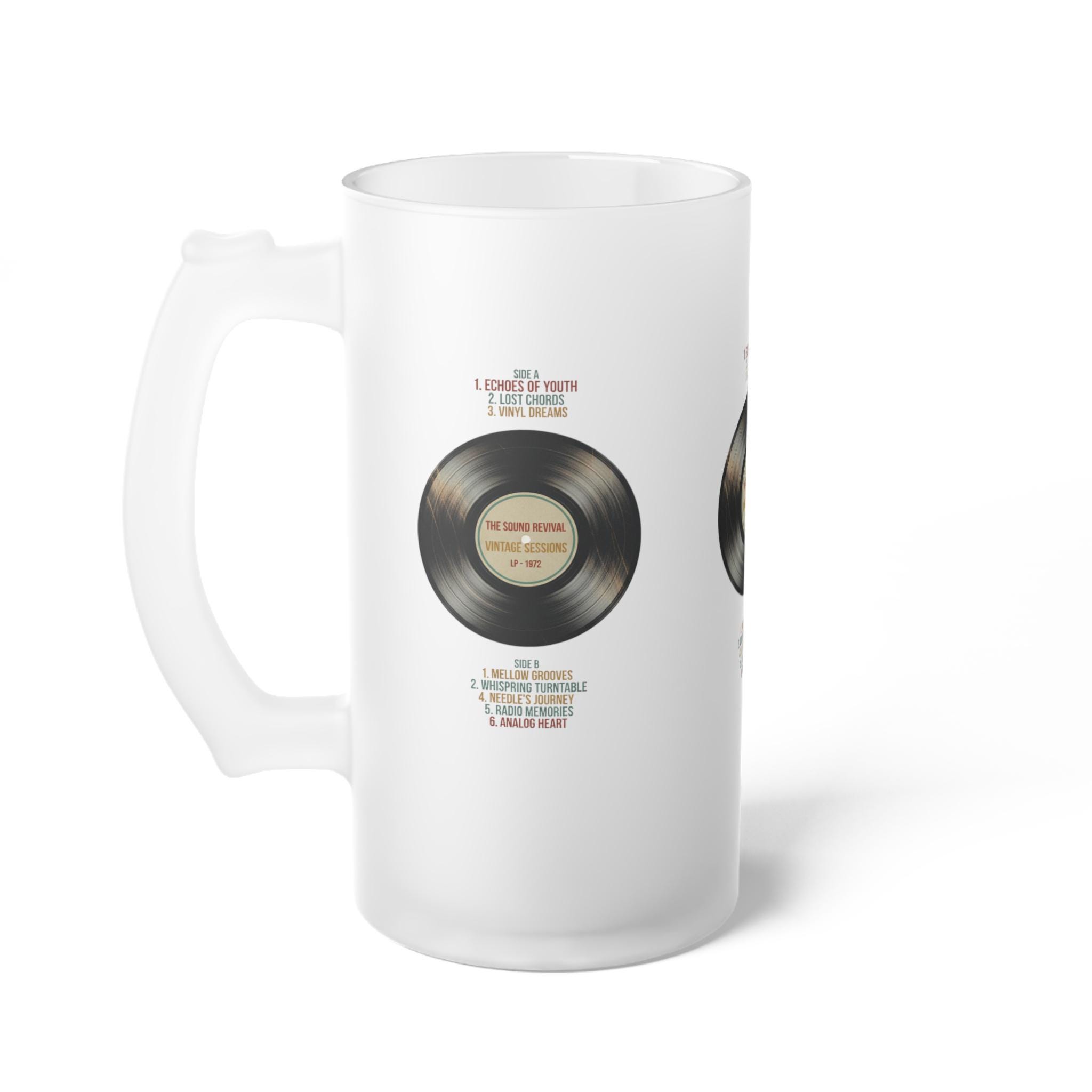 This frosted 16oz beer mug brings vintage vinyl vibes to your drinking rituals. The full-wrap design features a realistic record motif with subtle tracklist details, printed in bright, crisp colors that pop against the matte glass. It feels cool to the touch and sits nicely in the hand thanks to a tall, straight profile and a sturdy handle. Use it chilled for lagers or to serve bold craft brews; the frosted finish keeps the look understated while the colorful print keeps the energy playful. Easy to care for — microwave- and dishwasher-safe — it fits into slow Sunday mornings, backyard barbecues, and late-night listening sessions where the soundtrack matters as much as the draught.