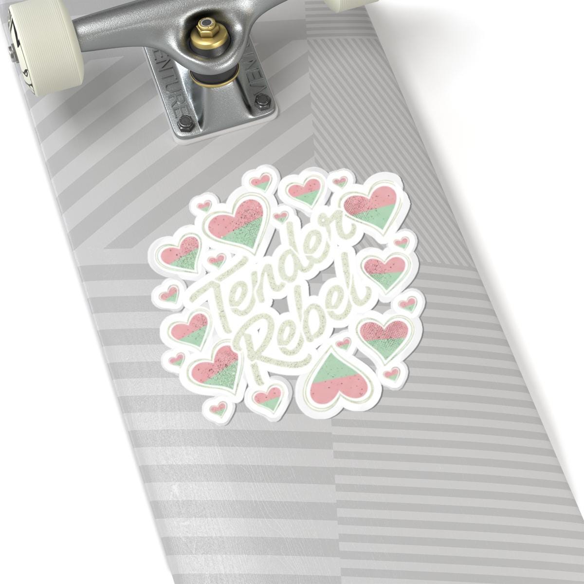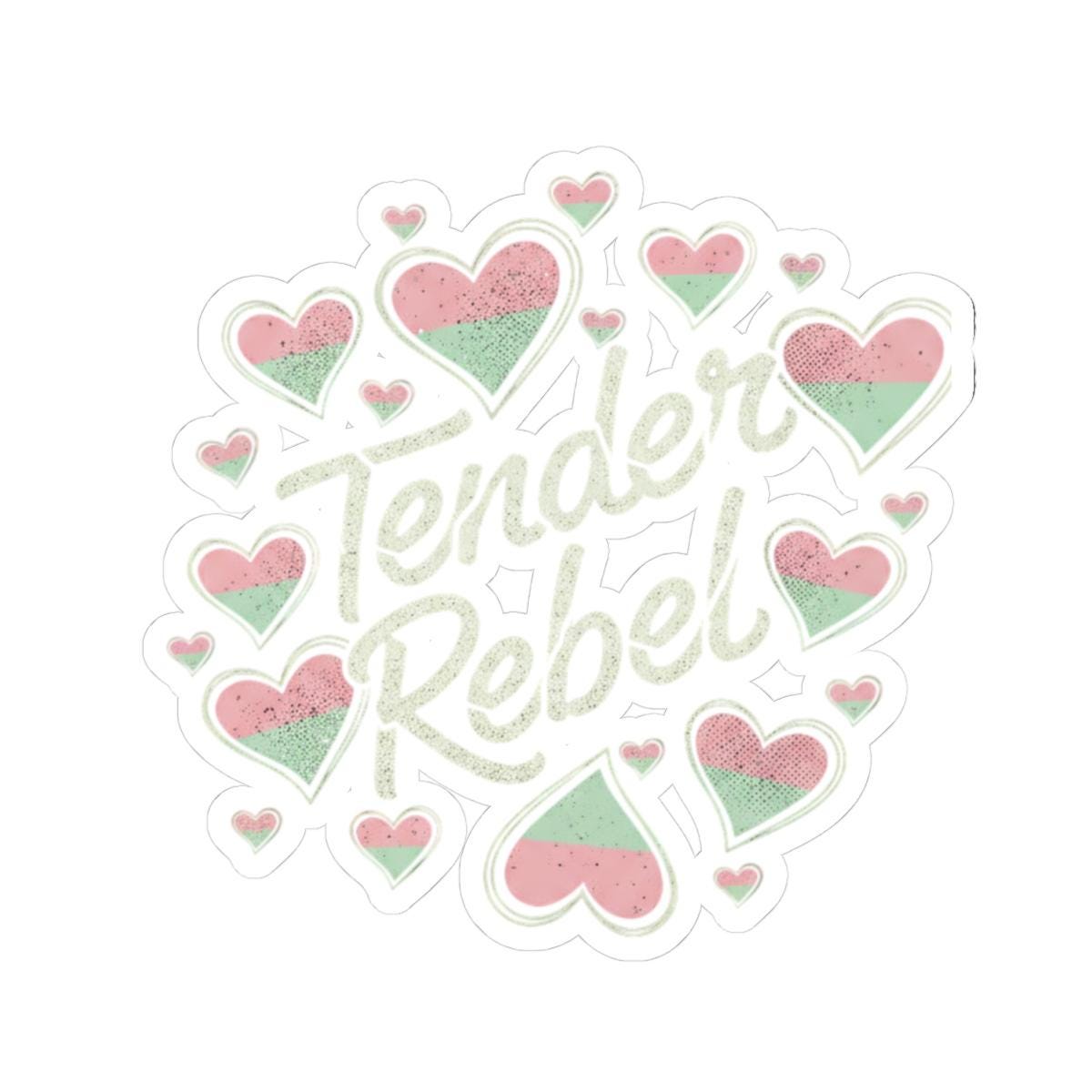 Carry a softened edge of rebellion wherever you place it. This Tender Rebel Heart sticker layers distressed, soft-grunge hearts into a small collage that reads like a private lyric — worn, honest, and quietly defiant. Stick it on your laptop, journal, or bedroom window and let it punctuate your space with a faded-poster vibe: the kind that evokes late-night mixtapes, handwritten zines, and coffee-stained lyric sheets. It’s for people who wear their feelings like vintage denim — vulnerable but bold — and for nights when you want your surroundings to hum with that same bittersweet attitude. The glossy finish catches the light, while the distressed print keeps the look raw, lived-in, and sincere. Sized to layer or stand alone, it slips into everyday routines and small rituals: customizing a travel mug, marking a sketchbook entry, or tacking a line of heart-collage stickers across a dorm room mirror.