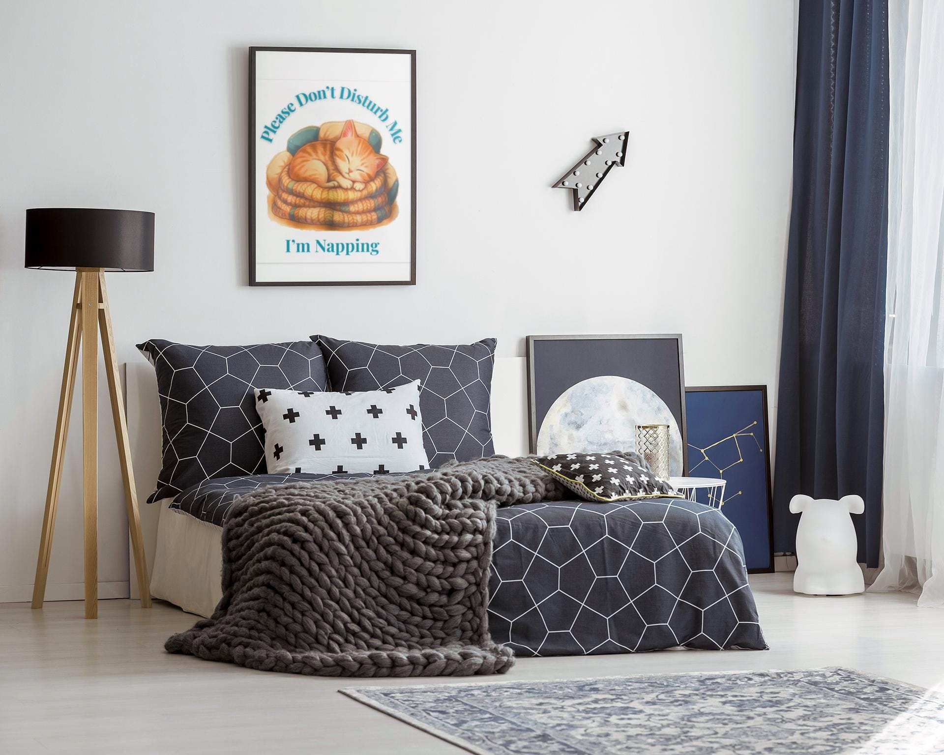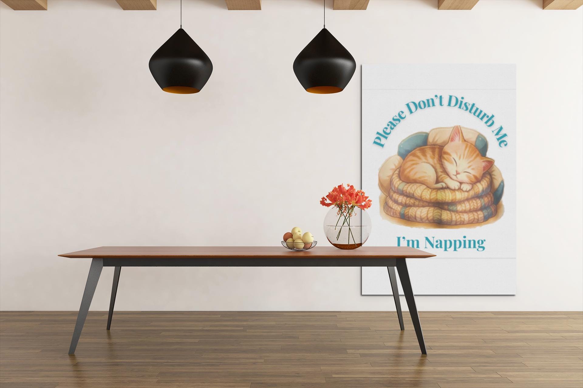 A cozy canvas art wrap that captures a sleeping orange tabby curled into the soft folds of blankets. Quiet and warm, the scene invites calm into a living room, nursery, or reading nook — the kind of piece that settles a room without shouting. Printed with vivid inks on durable polyester, the image keeps its rich tones and subtle textures, while the black-backed stretcher gives a clean, gallery-like edge on any wall. Hang it horizontally above a sofa or vertically beside a bookshelf to add a quiet, homey pulse to everyday moments: late-morning light, slow weekend coffee, or the hush after a long day when a cat is all the company you need.