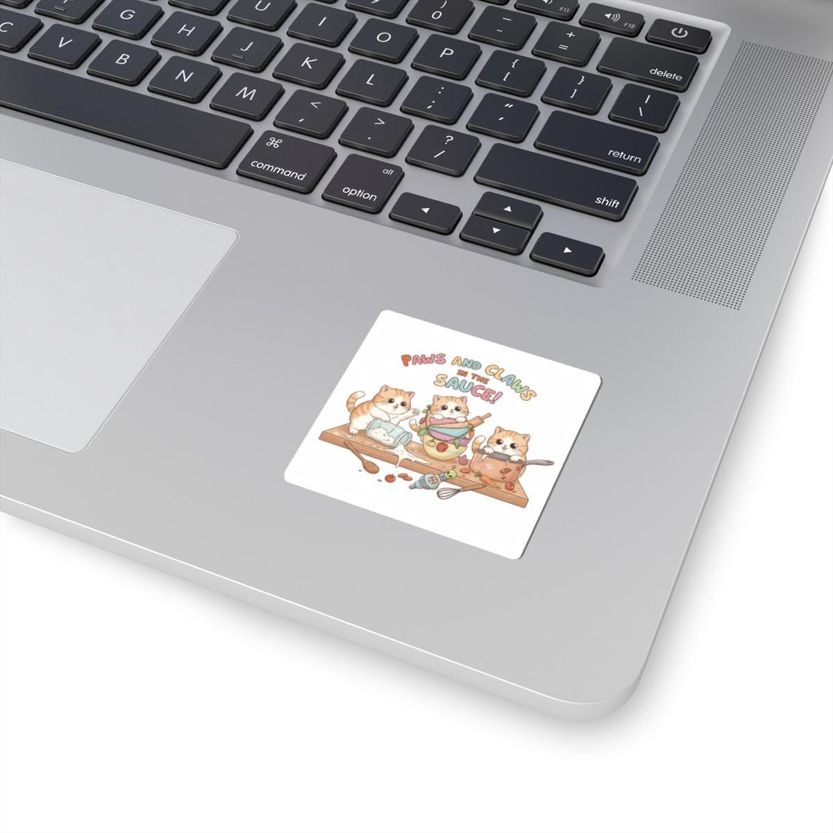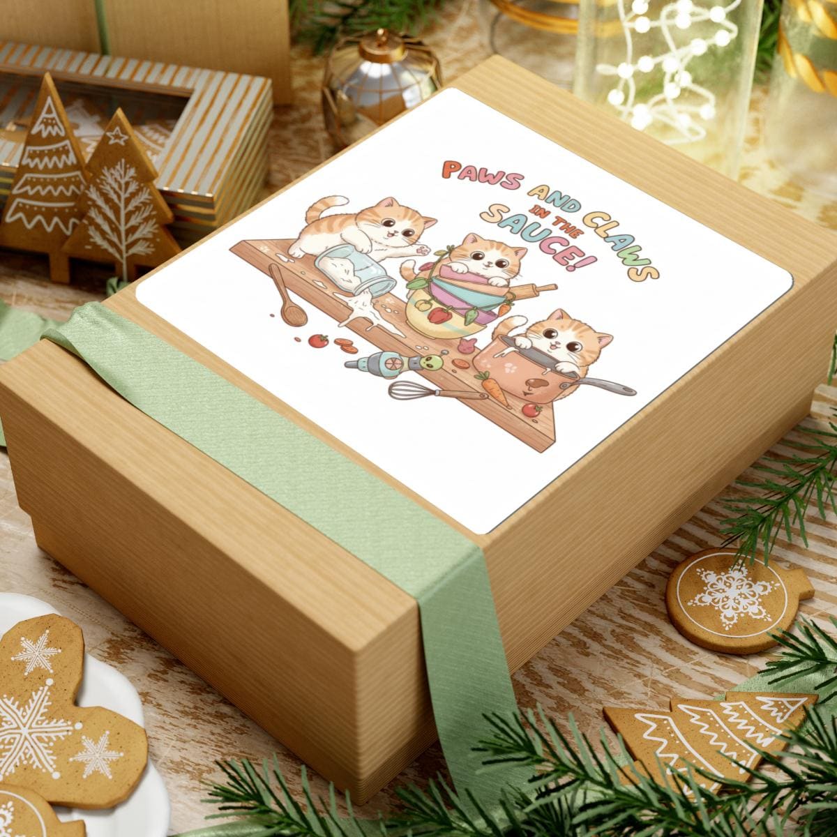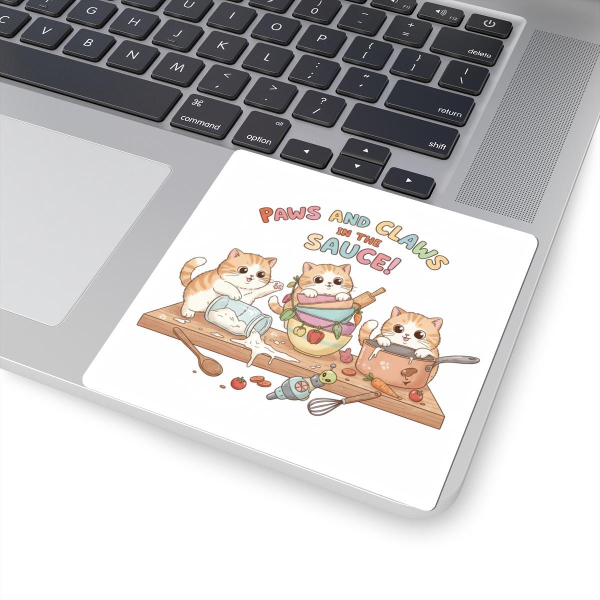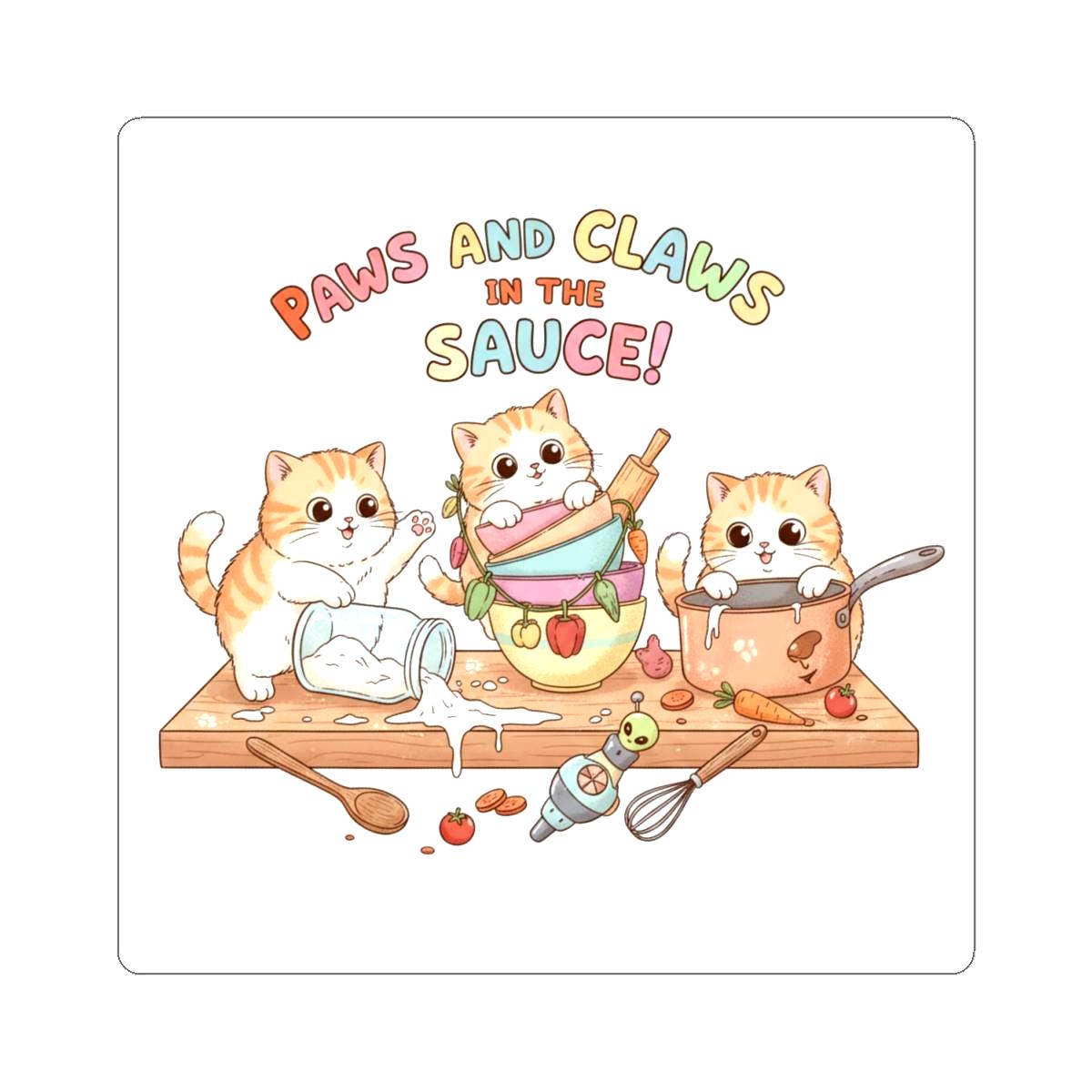 Three mischievous kittens crowd a wooden counter, covered in flour, bowls, and spilled batter—each one caught mid-mess with soft, pastel expressions. The illustration feels warm, silly, and gentle, like a cozy afternoon baking with friends. This glossy kiss-cut sticker brings that playful kitchen chaos to your laptop, journal, or recipe box. Its bright, eco-solvent printed colors and smooth finish make the artwork pop while maintaining a lightweight, decorative touch. The sticker hugs flat surfaces cleanly and stays put with a strong permanent adhesive, adding a slice of feline mischief to everyday items and sparking smiles whenever it’s seen.