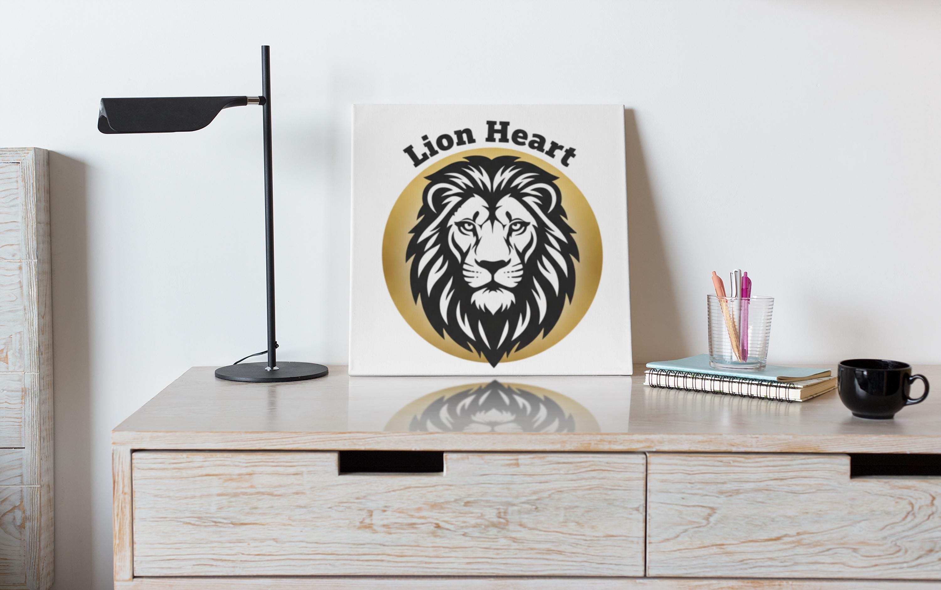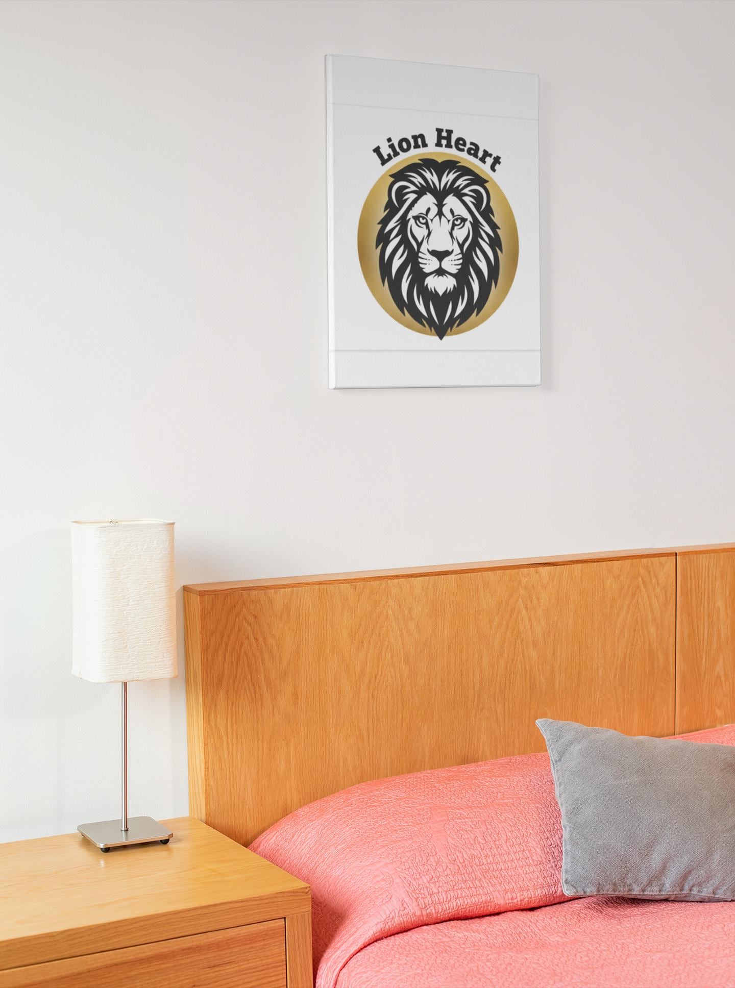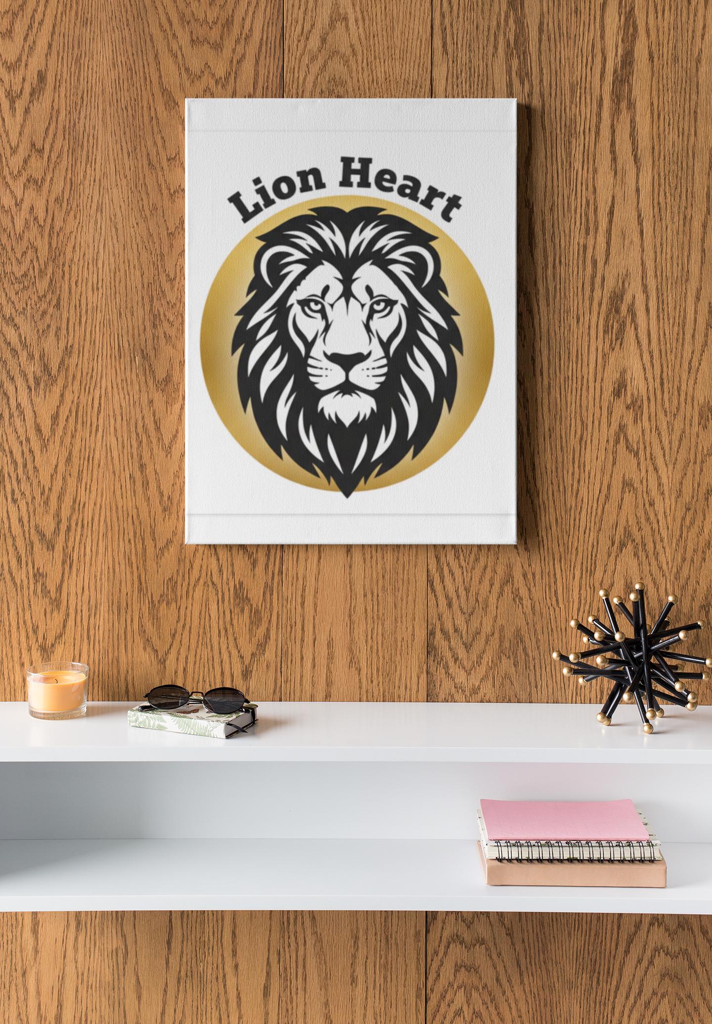 Lion Heart emblem Canvas, Stretched Matte | Empowerment lion art, boundary-setting