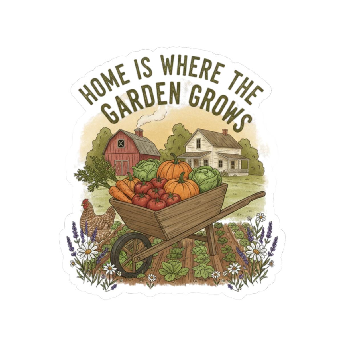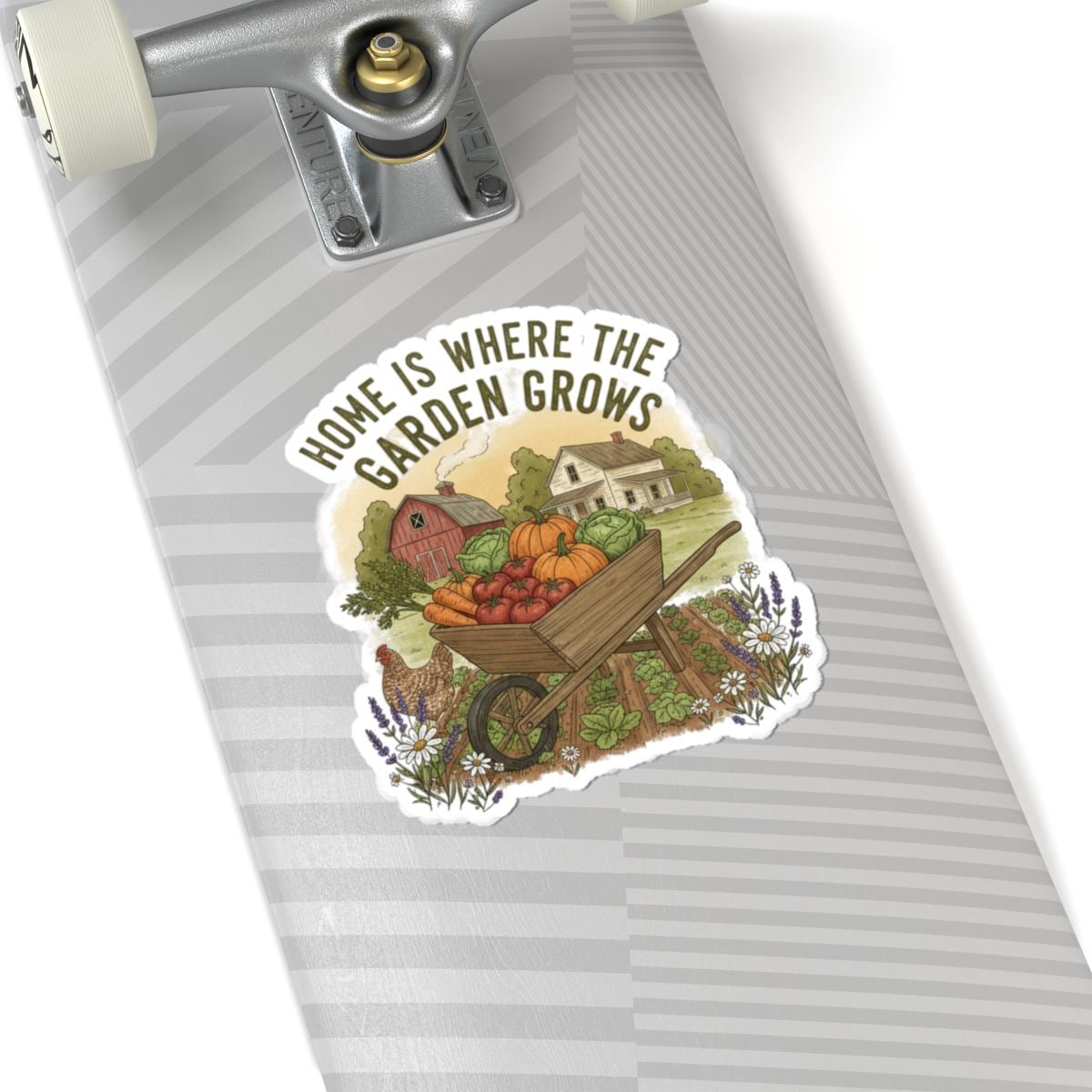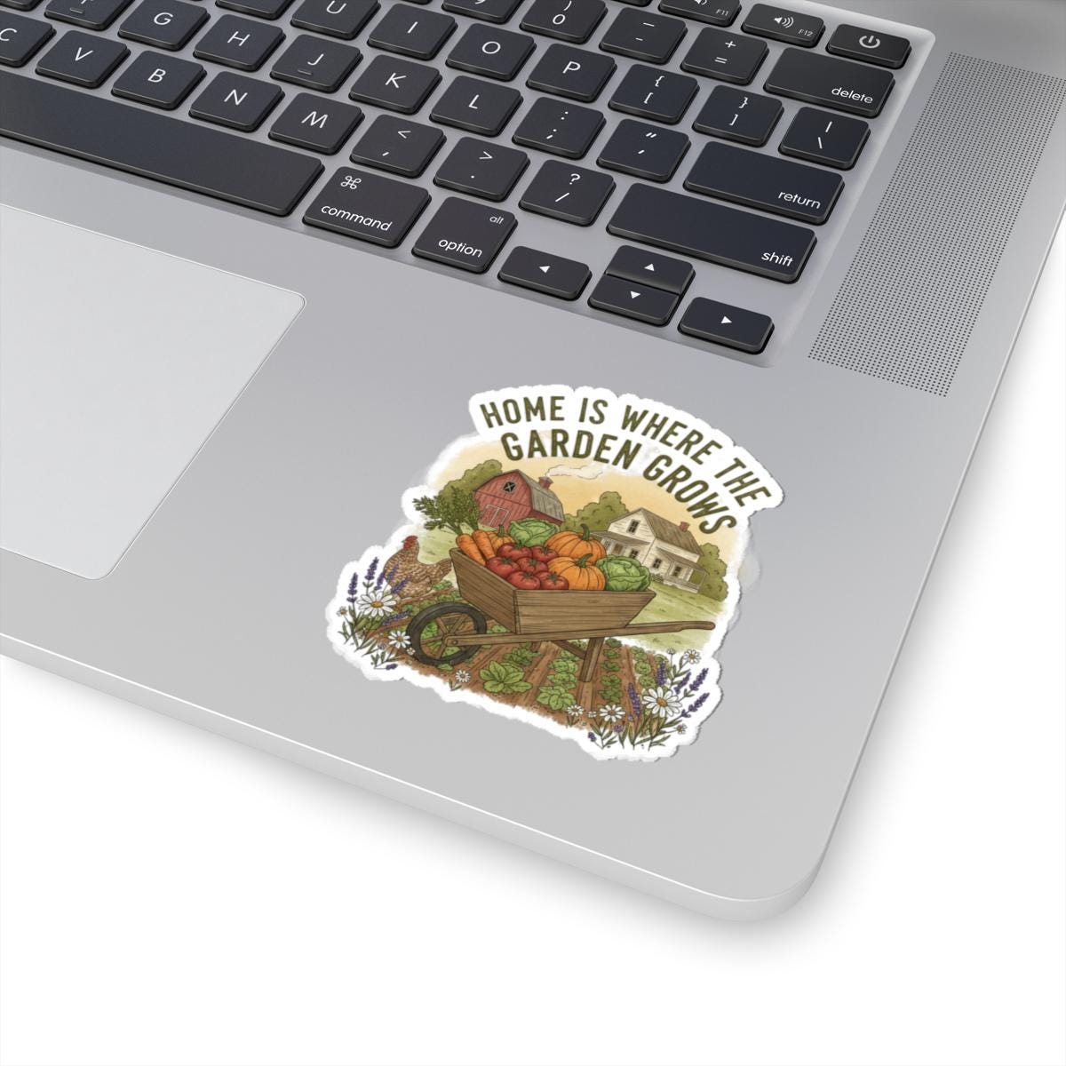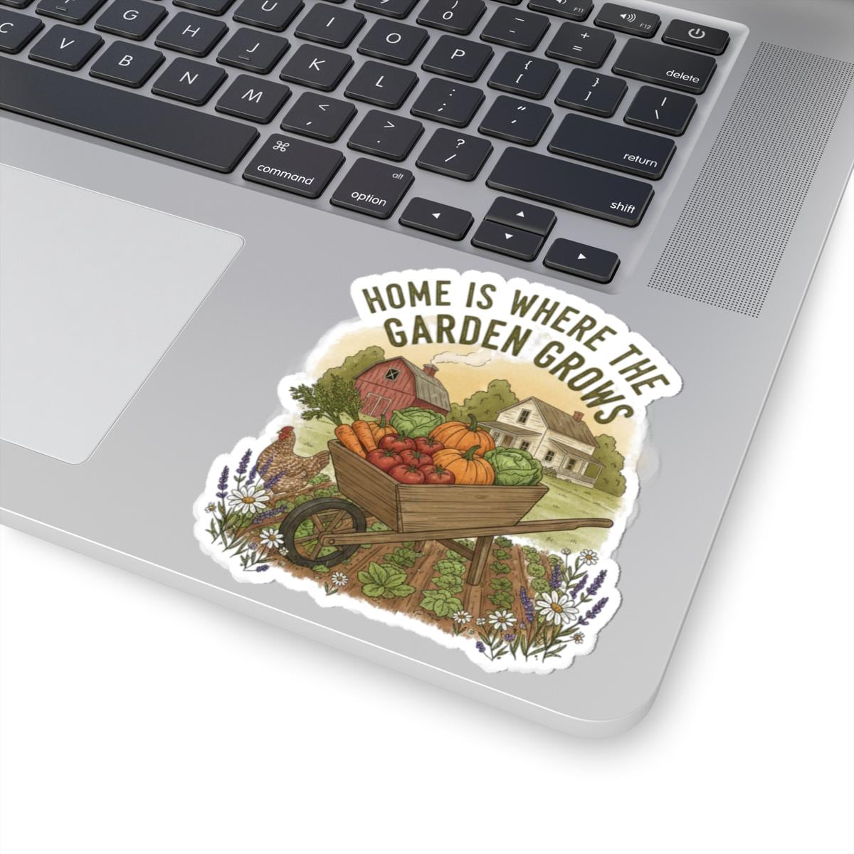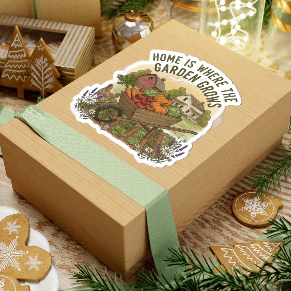Bring the quiet joy of a thriving garden into the small corners of daily life. These kiss-cut stickers carry a simple message — "Home is where the garden grows" — rendered in bright, glossy color that feels like a sunlit windowsill. Stick one to a laptop, journal, or window and let it be a tiny reminder of soil under nails, late-afternoon light, and the steady, patient work of growing things. They sit flat and smooth, catching attention without shouting. For people who tend houseplants, keep a windowsill plot, or dream of backyard beds, these stickers add a touch of green-minded charm to routines and spaces — subtle, cheerful, and made to last on the surfaces you use every day.