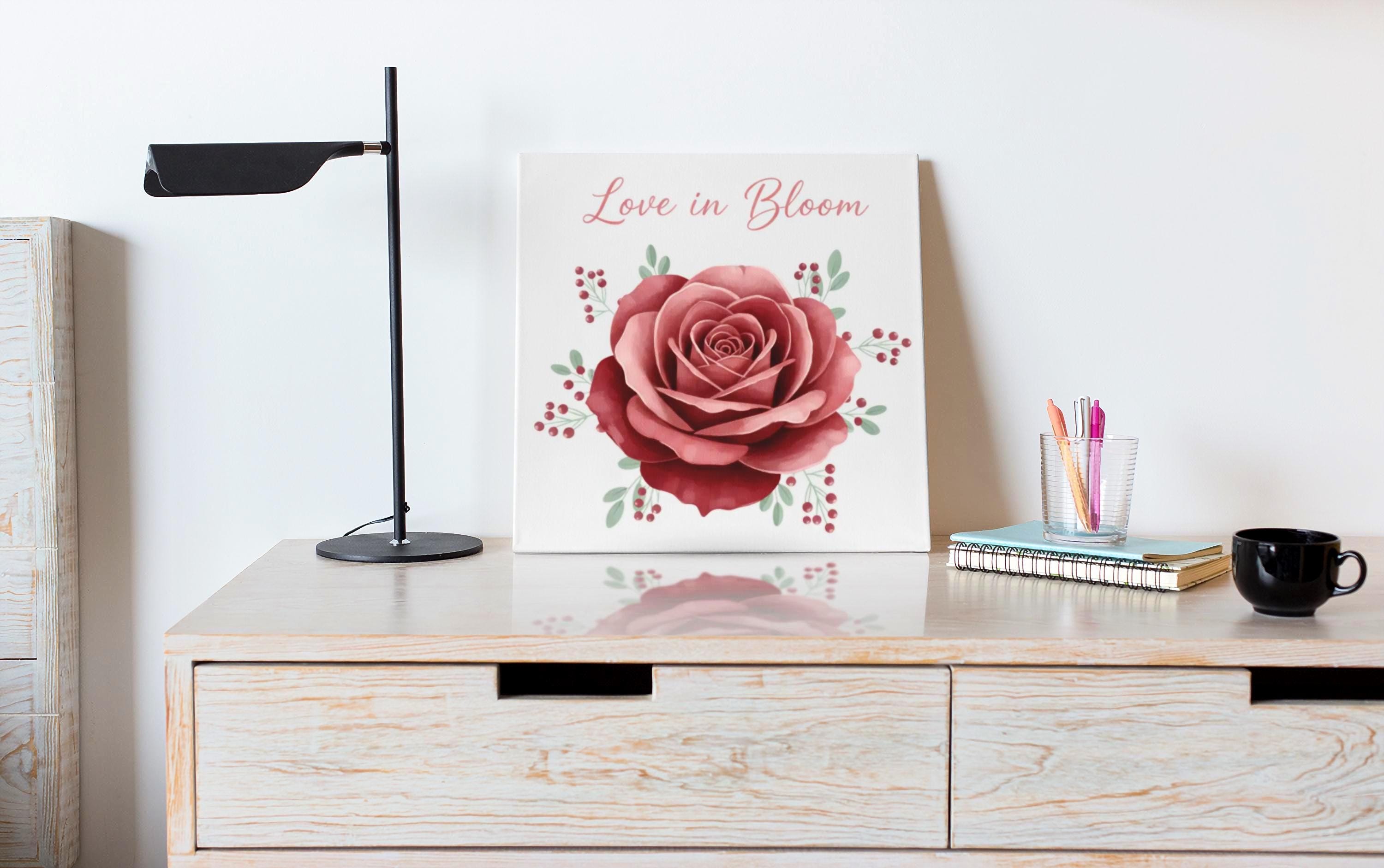 Love in Bloom Rose Print Canvas | Berry-Red Palette, Deep Rose Wall Art