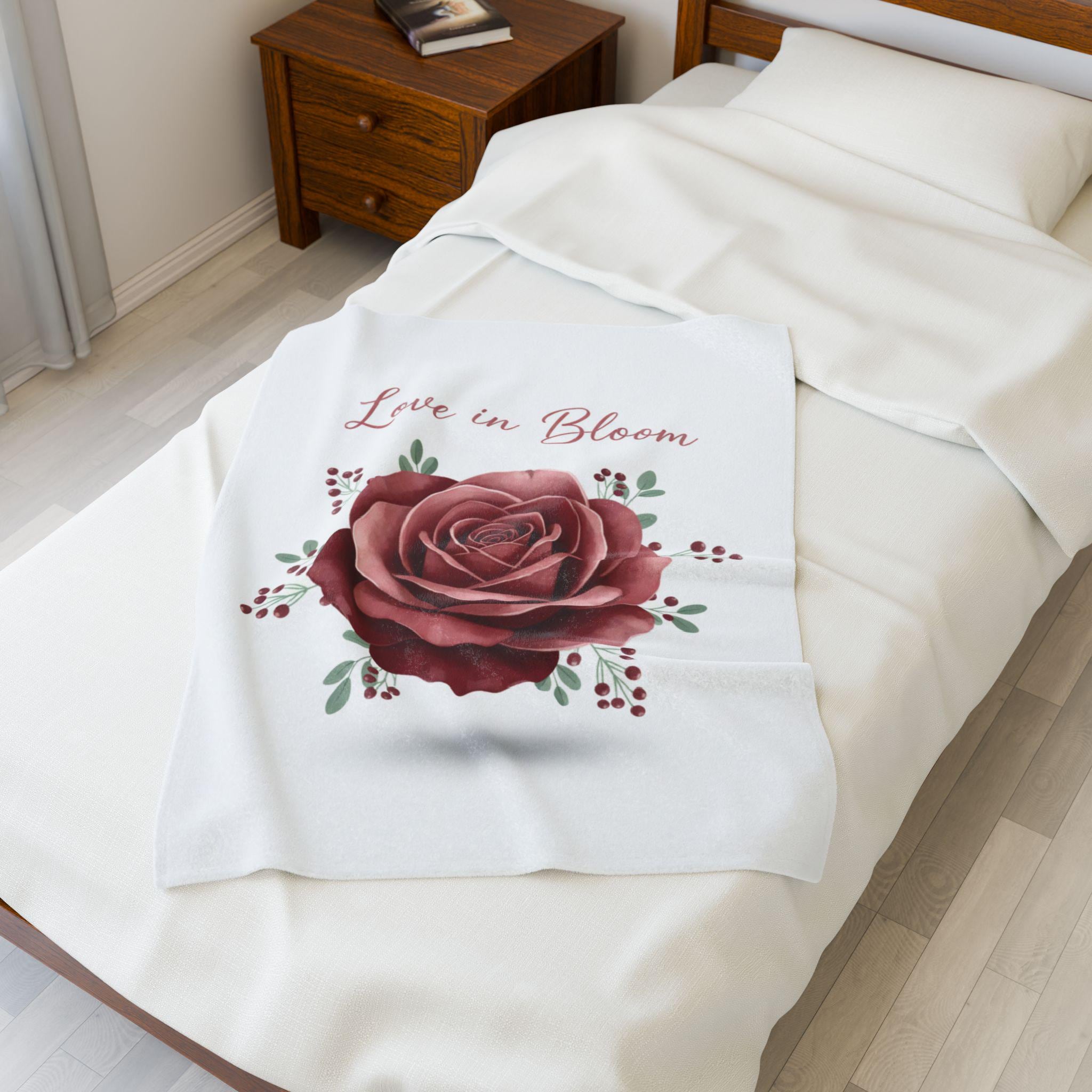 Berry Rose Velveteen Plush Blanket | Floral Illustration