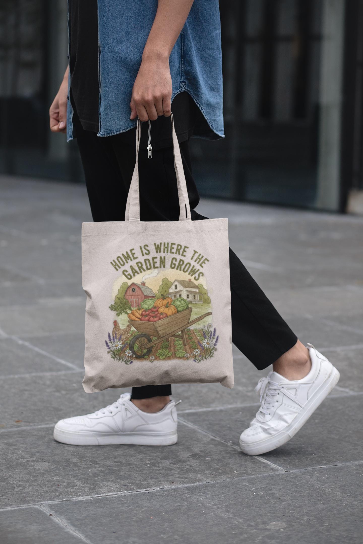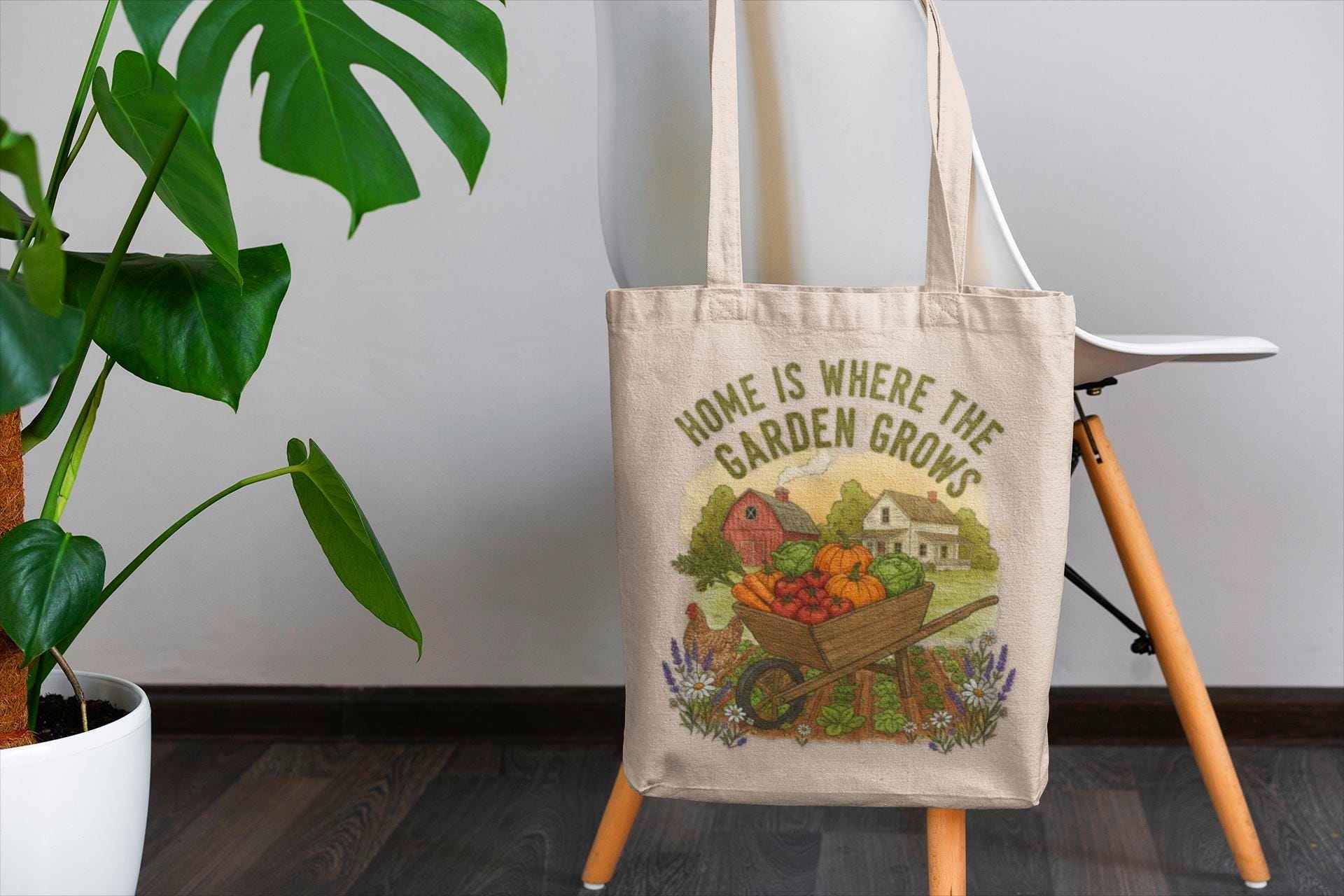 This cotton canvas tote carries a quiet, garden-born comfort. The printed line “Home is Where the Garden Grows” feels like a window sill of herbs and sunlight—soft soil under nails, the low thrum of bees. The bag settles easily on a shoulder while you walk to the farmer’s market, tote seed packets across town, or stash a paperback and a thermos for an afternoon on the porch. Simple, sturdy, and unpretentious, it complements lives that favor slow mornings, dirt-smudged hands, and the ritual of tending things that root and return.