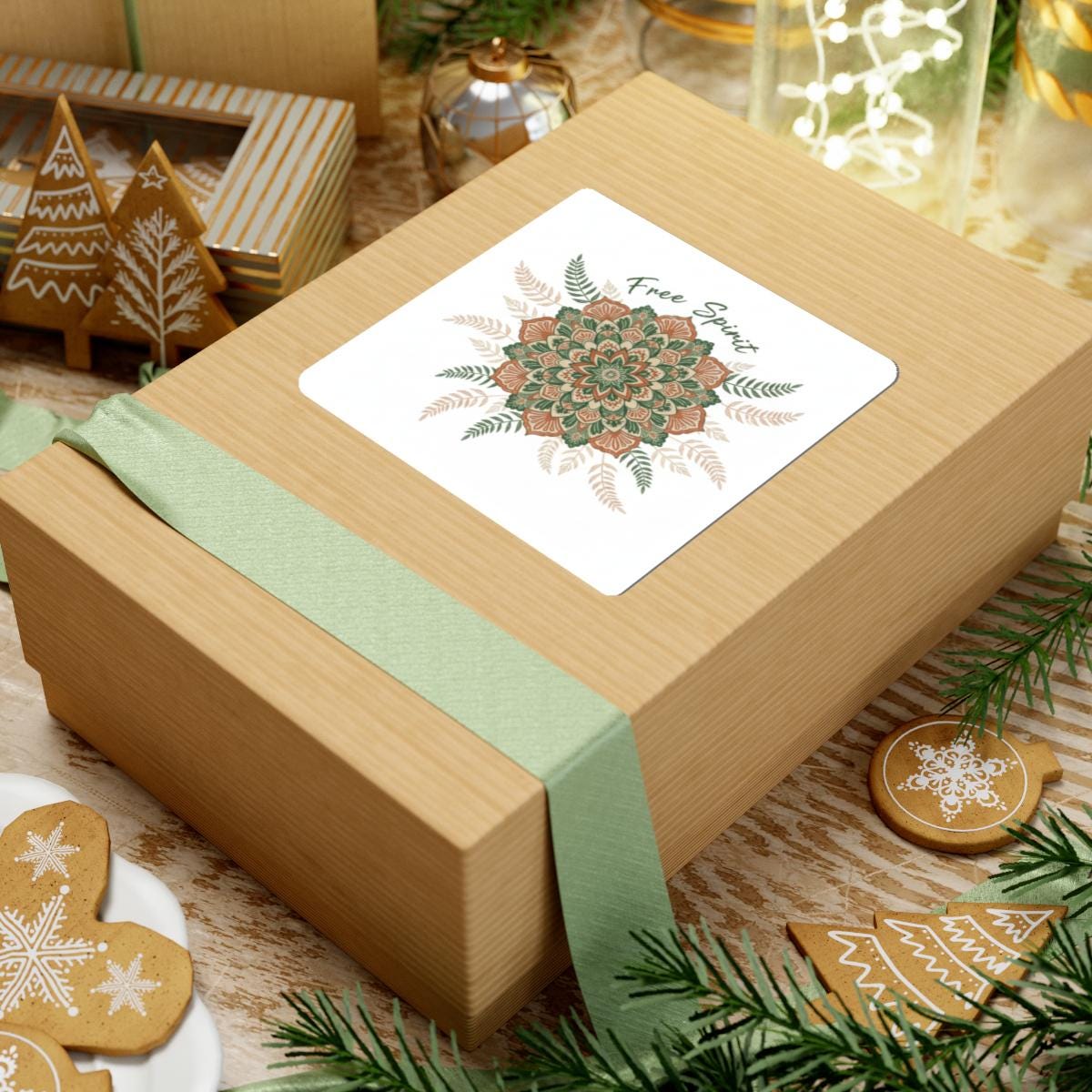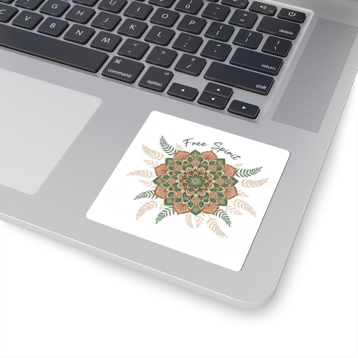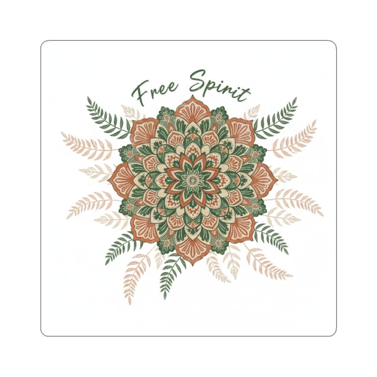 Warm, handcrafted mandala sticker in an earthy boho palette—ornamental sunburst and leaf motifs with a slightly textured, made-by-hand look that suits artisanal boho decor and accessories. The compact kiss-cut format works as a subtle accent on laptops, journals, water bottles, and other smooth surfaces for shoppers seeking mandala pattern prints and boho aesthetic accents.