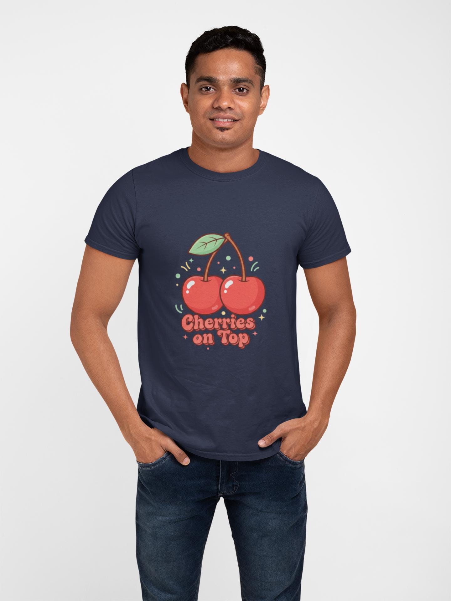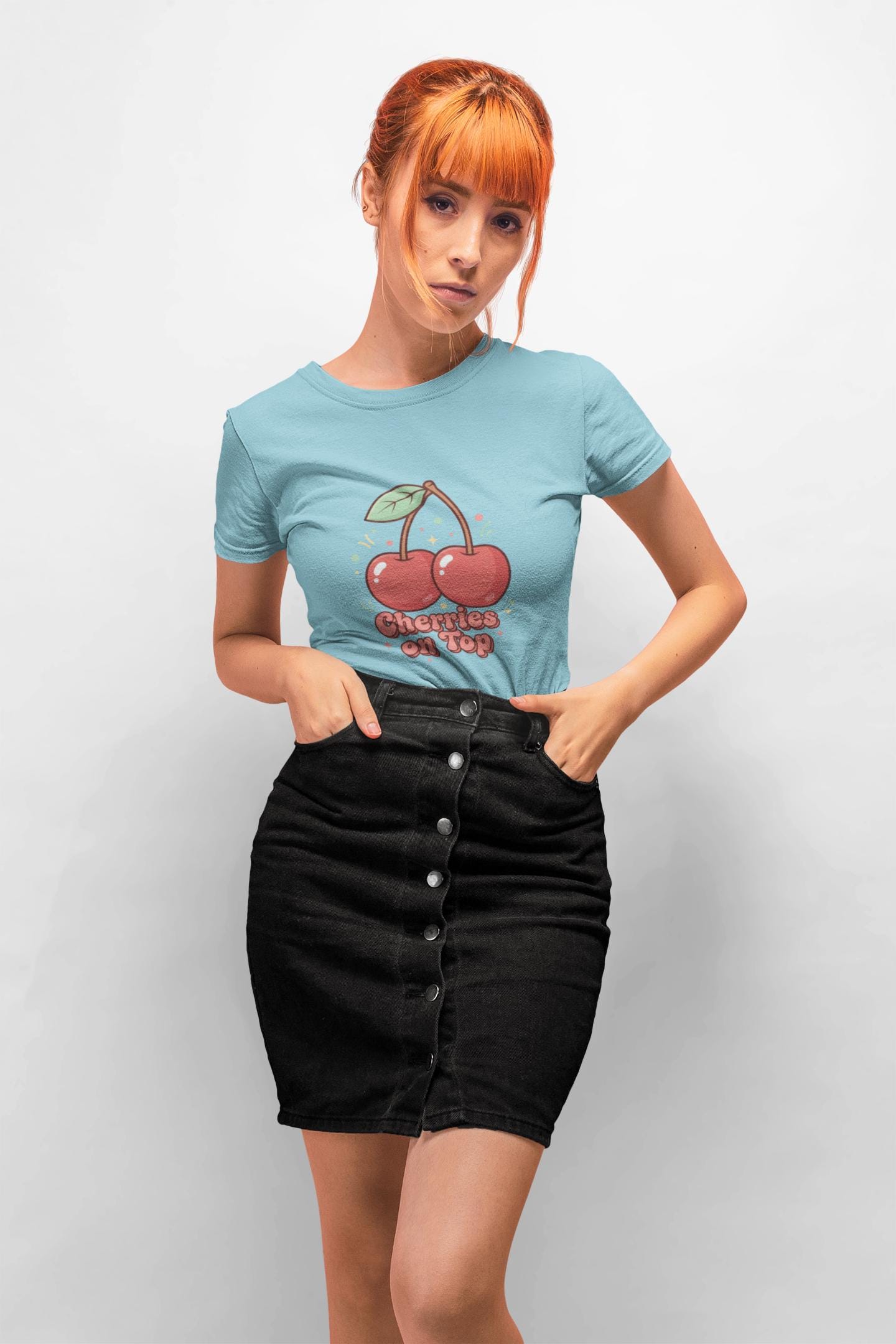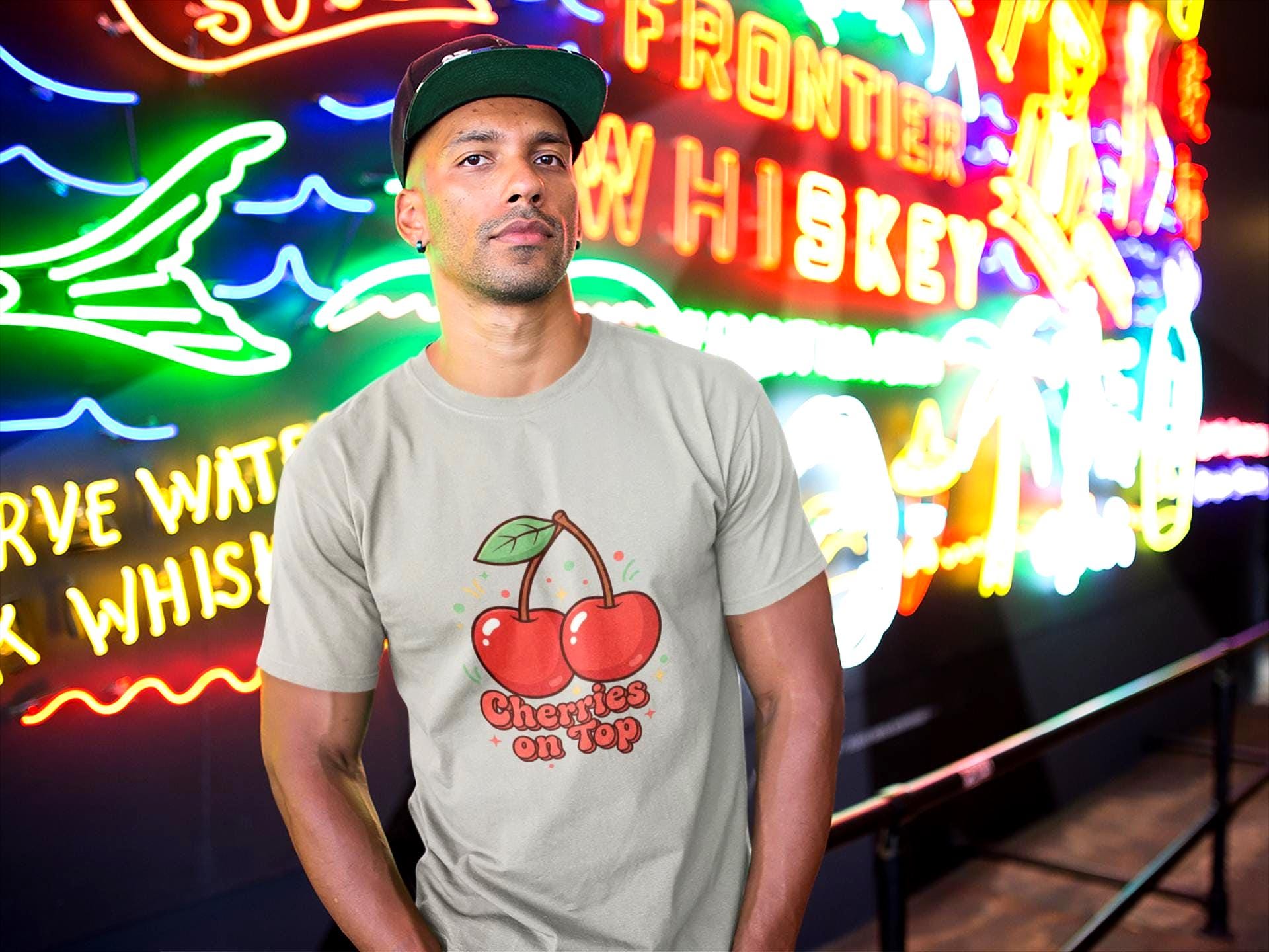 Retro-cute cherry motif printed on a lightweight unisex tee, leaning into the Cherries/Fruit Motifs trend with bright red-green accents and playful, rounded lettering. The artwork pairs a simple twin-cherry illustration and bubbly retro label to create a nostalgic, kawaii-friendly vibe that reads cleanly on casual basics. It fits into wardrobes seeking cheerful, vintage-inspired everyday pieces and works well layered under jackets or worn solo for a fresh, approachable look.