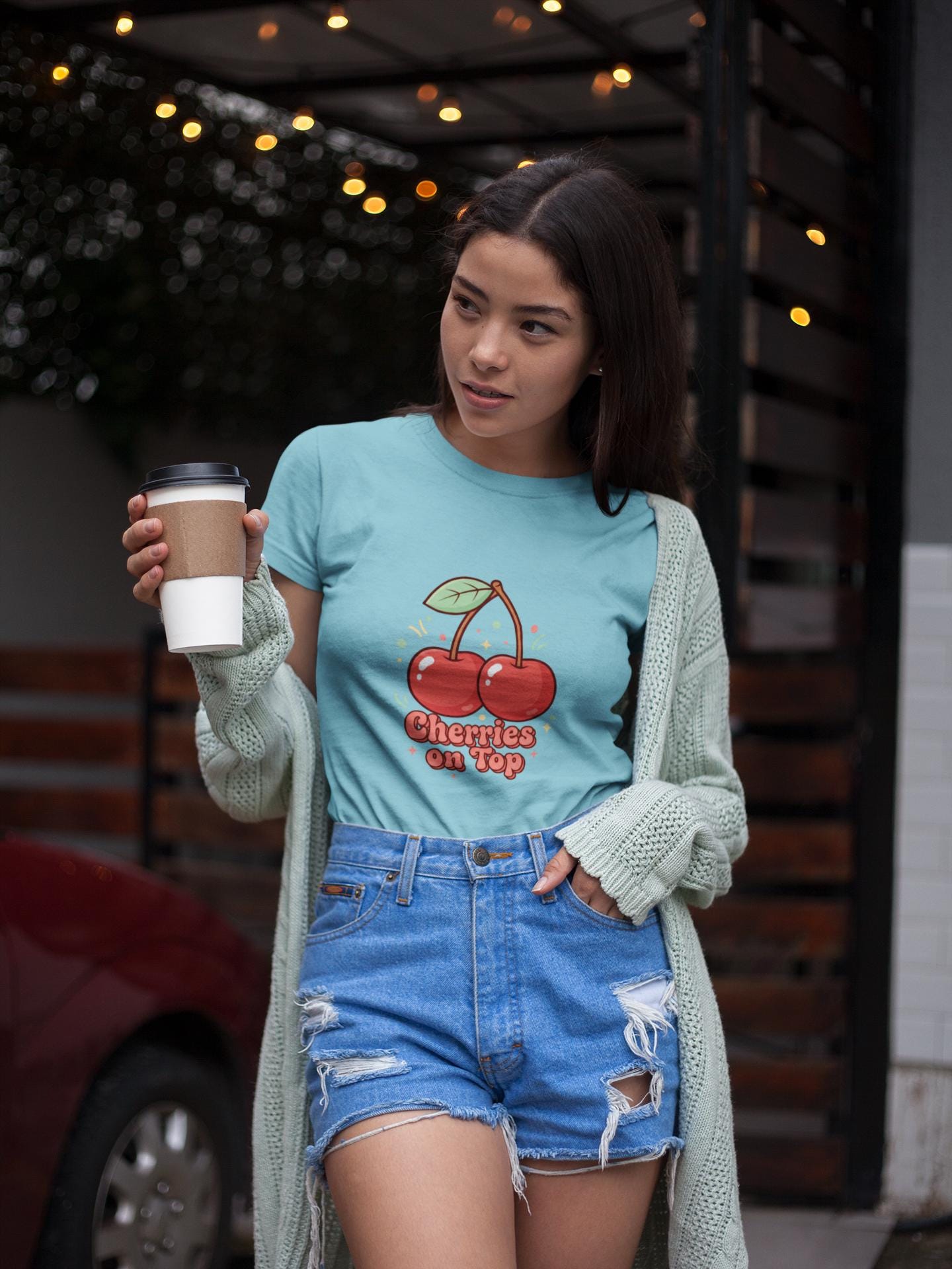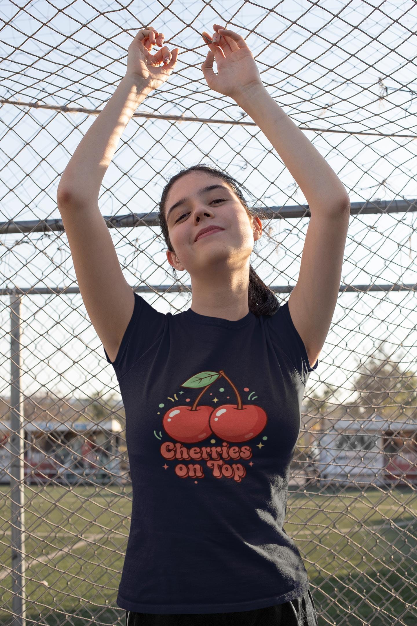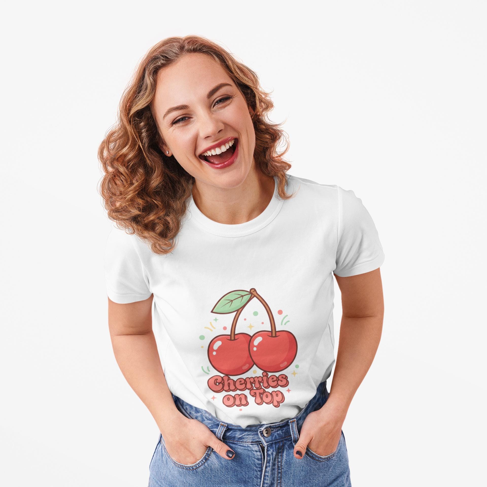 Retro-cute cherry motif printed on a lightweight unisex tee, leaning into the Cherries/Fruit Motifs trend with bright red-green accents and playful, rounded lettering. The artwork pairs a simple twin-cherry illustration and bubbly retro label to create a nostalgic, kawaii-friendly vibe that reads cleanly on casual basics. It fits into wardrobes seeking cheerful, vintage-inspired everyday pieces and works well layered under jackets or worn solo for a fresh, approachable look.