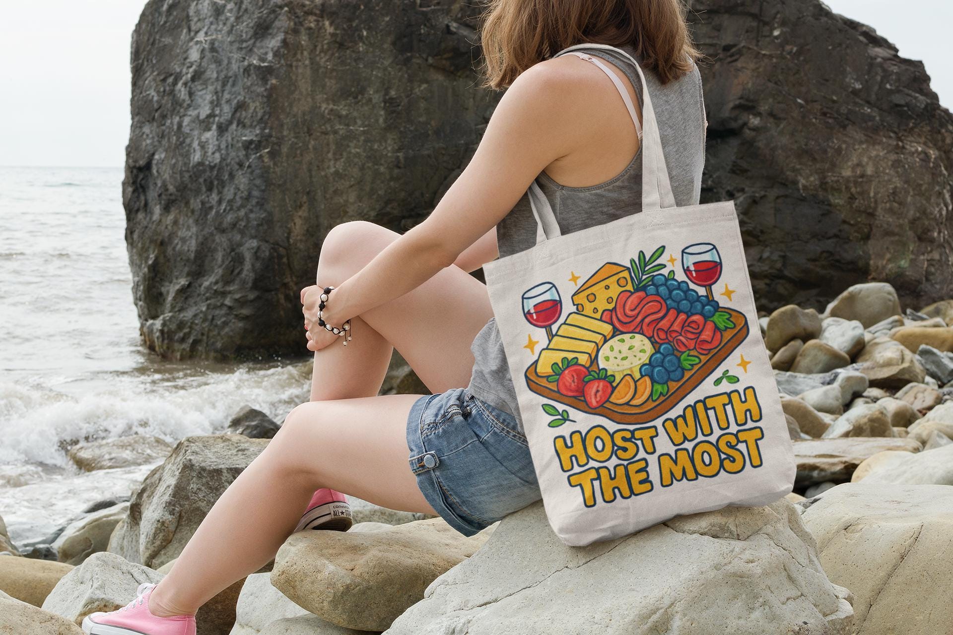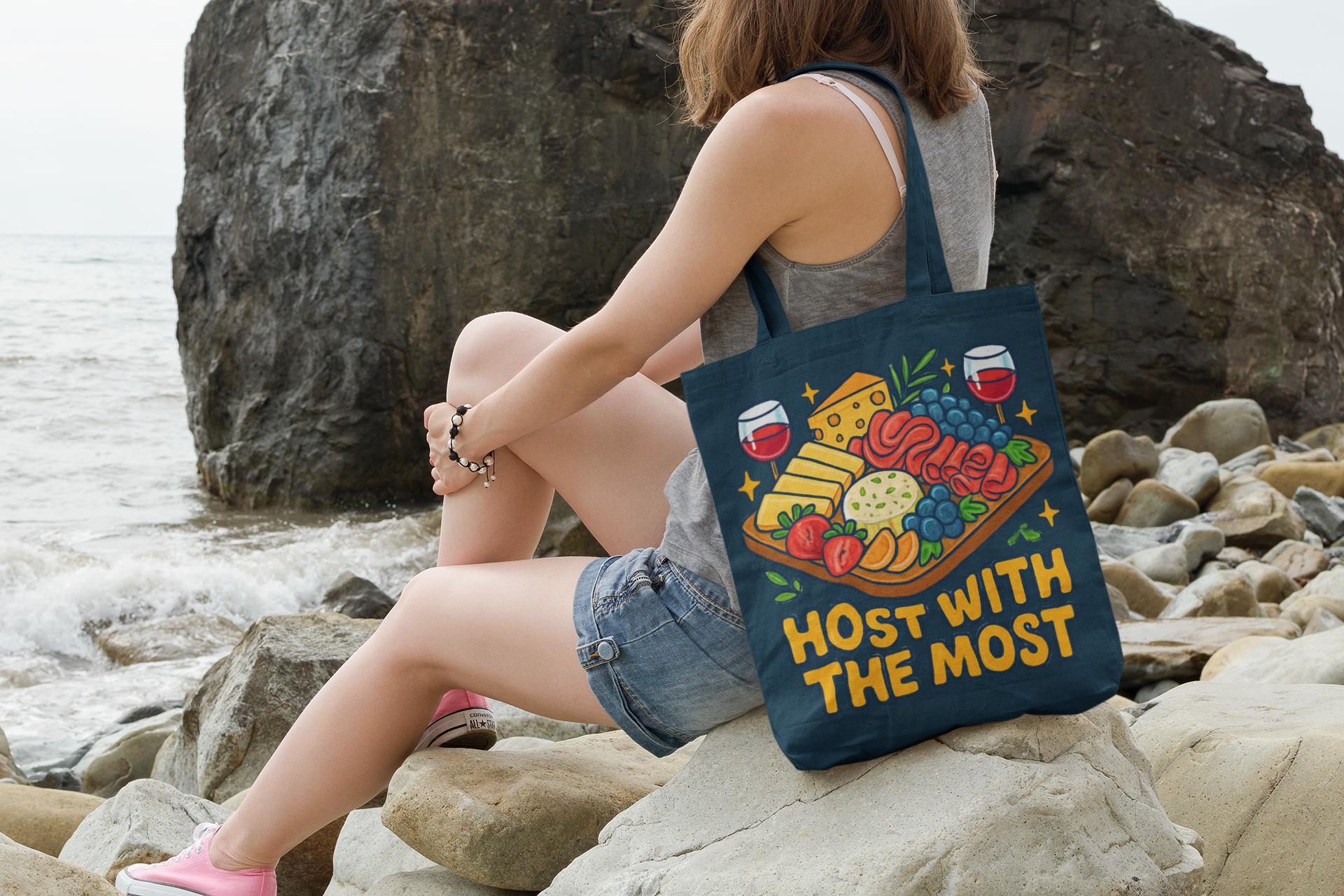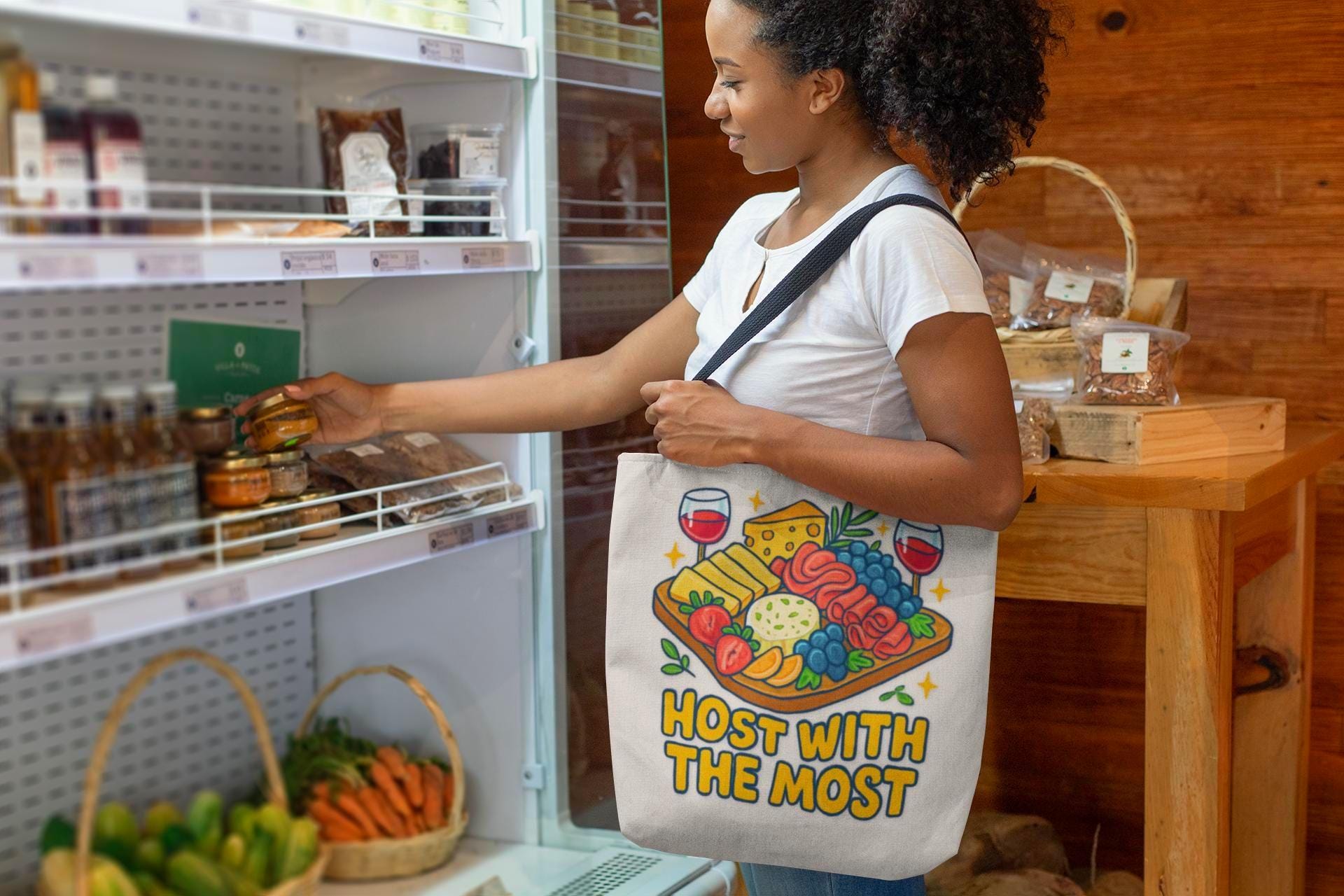 Host With The Most Charcuterie Tote Bag | Cheeseboard Illustration