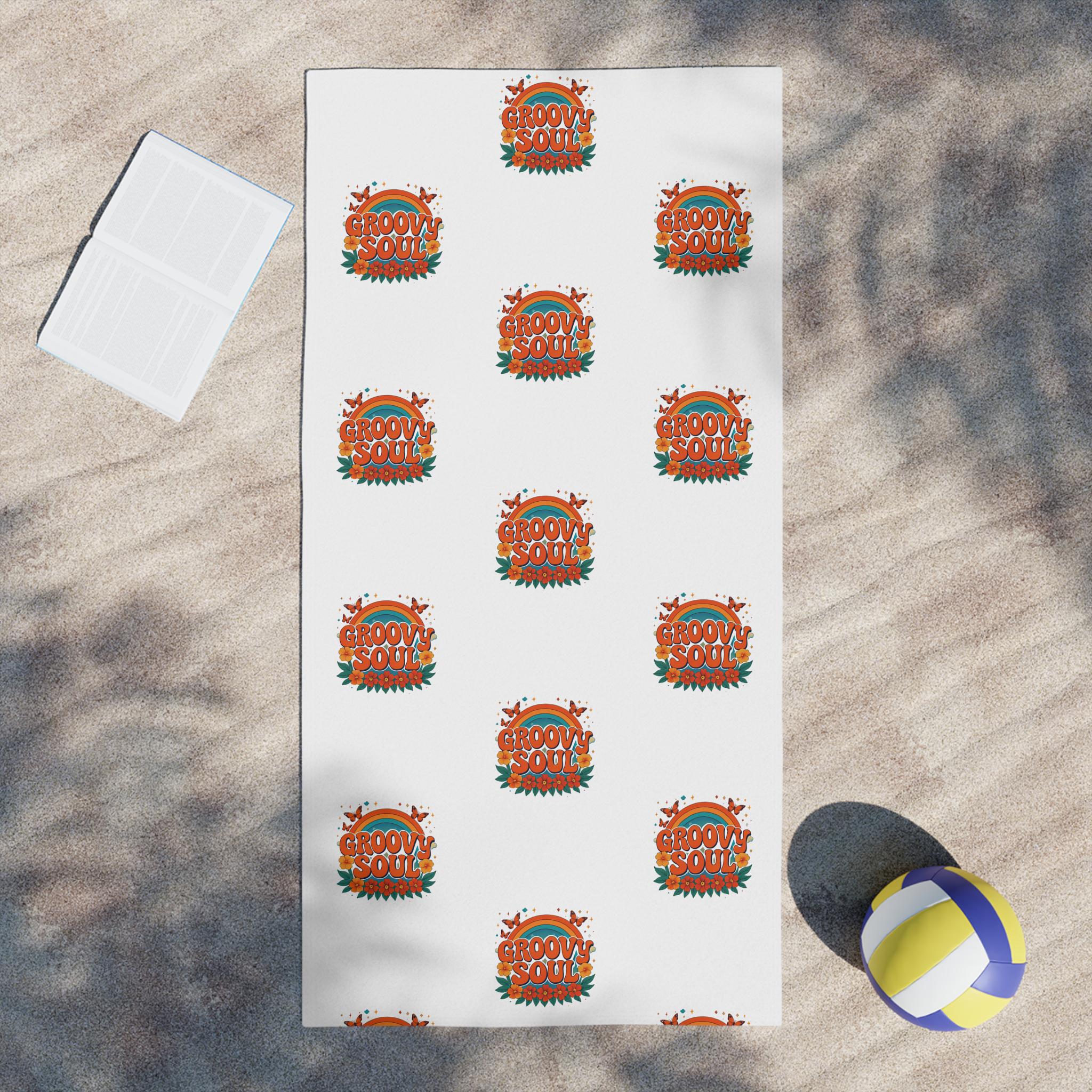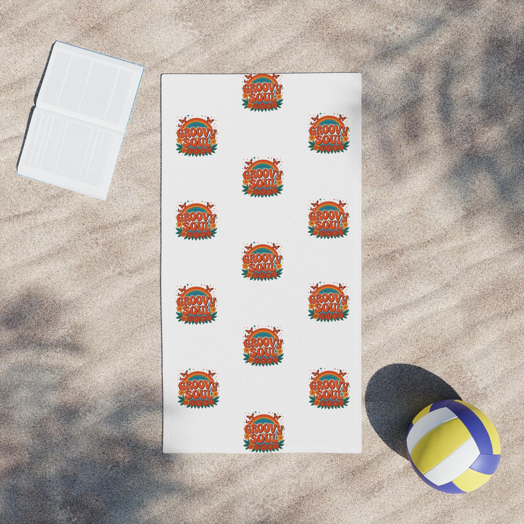 Groovy Sunflower Surf Logo Beach Towel | Retro Summertime Pattern