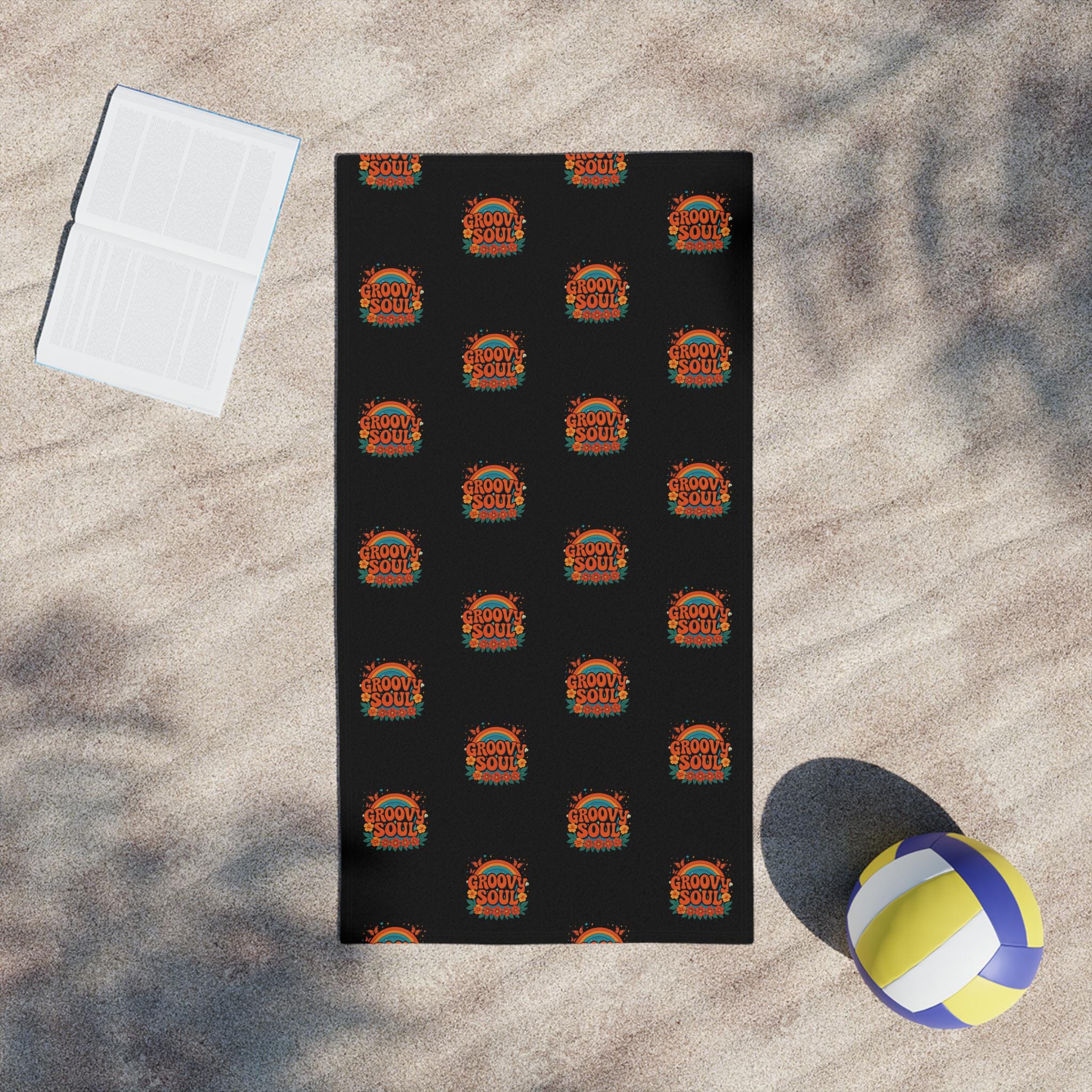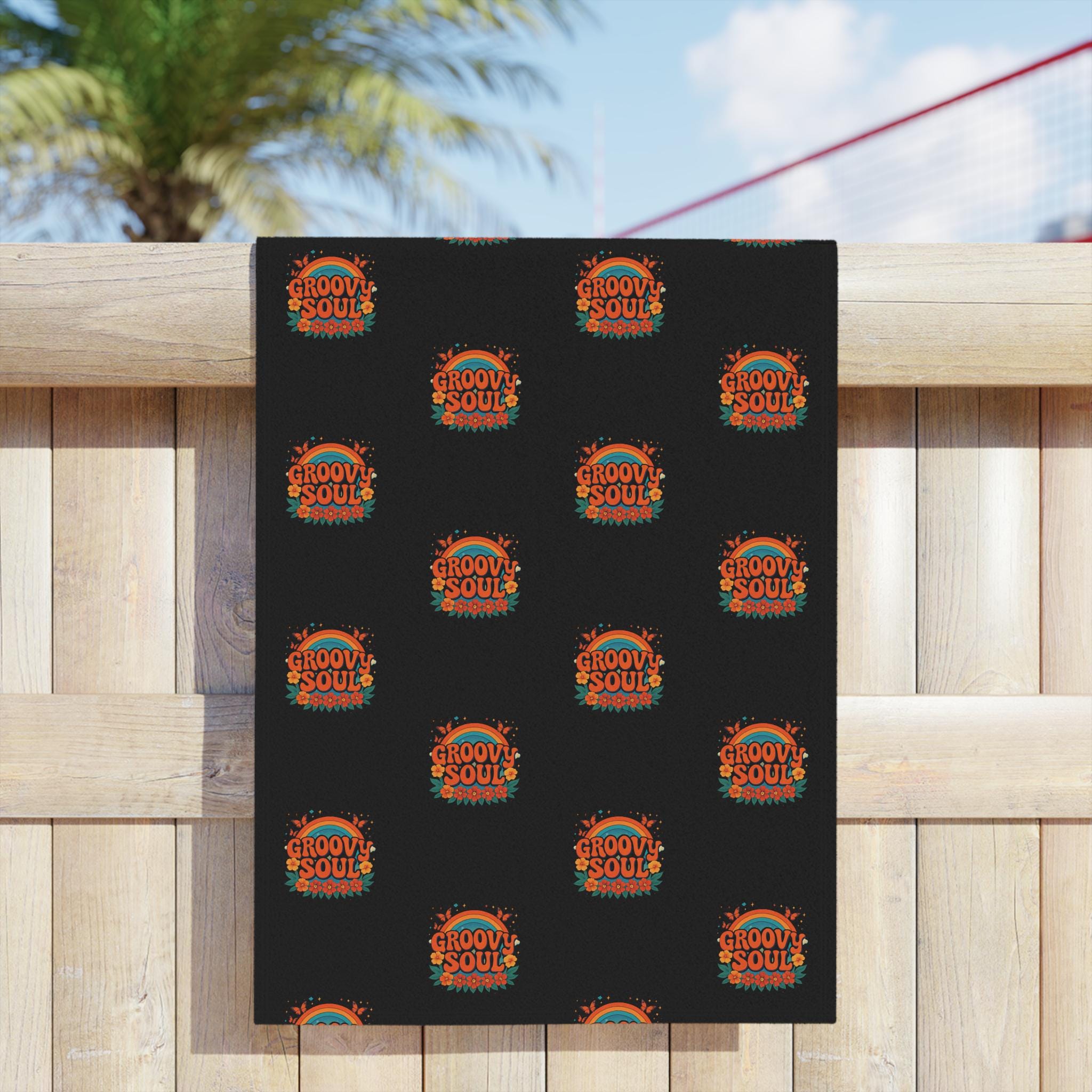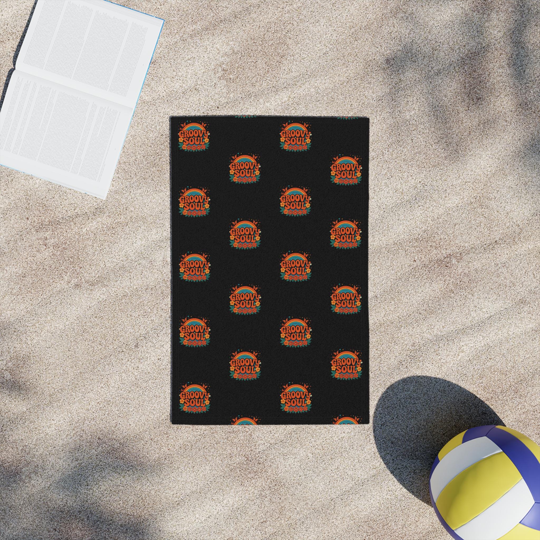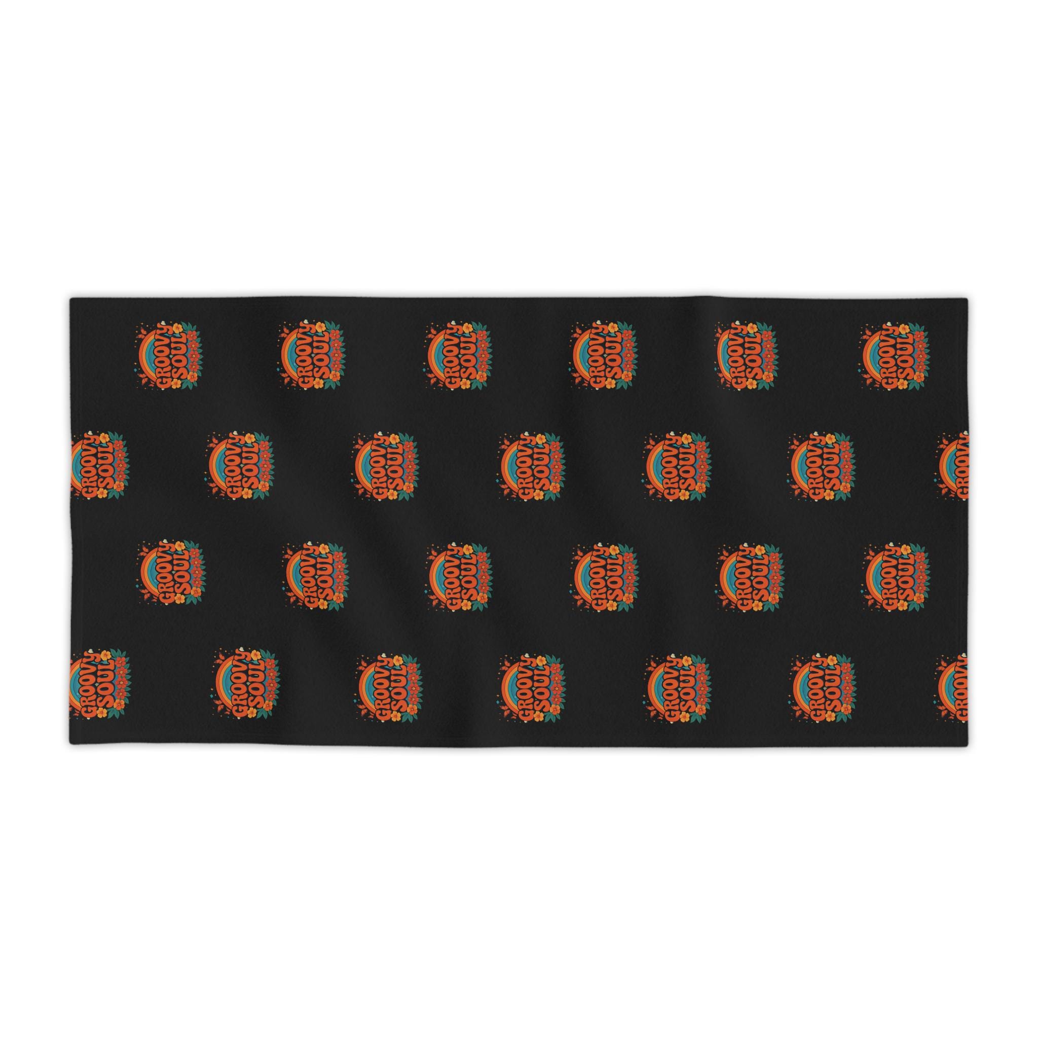 A bold, retro-inspired beach towel that brings warm, sun-soaked energy to your days by the water. The repeating circular motif uses vintage oranges and teals against a deep black background, creating a nostalgic surf-club vibe that stands out on sand or poolside loungers. Lightweight and quick-drying on the printed face, with a soft cotton backing for comfort against skin — it’s built to travel, to be tossed in a beach bag, and to hold up through salty afternoons and campground mornings. Lay it out, sit with friends, and let the graphic pull the moment together: bright, confident, and a little bit groovy.