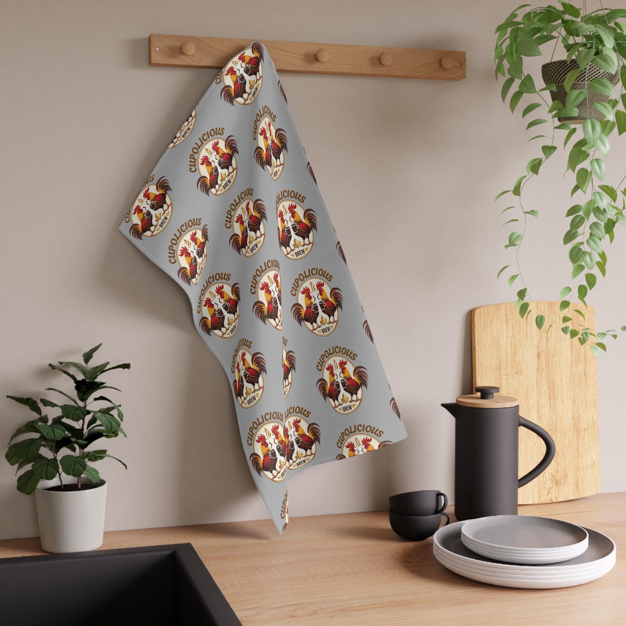 These vintage-rooster tea towels bring warm farmhouse charm to everyday kitchen moments. The repeat rooster medallion pattern, set on a soft neutral background, feels like sun through the kitchen window at breakfast—familiar, rustic, and quietly joyful. Lightweight and absorbent (choose cotton twill) or durable and color-fast (choose polyester), the towel handles quick cleanups and looks good when draped over an oven handle or folded in a bread basket. Hemmed edges hold up to regular use, while the bright printing keeps the rooster motif lively through many washes. Bring a bit of country comfort to morning coffee, bread-baking afternoons, or casual gatherings around the table.