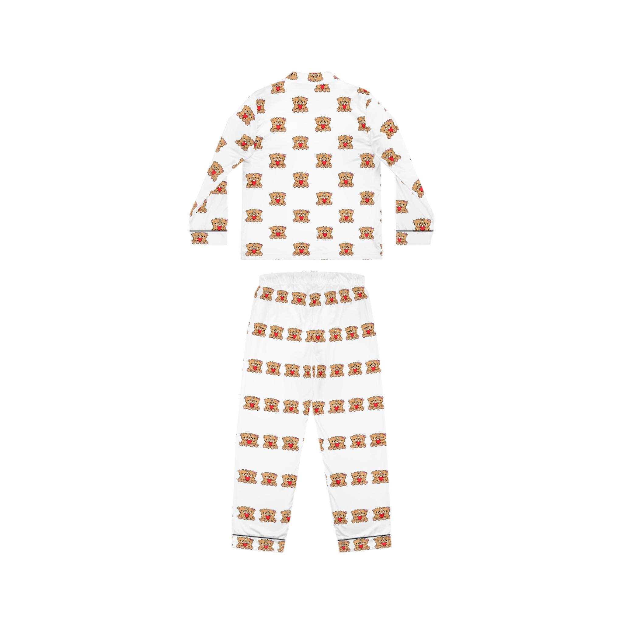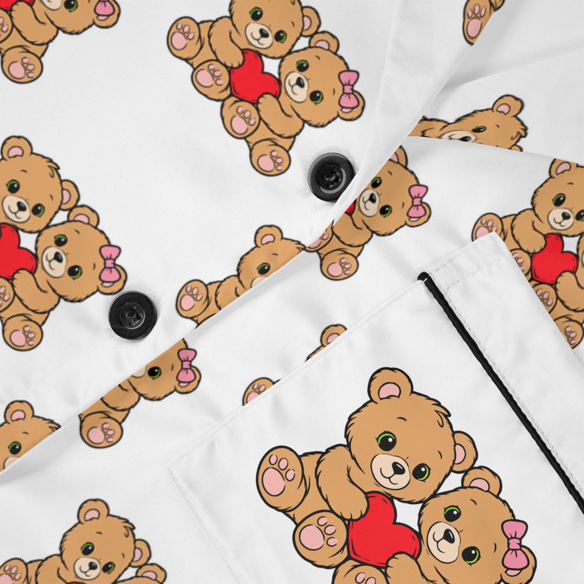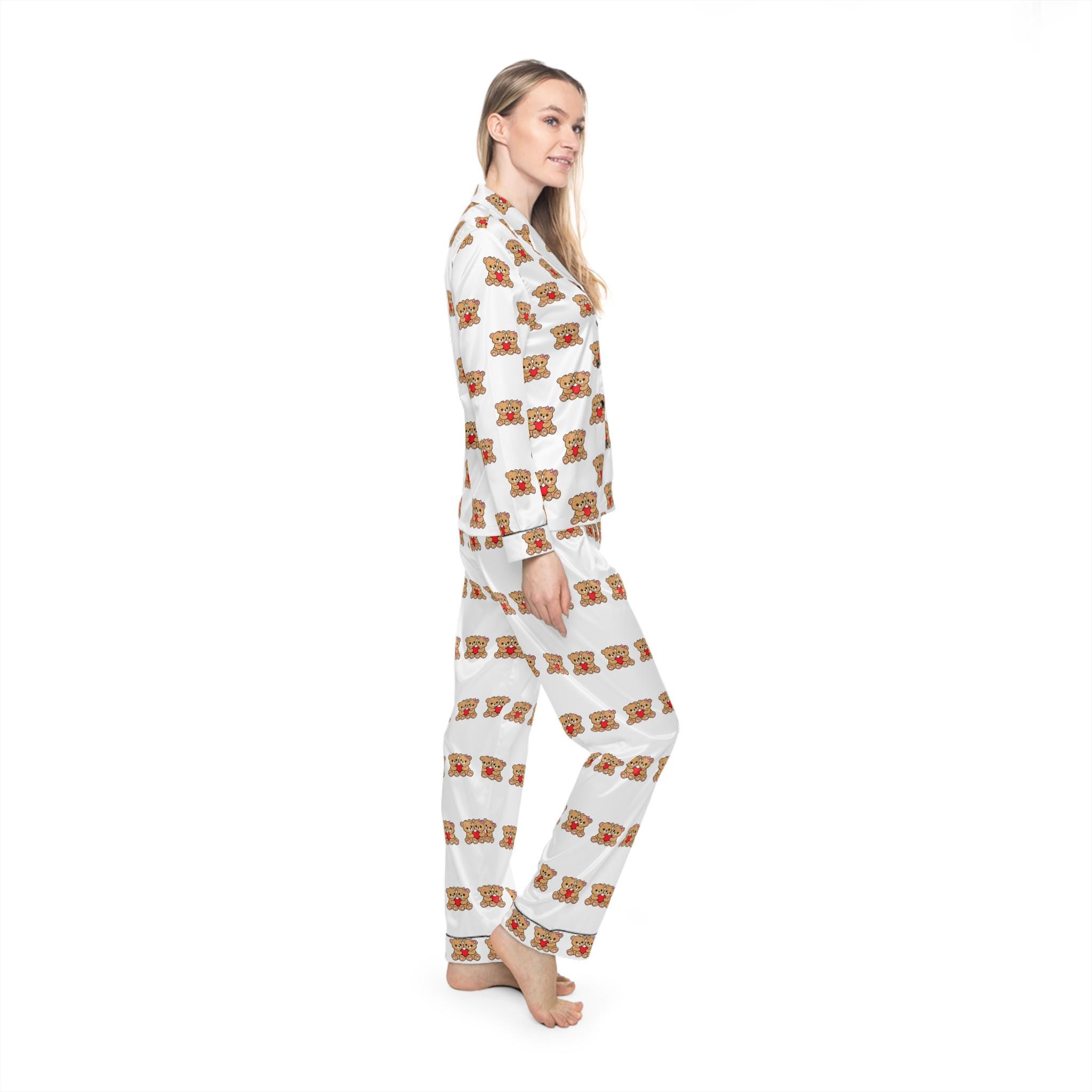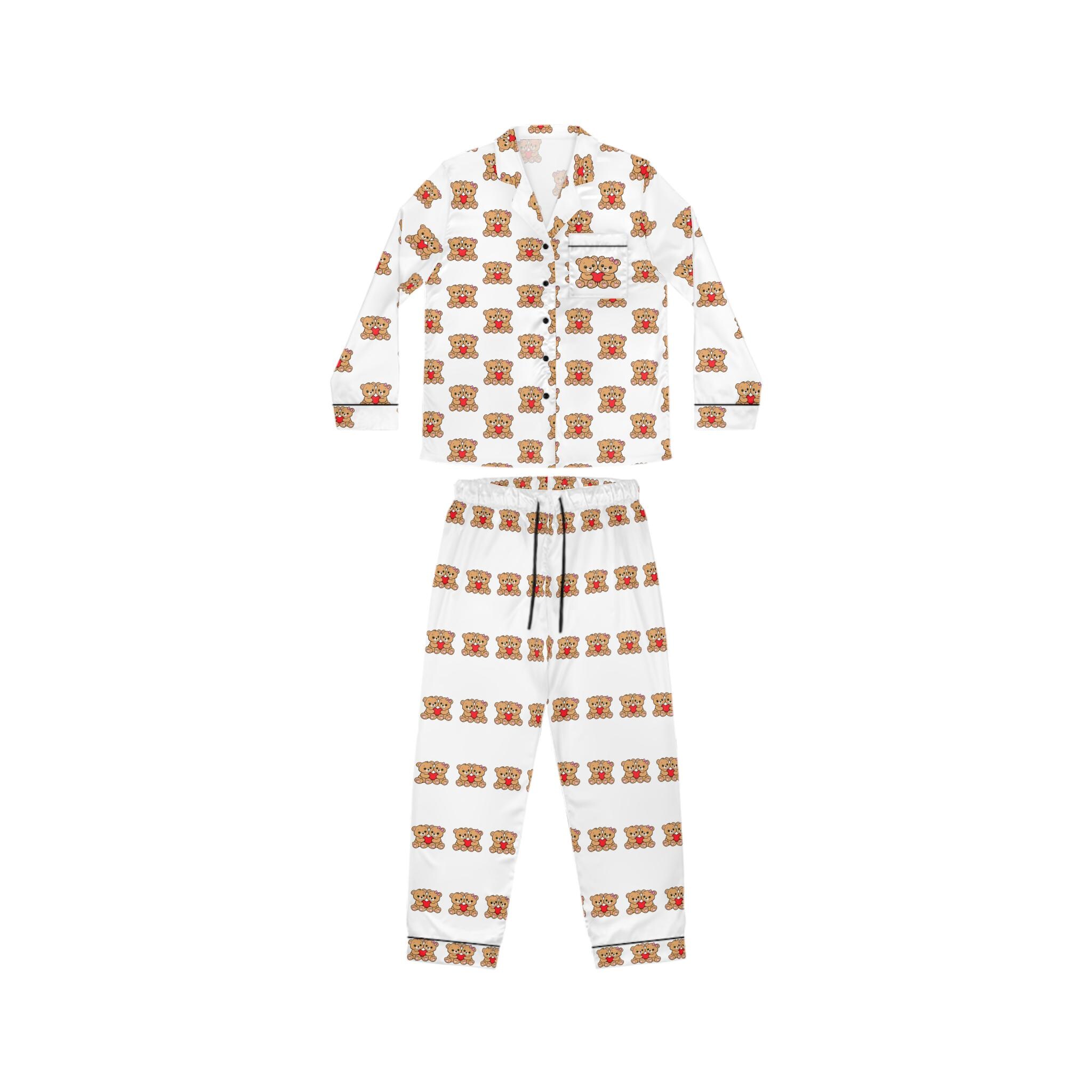 Warm, whimsical satin pajamas that feel like a cozy evening hug. The lightweight, satiny fabric skims the skin with gentle stretch, letting you move freely whether you’re winding down with tea or turning in early. A classic notch lapel and button-front shirt bring quiet elegance to bedtime, while the drawstring waist ensures the trousers sit exactly where you like. The repeating cozy motif across a clean background gives these pajamas a playful, homey charm — the kind that makes slow mornings and relaxed nights feel intentionally comforting.