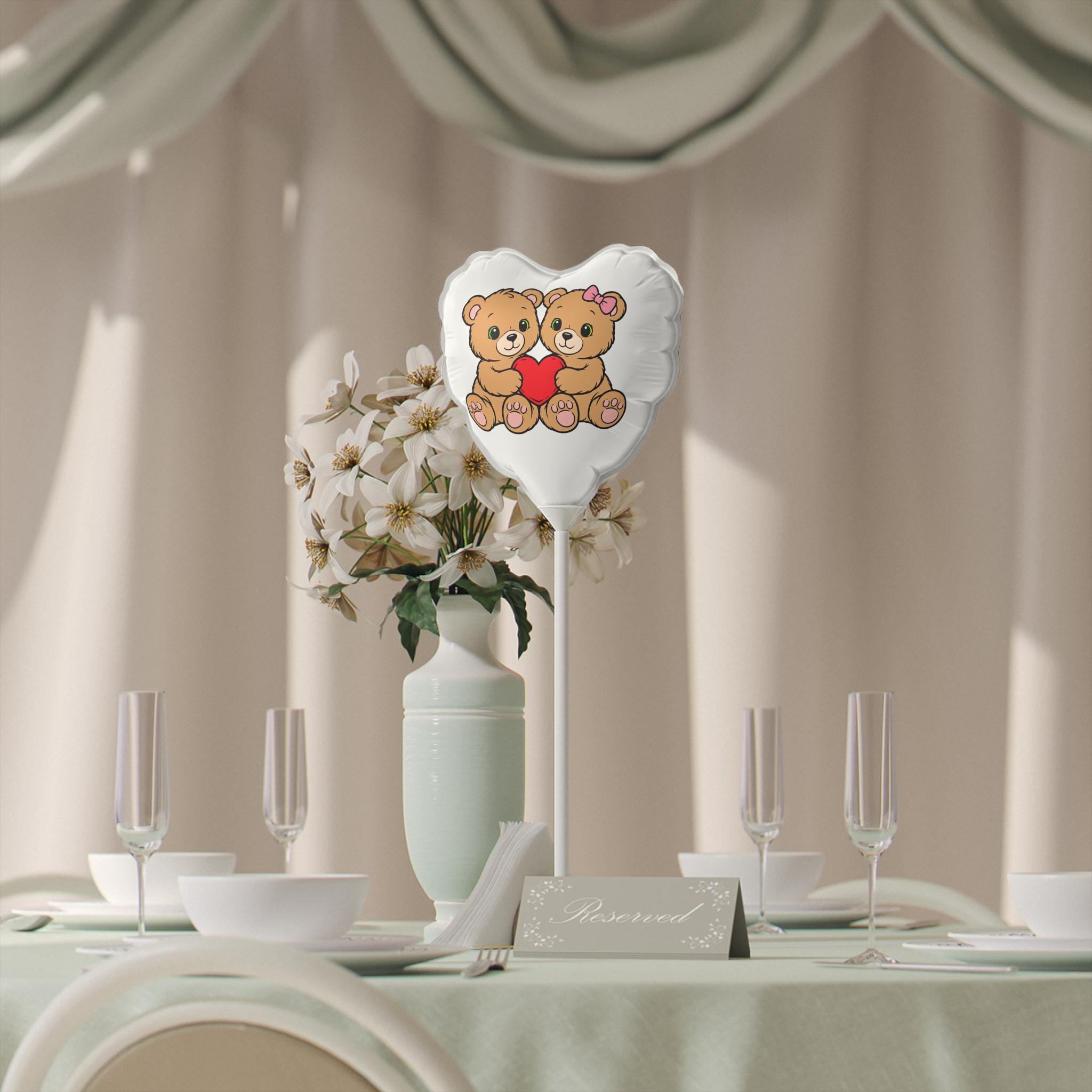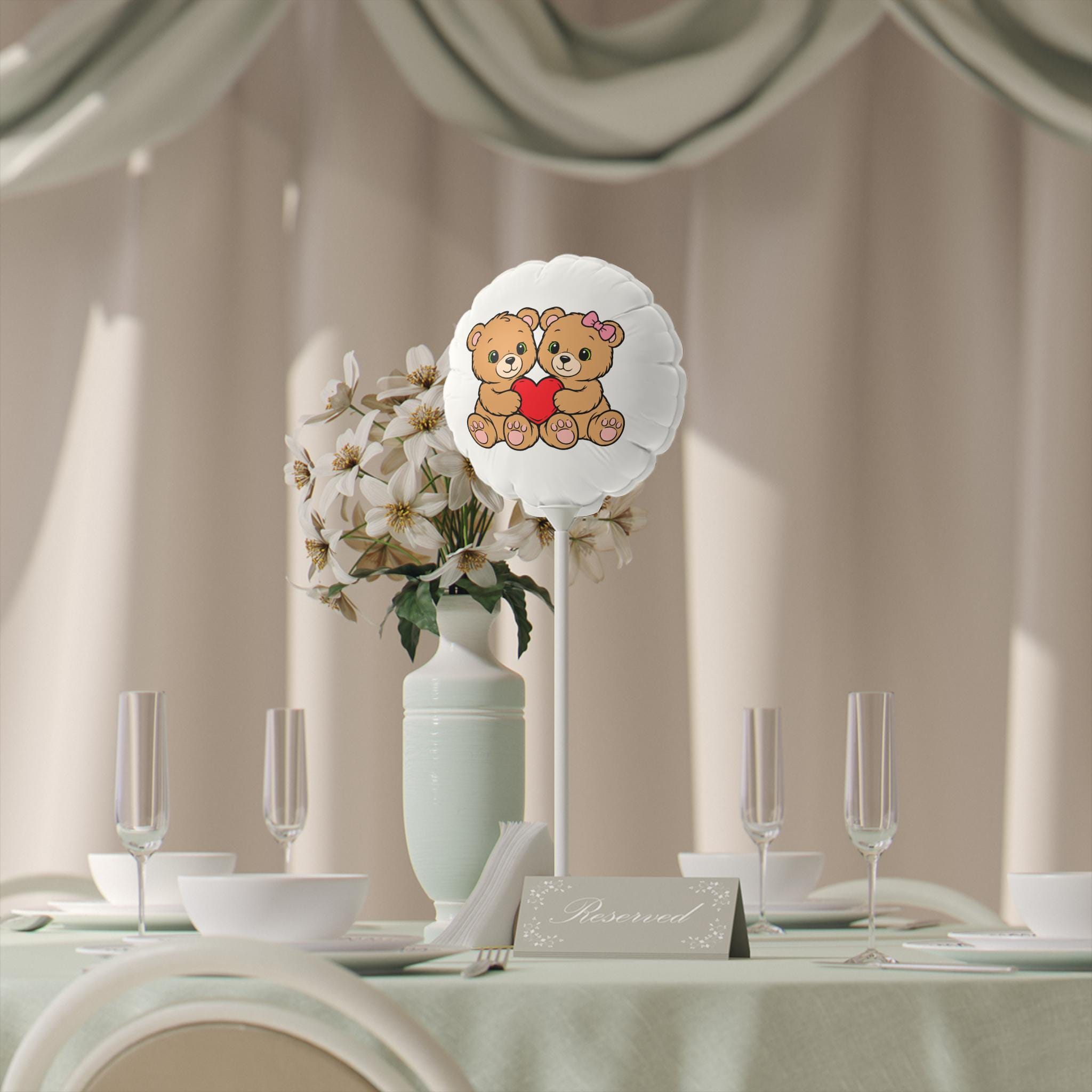 These 6" heart and round mylar balloons bring a soft, playful touch to small celebrations and sweet moments. Printed on coated mylar with a matte finish, each balloon shows crisp, vibrant color thanks to high-resolution coating and waterproof inks — so your design stays clear even if things get a little damp. Lightweight and reusable, they inflate with air (balloon sticks included) for tabletop displays, gift toppers, or keepsake decor. The cuddly bear design holding a heart adds a warm, nostalgic feel that pairs naturally with cozy get-togethers and intimate celebrations.