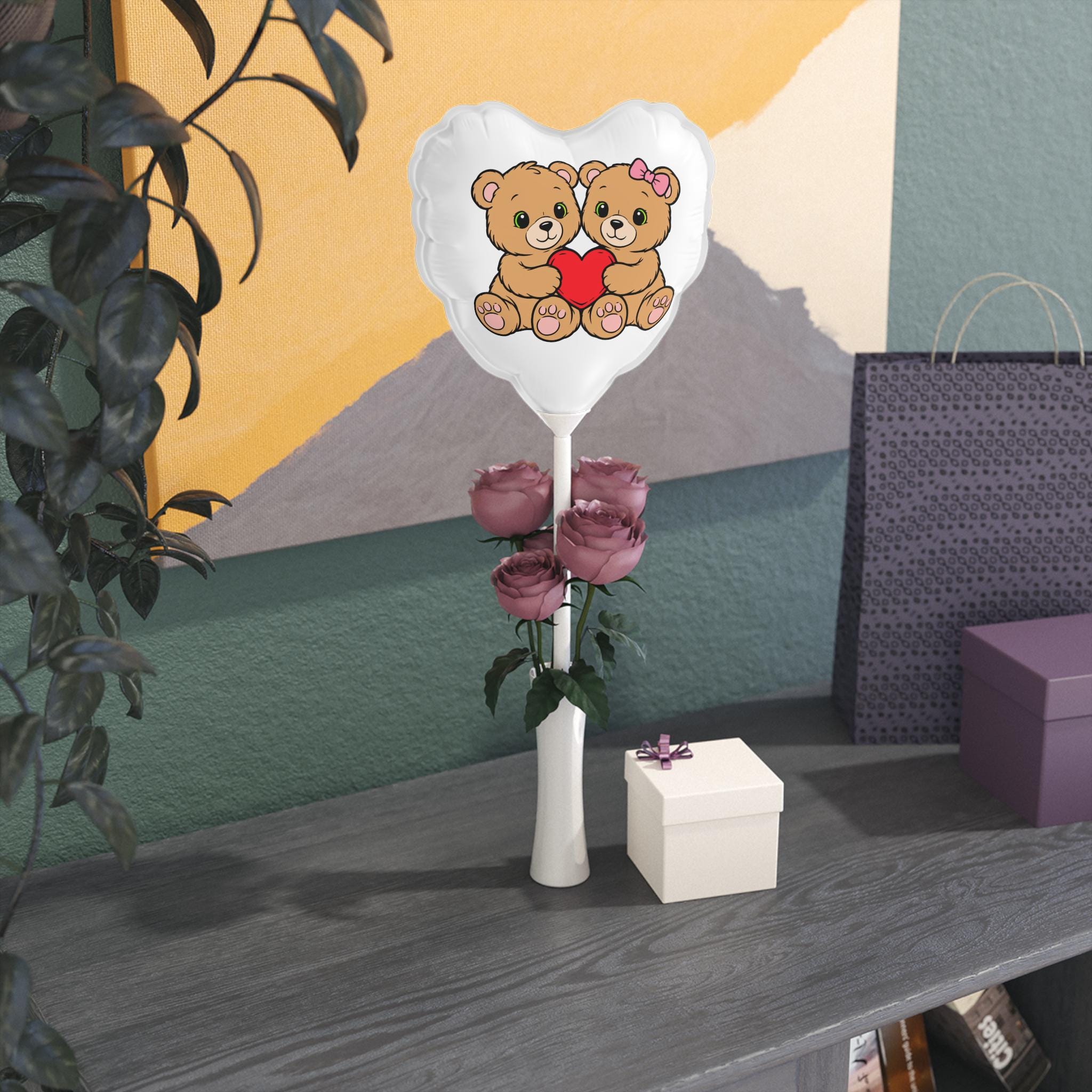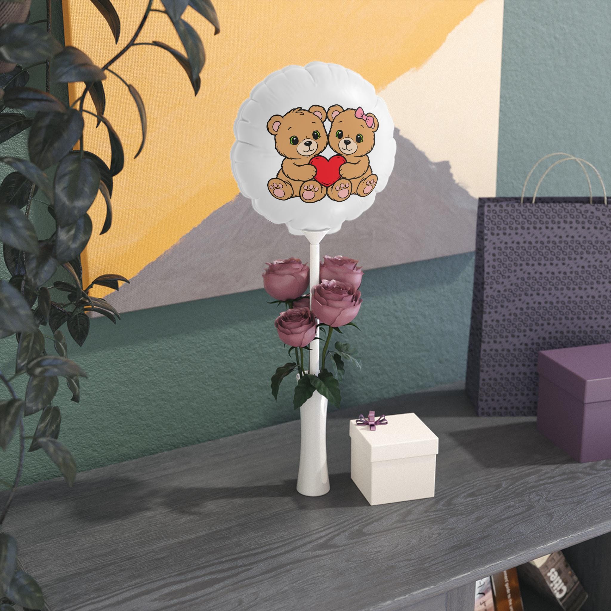 Valentine's Day Vibe with Teddy Bears Holding Heart balloon 6"