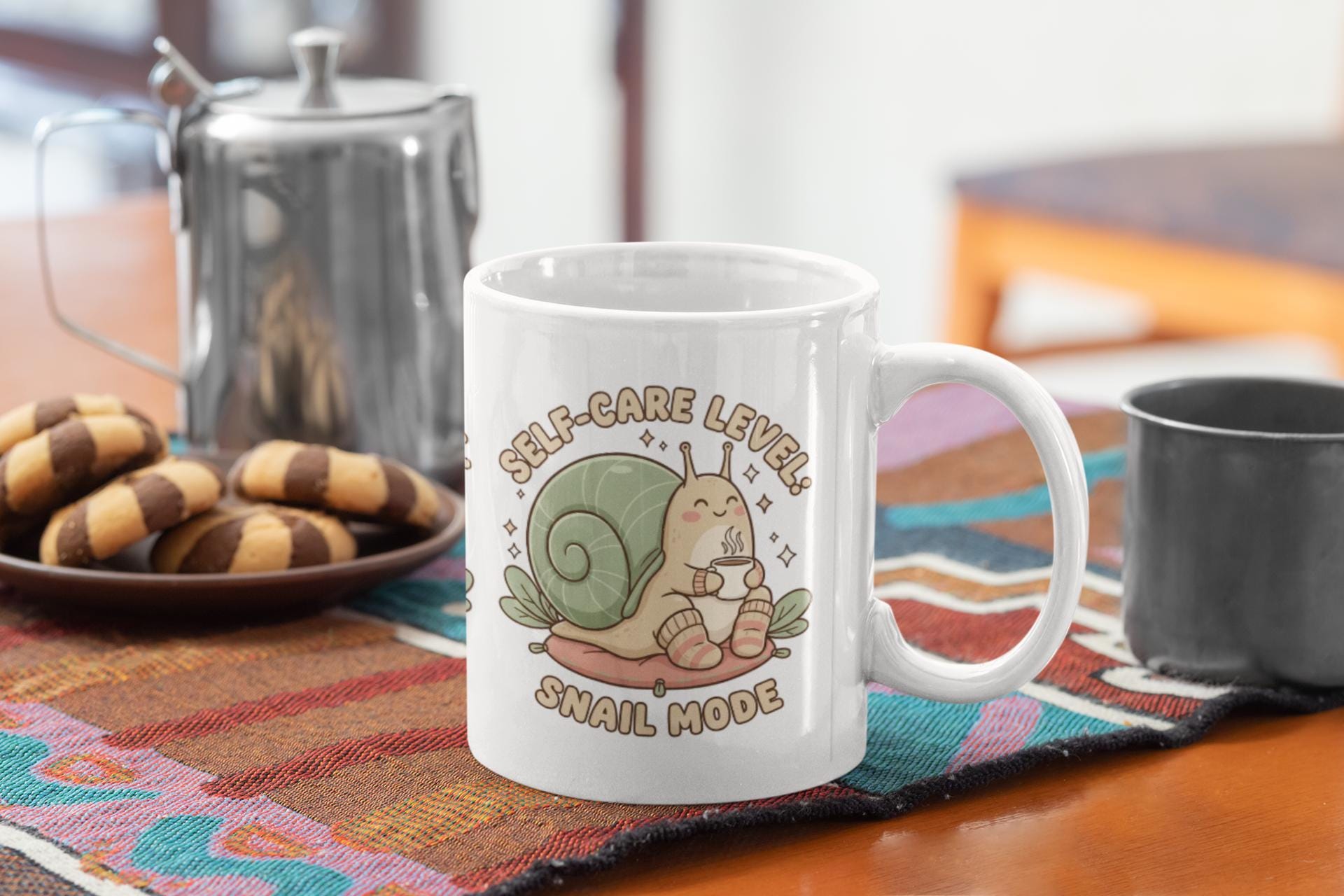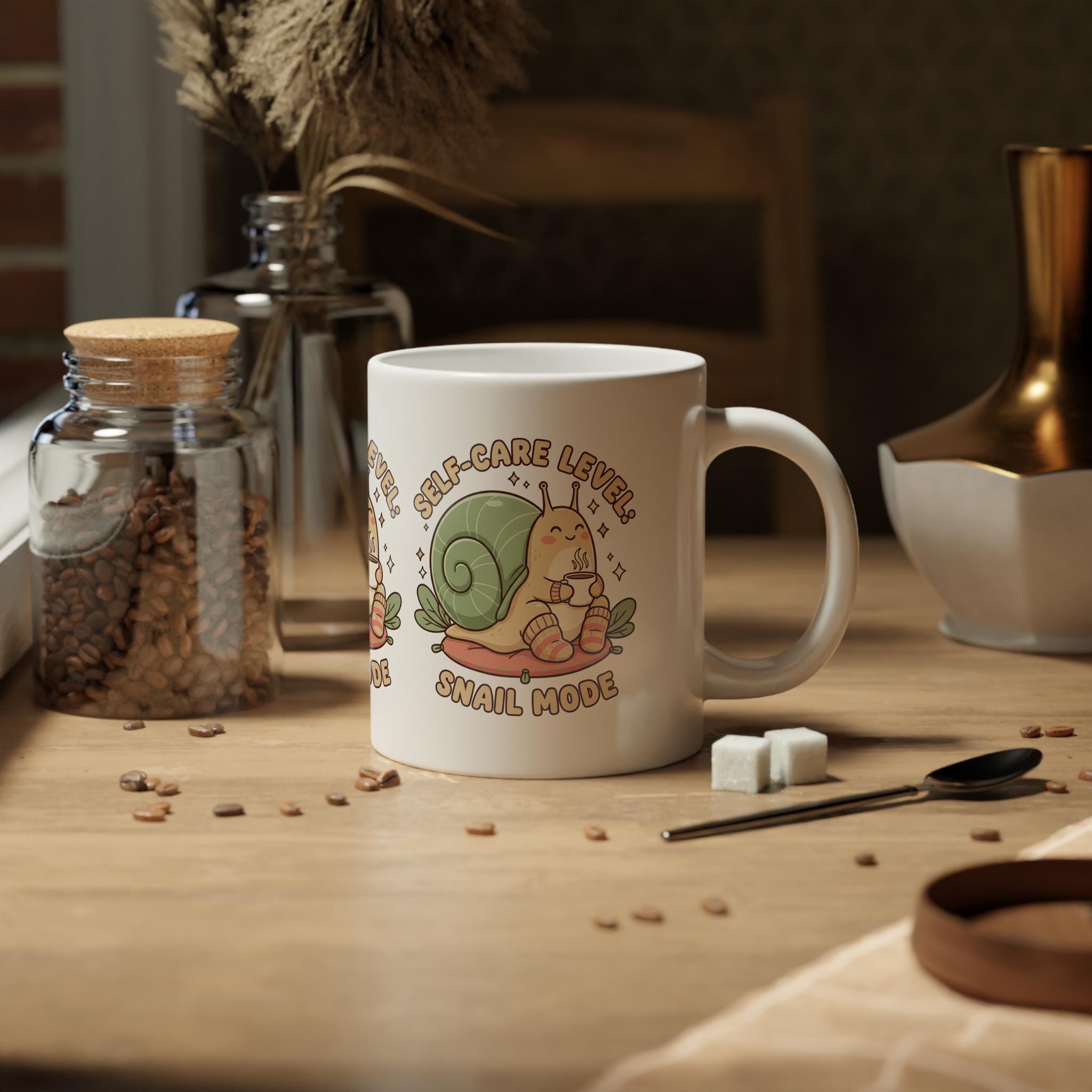 This 20oz ceramic mug wraps a cozy, slow-paced charm around every sip. A soft-colored snail illustration and the phrase “Self-Care Level: Snail Mode” invite quiet mornings, lingering tea breaks, and intentional pauses between tasks. The glossy finish and vivid ORCA-enhanced print keep the artwork bright and cheerful through daily use. The generous 20oz size holds an extra-large pour of coffee, tea, or a warm treat, and the comfortable C-shaped handle makes long, relaxed sipping effortless. Durable, microwave- and dishwasher-safe construction means this mug moves from morning routine to evening unwind without fuss—perfect for anyone building small rituals of calm into a busy day.