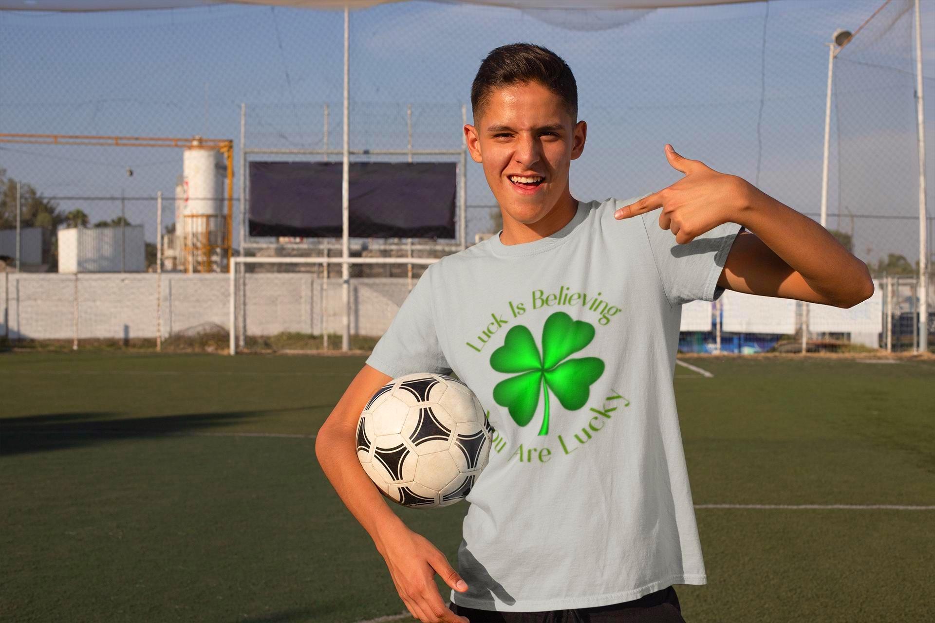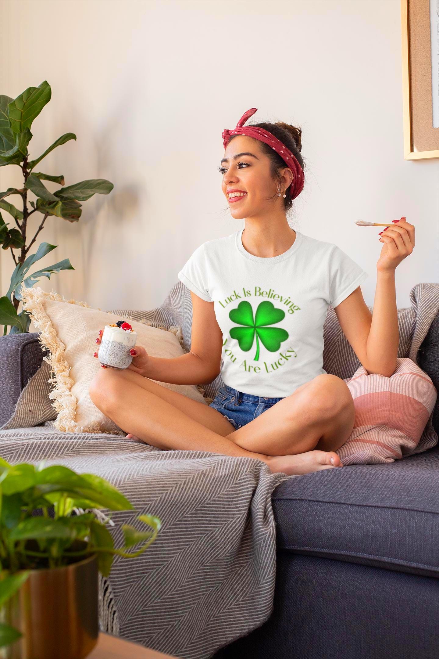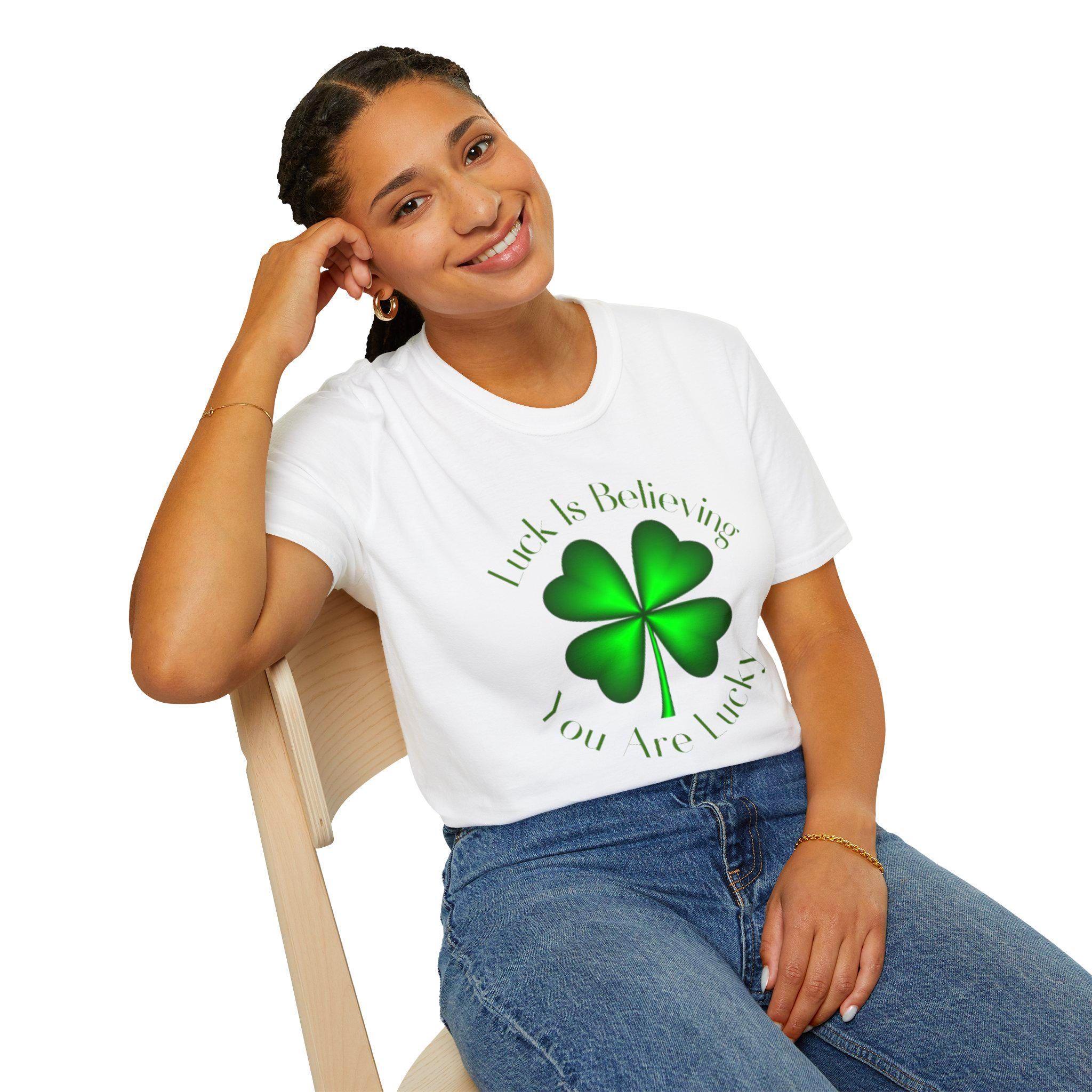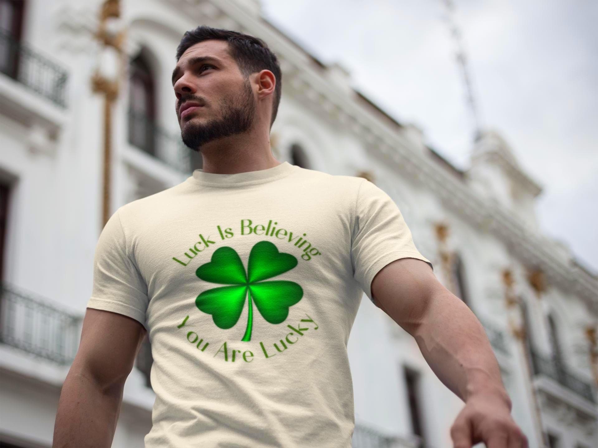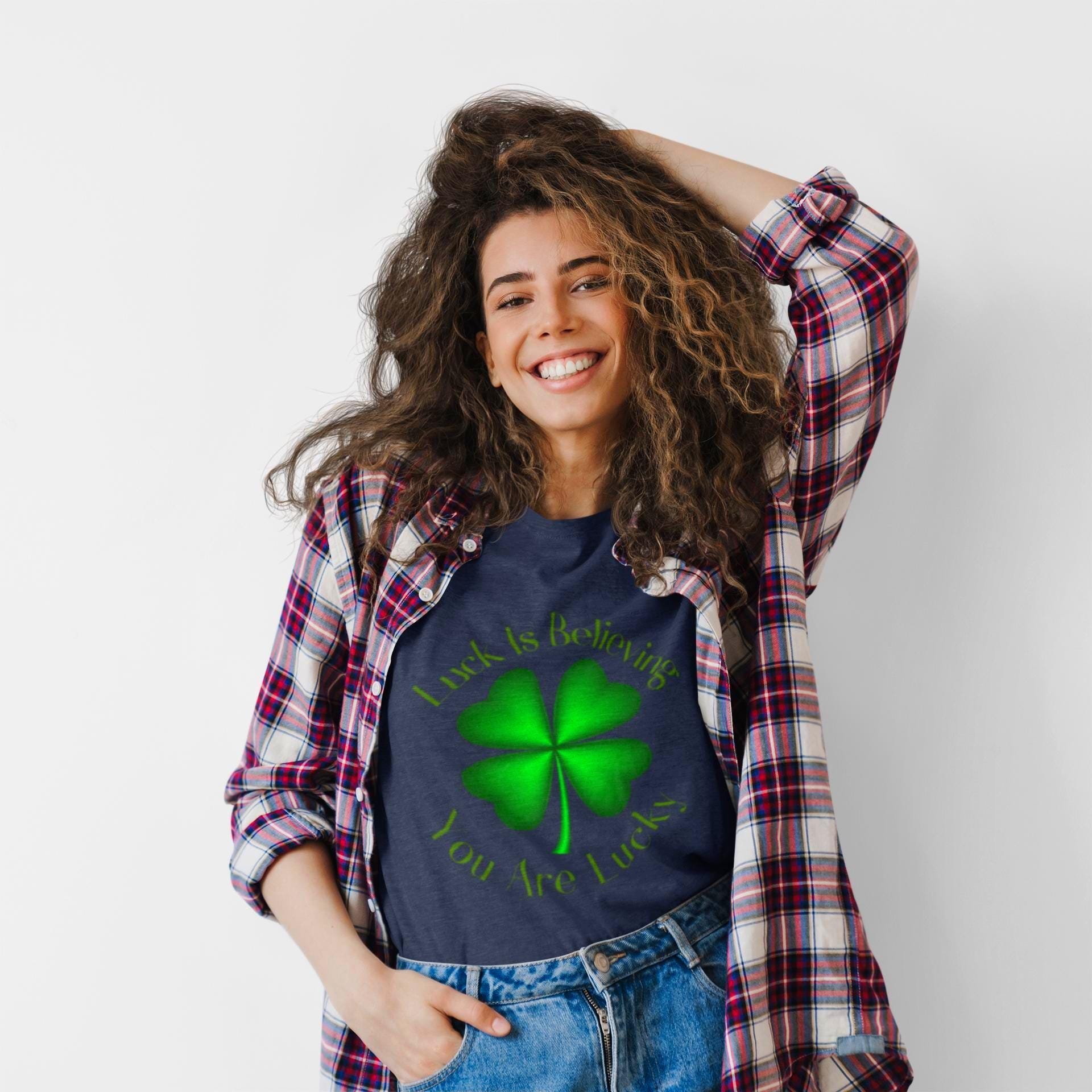A soft, everyday tee printed with a bold four-leaf clover graphic that quietly channels luck and Irish charm. Lightweight and smooth against the skin, it hangs with a relaxed, classic crew fit that works for long pub nights, casual parades, or slow mornings with coffee. The shamrock sits front-and-center, a simple emblem that reads like a personal talisman—subtle enough to layer under a denim jacket, loud enough to carry a crowd’s grin on St. Patrick’s Day. Wear it to walk streets scattered with confetti, to tuck into a messy bun before a house gathering, or to add a little hopeful green to otherwise ordinary days. Breathable cotton and a soft ribbed collar keep the silhouette steady through washes and weekends, while tear-away tags and stable shoulder tape keep it easy and reliable. For people who like their luck worn, not announced, this tee feels like something you reach for the moment you want to belong to a little bit of joy.